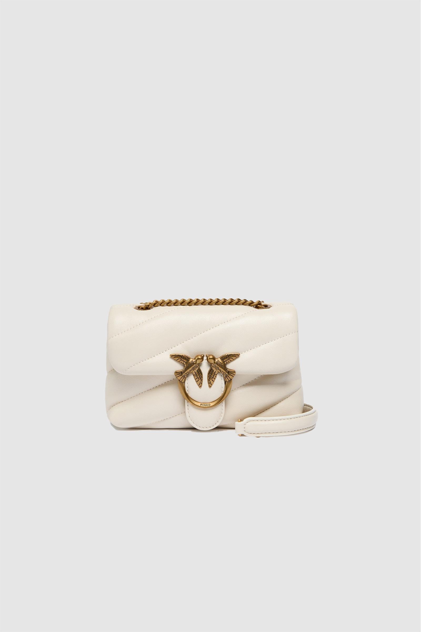 Borsa piccola a tracolla Baby Love Bag Puff in morbida nappa lavorata con maxi trapuntatura dal caratteristico pattern obliquo. La patta che chiude la borsa è personalizzata con fibbia in metallo Love Birds Diamond Cut. L'interno è foderato in microfibra scamosciata e comprende tasca a parete chiusa con zip. La borsa è completa di tracolla sottile a catena in metallo. Le dimensioni e i dettagli della borsa la rendono perfetta sia per le occasioni specaili, che per dare un tocco d'eleganza ai look più quotidiani. Attiva la tua borsa PINKO: verifica l'autenticità del tuo prodotto e accedi all'esperienza personalizzata avvicinando il tuo smartphone al ricamo Love Birds che trovi sul retro della borsa!Pelle: PELLE DI PECORA 100% - Fodera: COTONE 100% - Accessorio: Zinco 100%