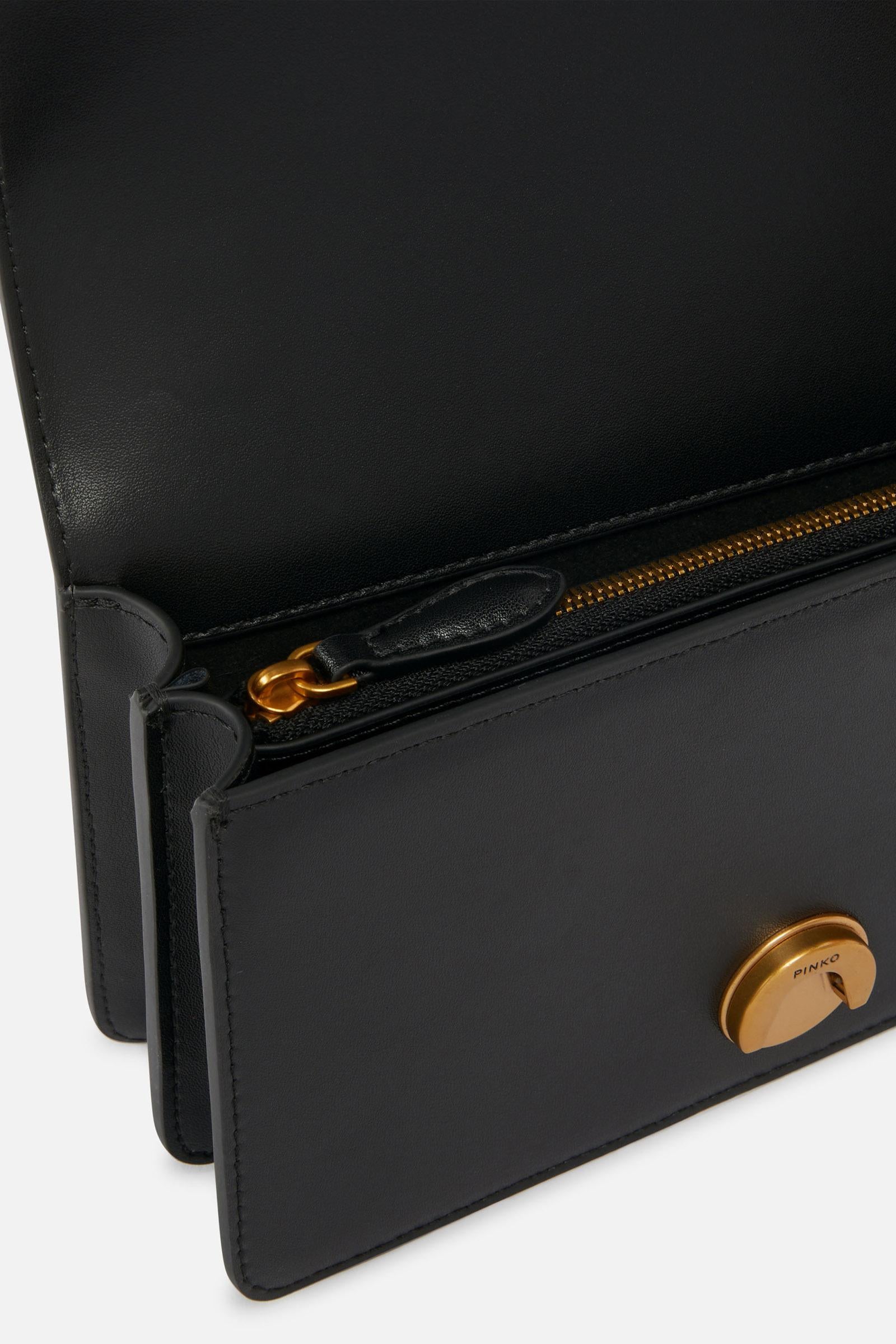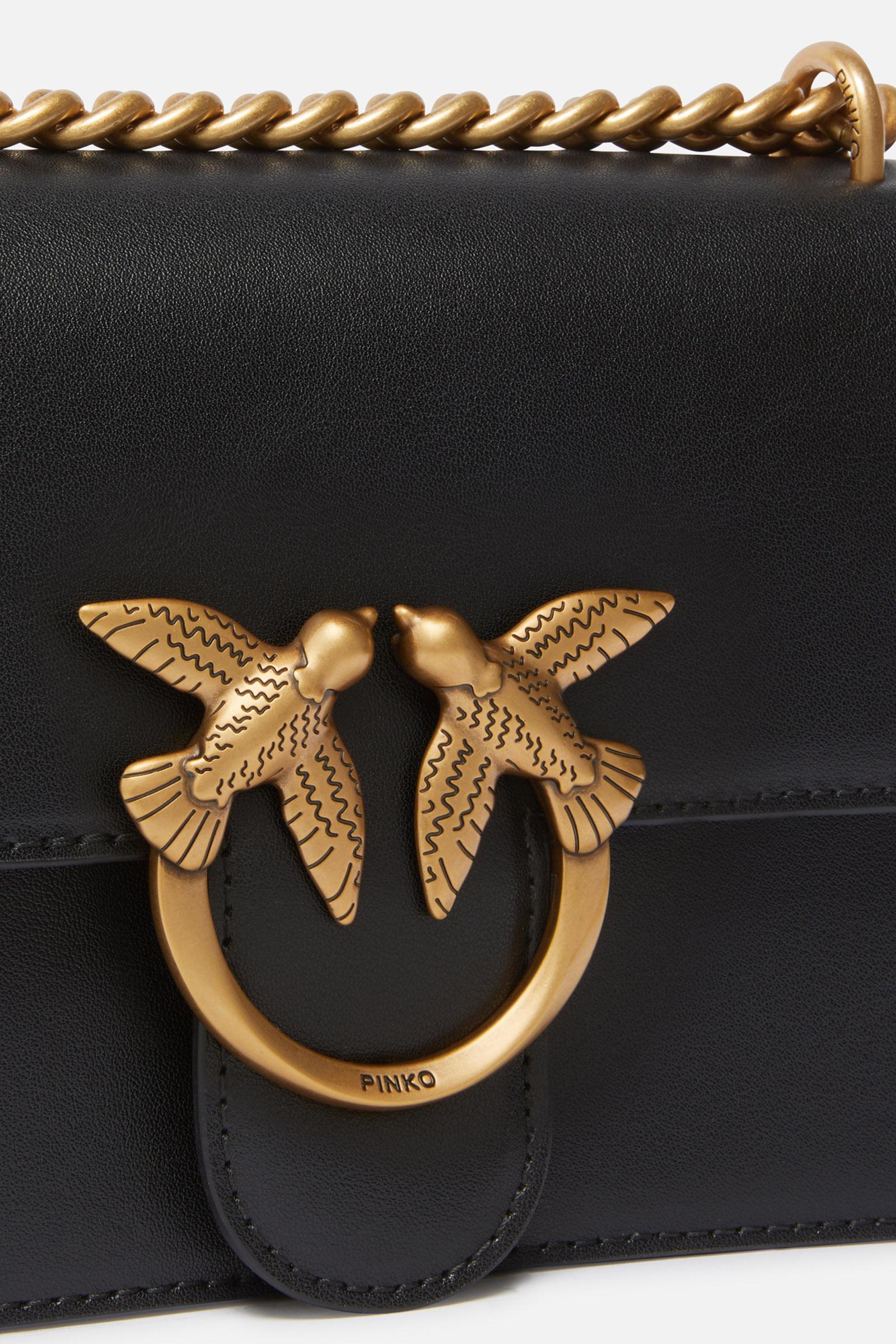 Piccola borsa a tracolla Mini Love Bag in morbida pelle mano seta, dalla texture liscia. La chiusura con patta è completata dall'iconica fibbia Love Birds Diamond Cut in metallo. L'interno è foderato in tessuto effetto scamosciato e comprende tramezza chiusa con zip e pratica tasca a parete in pelle. La borsa è completa di tracolla che combina la classica catena rotonda al pratico spallaccio in pelle regolabile, ed è possibile doppiare la tracolla e indossare la borsa a spalla. Attiva la tua borsa PINKO: verifica l'autenticità del tuo prodotto e accedi all'esperienza personalizzata avvicinando il tuo smartphone al ricamo Love Birds che trovi sul retro della borsa!