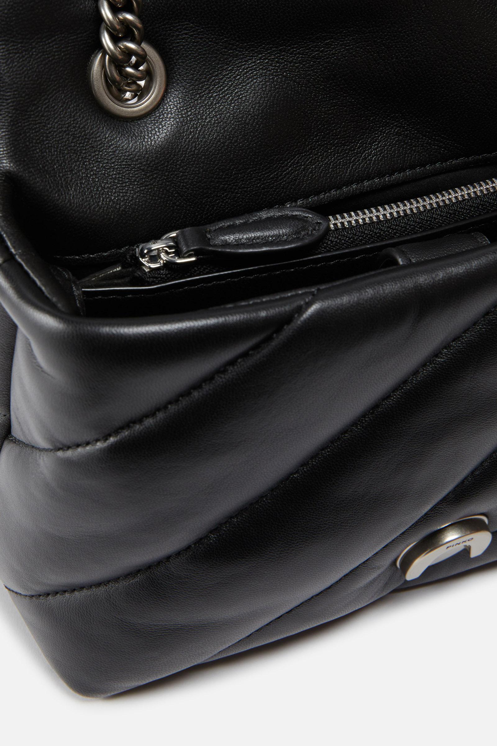 Borsa piccola a tracolla Mini Love Bag Puff realizzata in morbida nappa trapuntata con pattern obliquo. La chiusura con patta e bottone automatico è completata dall'iconica fibbia in metallo Love Birds Diamond Cut. L'interno comprende tramezza chiusa con zip e tasca a parete ed è foderato in microfibra scamosciata. La borsa è completa di tracolla, che combina la classica catena metallica rotonda al pratico spallaccio in nappa.Pelle: PELLE DI PECORA 100% - Accessorio: Zinco 100% - Fodera: COTONE 100%