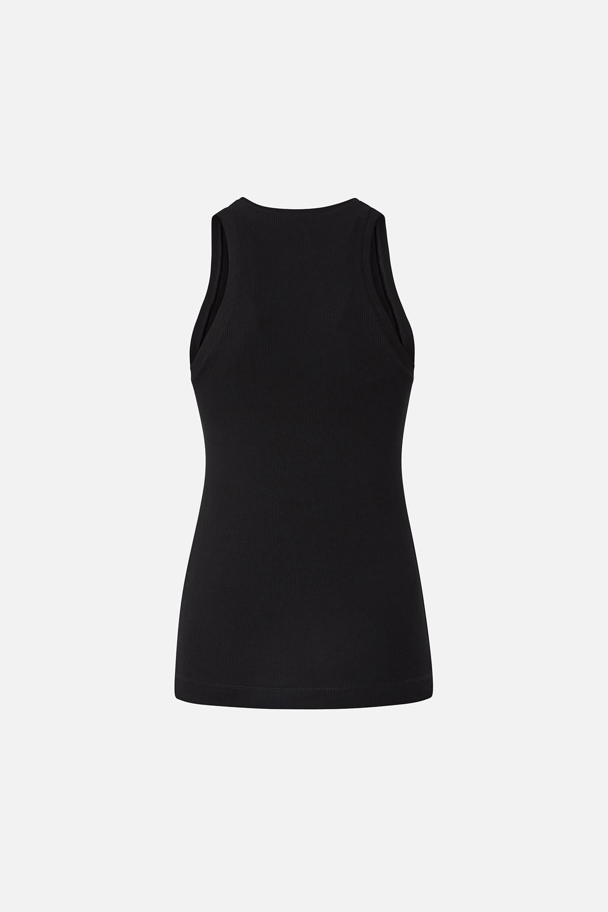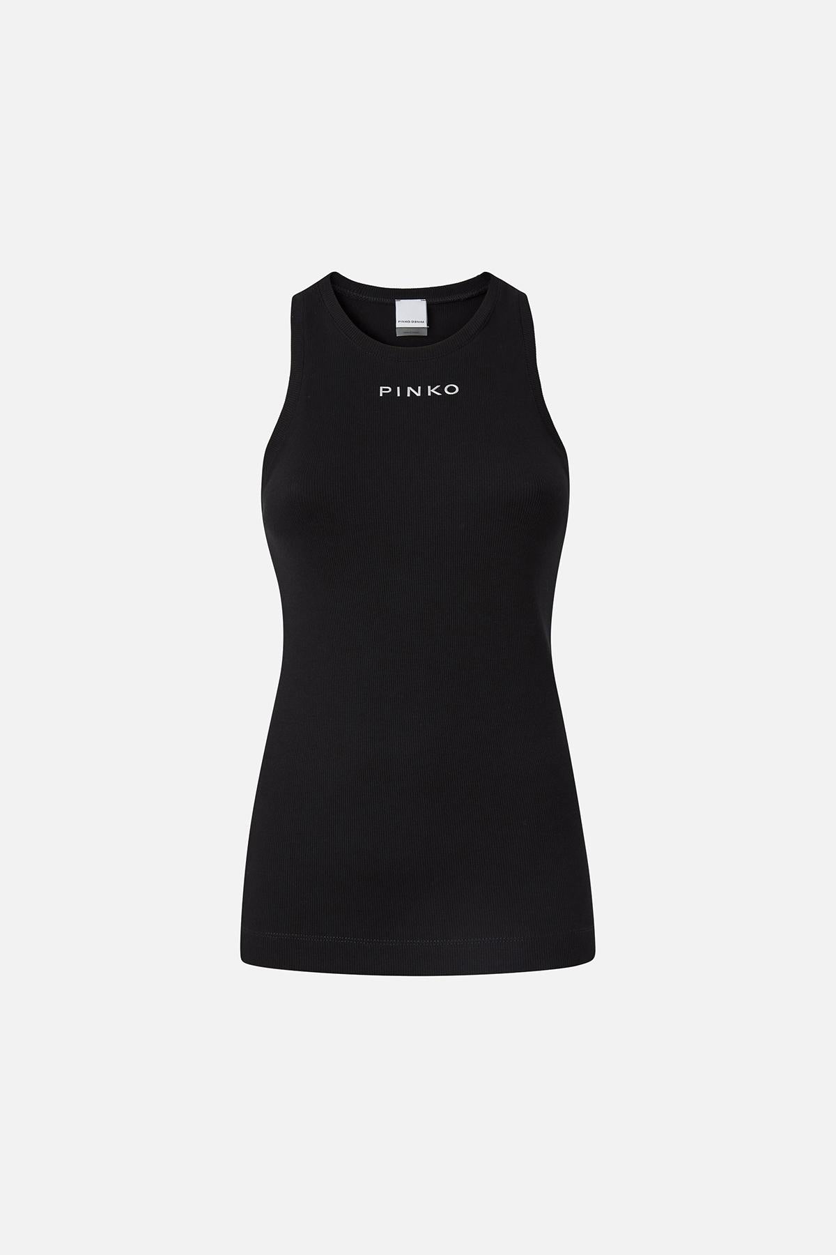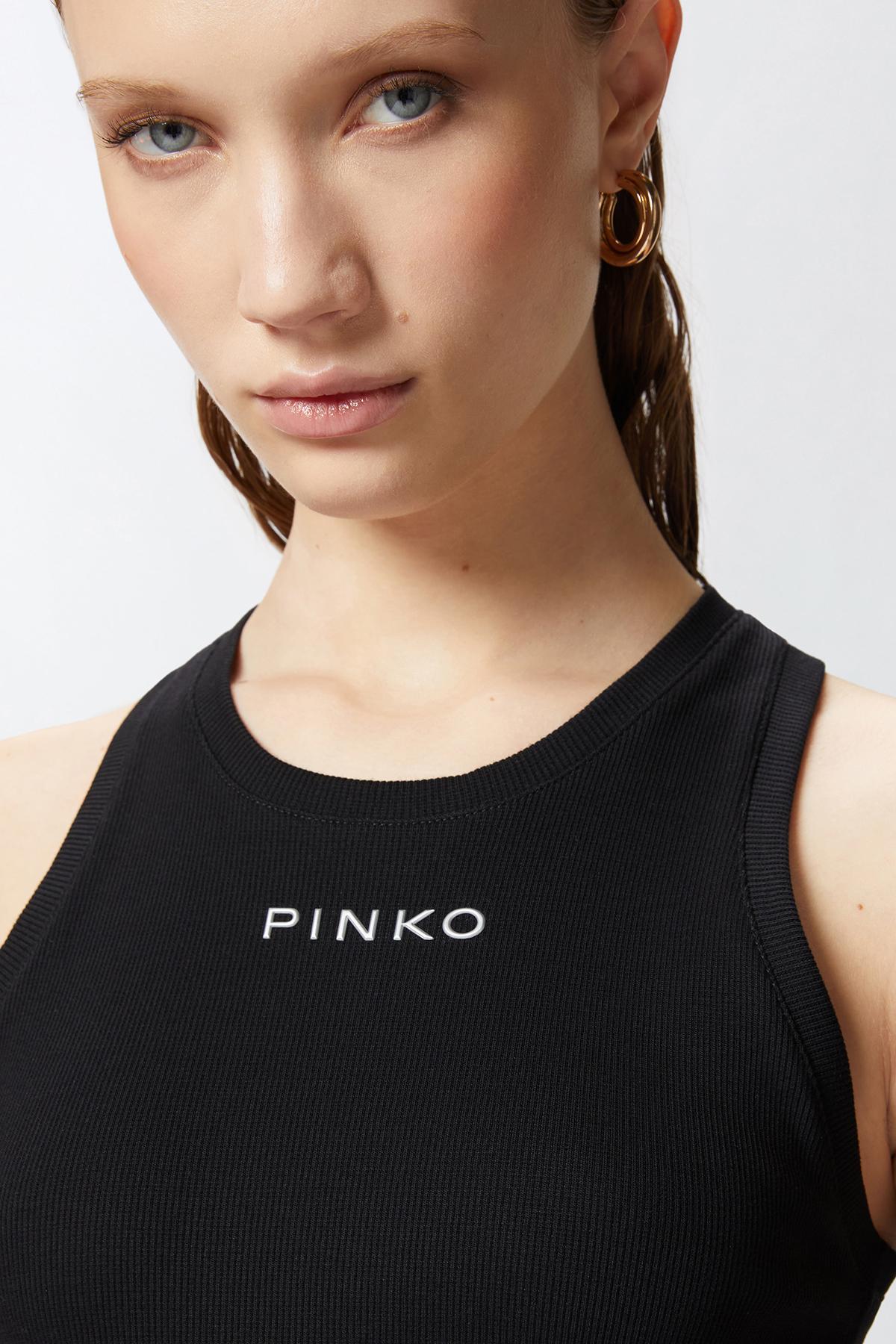 Top aderente senza maniche dalla silhouette a canottiera con scollo vogatore sul retro in maglia di cotone stretch lavorata a costine, personalizzata con mini logo PINKO applicato davanti al centro. Un top versatile e che sa adattarsi a tutte le occasioni risultando sempre all'altezza della situazione: abbinalo a un paio di jeans e a una giacca, ma anche alla tua tuta preferita per stare comoda, ma con stile.Composizione:cotone 97% elastan 3%