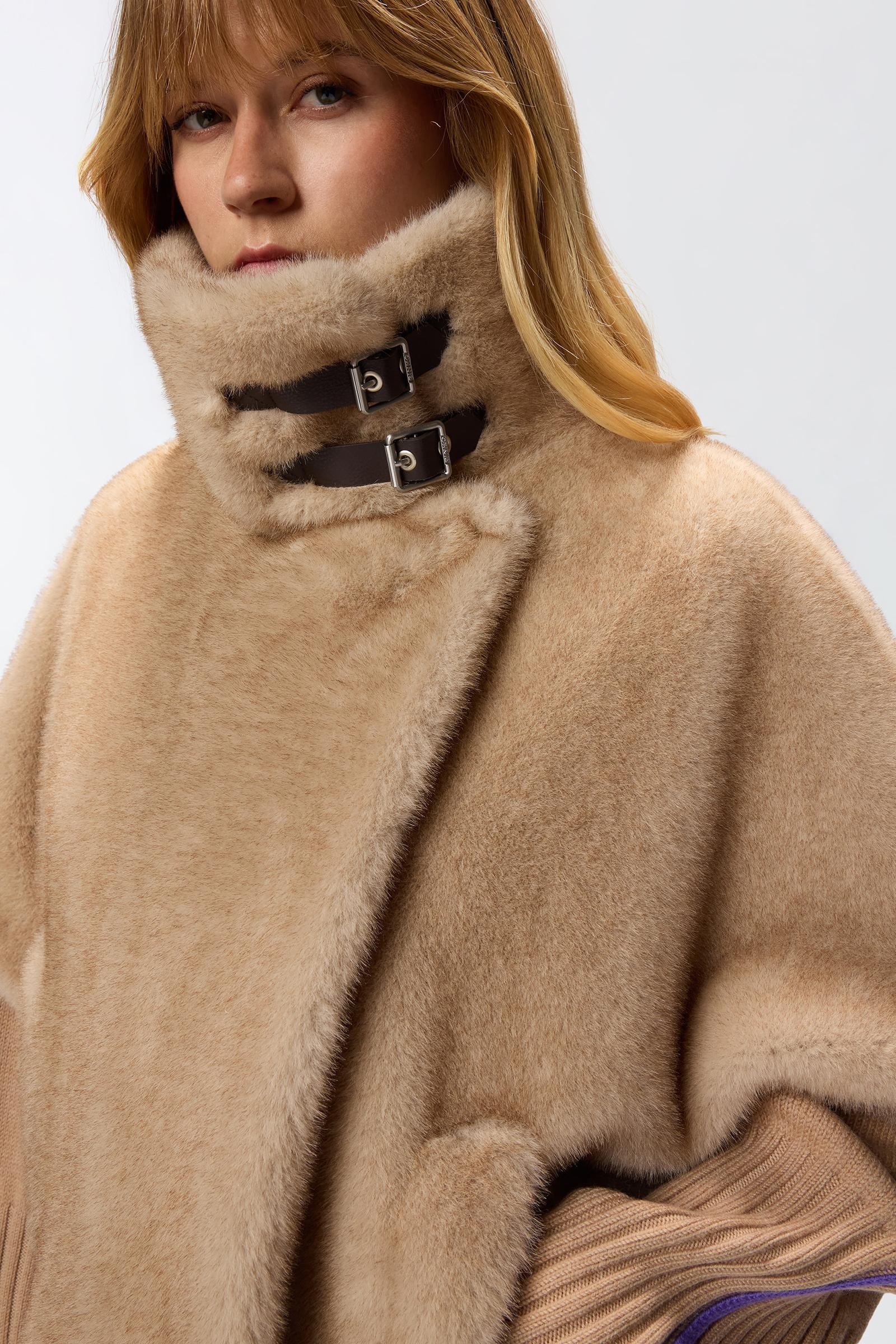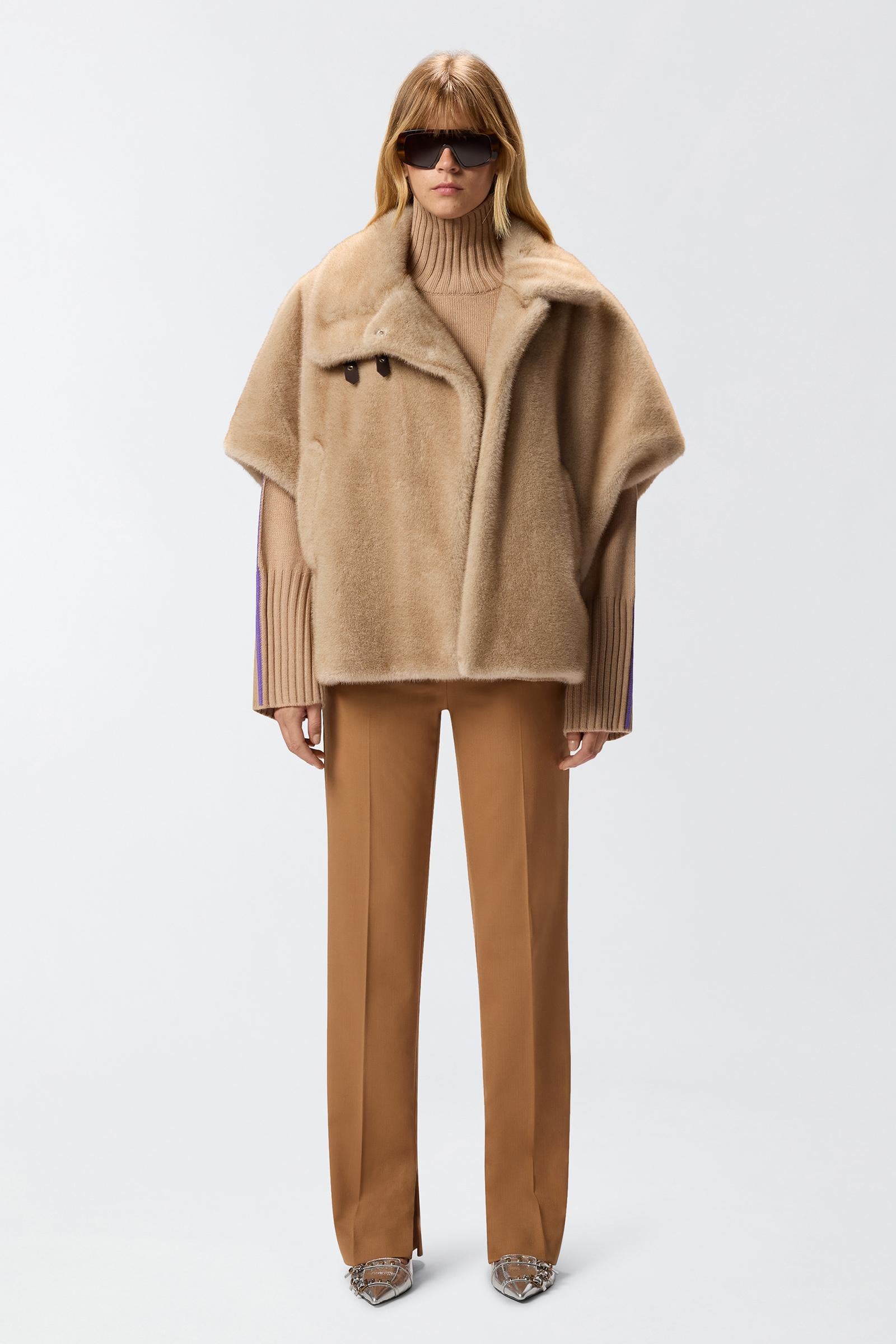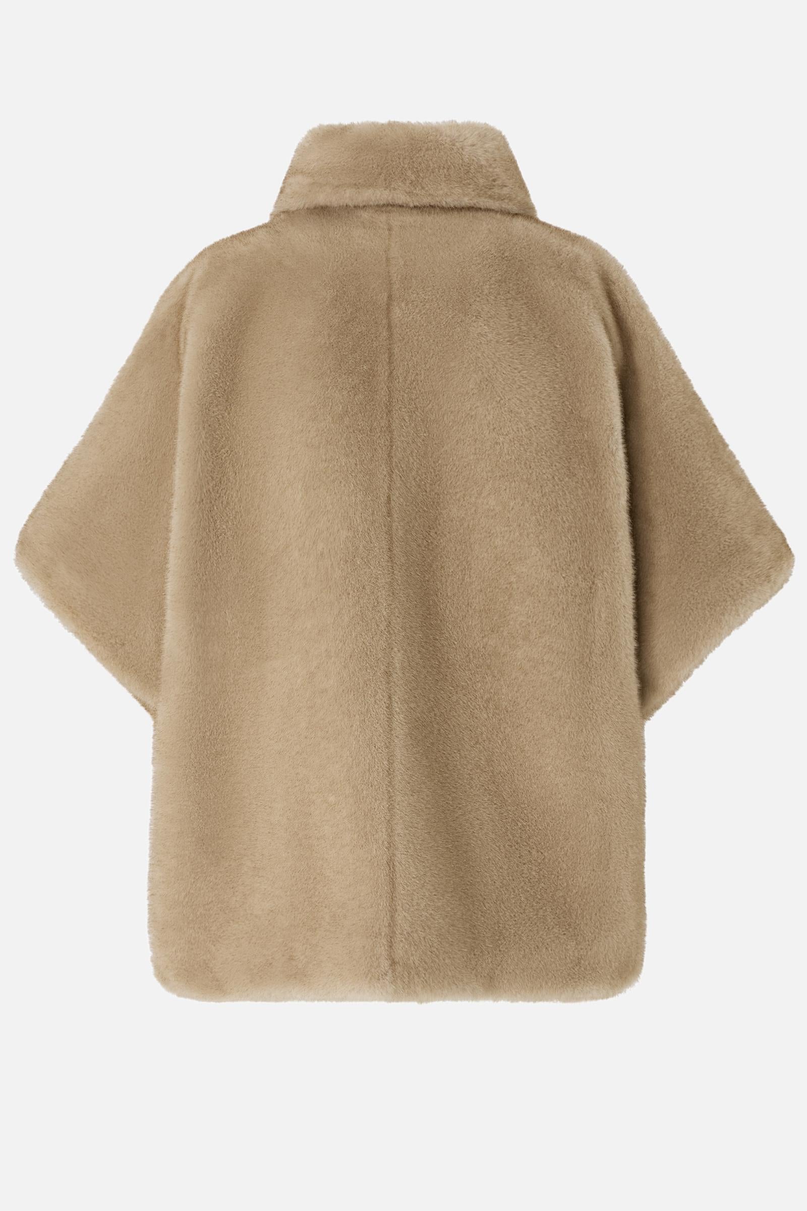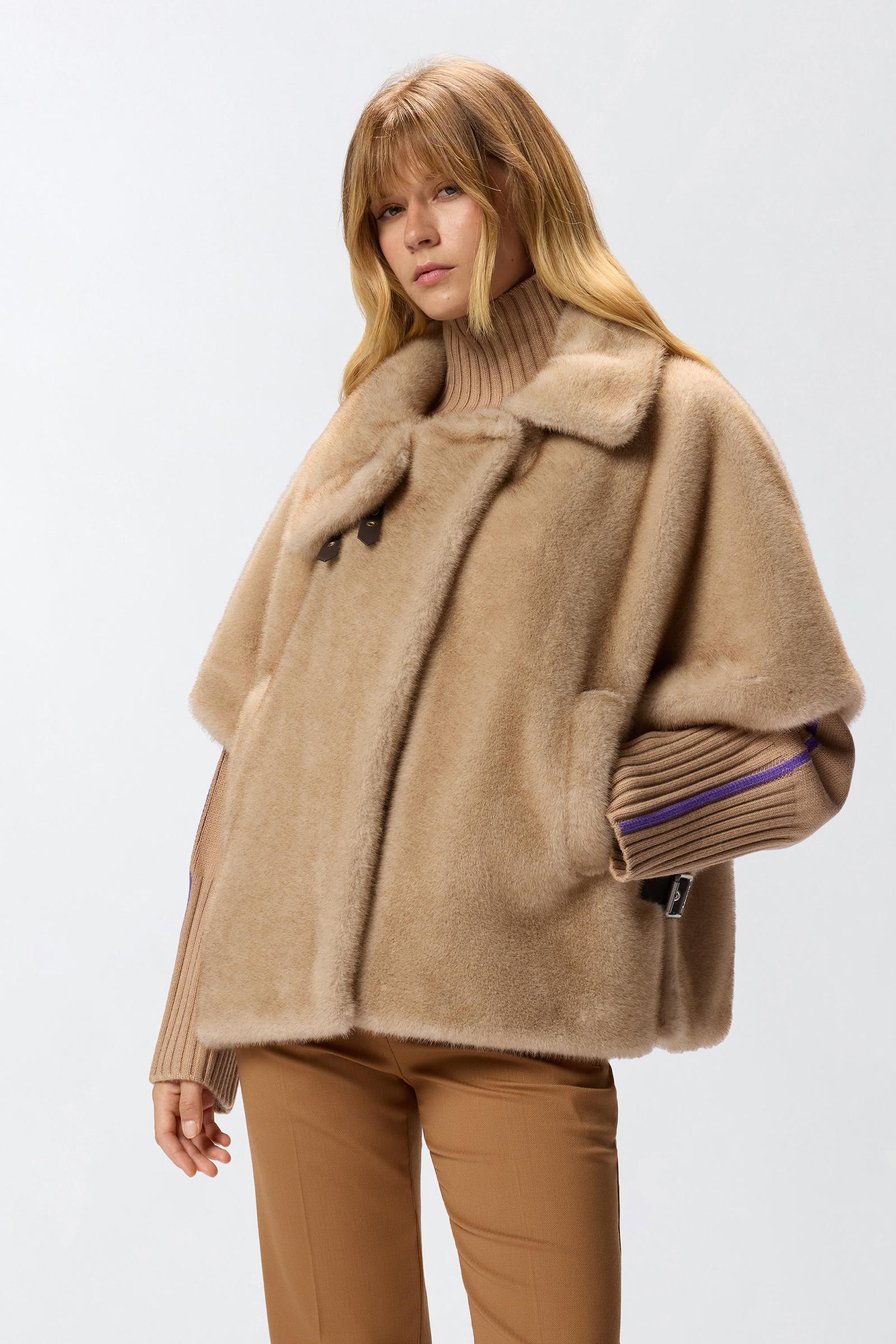 Cappa corta con maniche corte, tasche a filetto, avvolgente collo ripiegato e chiusura frontale decentrata. Il capo è realizzato in morbido tessuto Aspen dall'effetto pelliccia, particolarmente piacevole al tatto. Modello foderato. Il capospalla è ideale per accompagnarti nelle giornate più fresche di inizio stagione all'aperto, con il massimo comfort, senza rinunciare a un tocco di stile.1° Tessuto Esterno: POLIESTERE 100% - 2° Tessuto Esterno: POLIESTERE 100% - Fodera: POLIESTERE 100% - Spalmatura: POLIURETANICA 100%