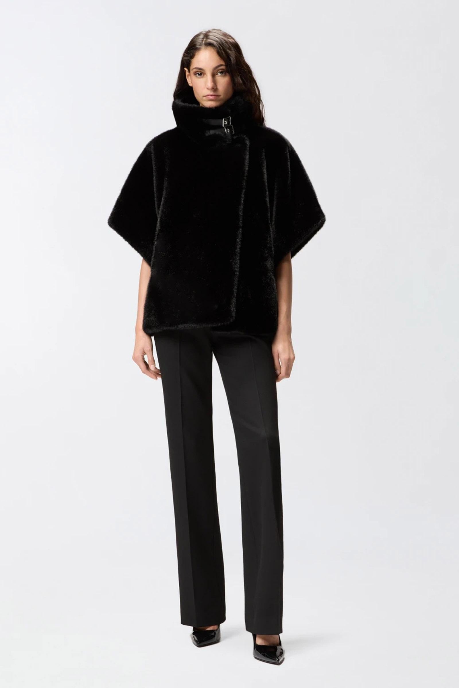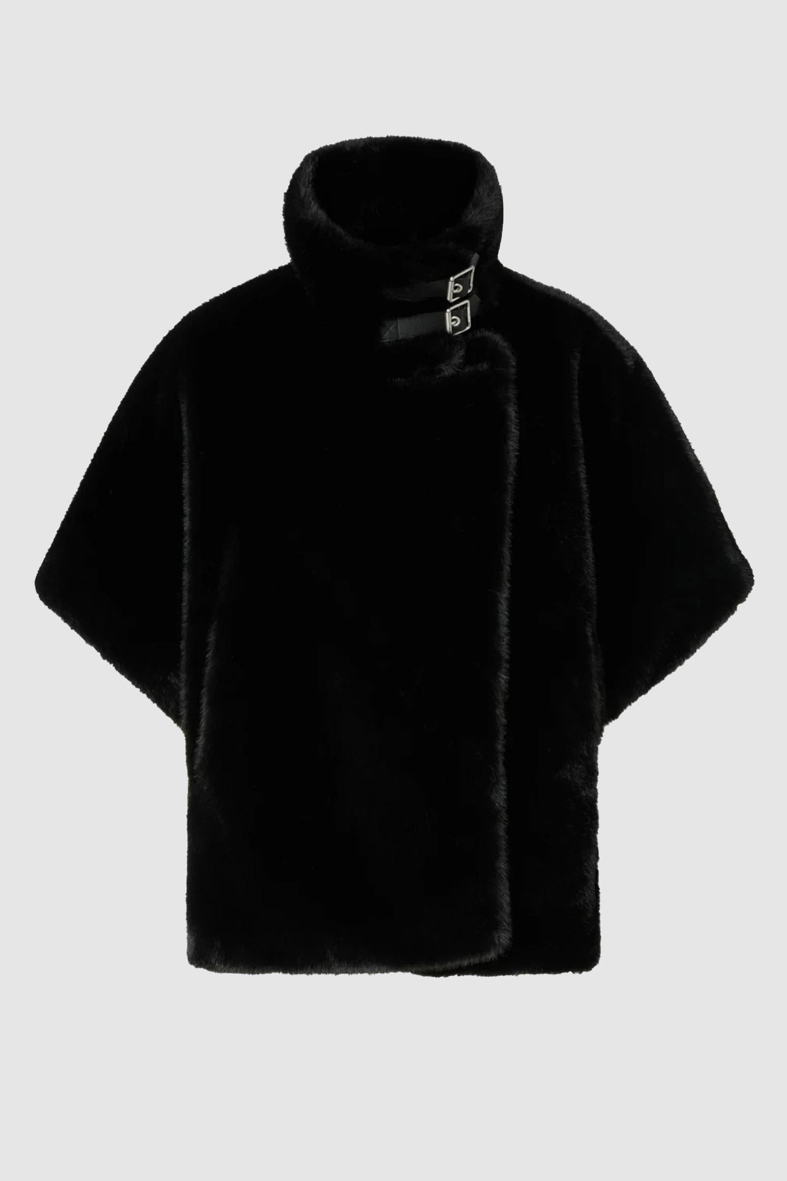 Cappa corta con maniche corte, tasche a filetto, avvolgente collo ripiegato e chiusura frontale decentrata. Il capo è realizzato in morbido tessuto Aspen dall'effetto pelliccia, particolarmente piacevole al tatto. Modello foderato. Il capospalla è ideale per accompagnarti nelle giornate più fresche di inizio stagione all'aperto, con il massimo comfort, senza rinunciare a un tocco di stile.1° Tessuto Esterno: POLIESTERE 100% - 2° Tessuto Esterno: POLIESTERE 100% - Fodera: POLIESTERE 100% - Spalmatura: POLIURETANICA 100%