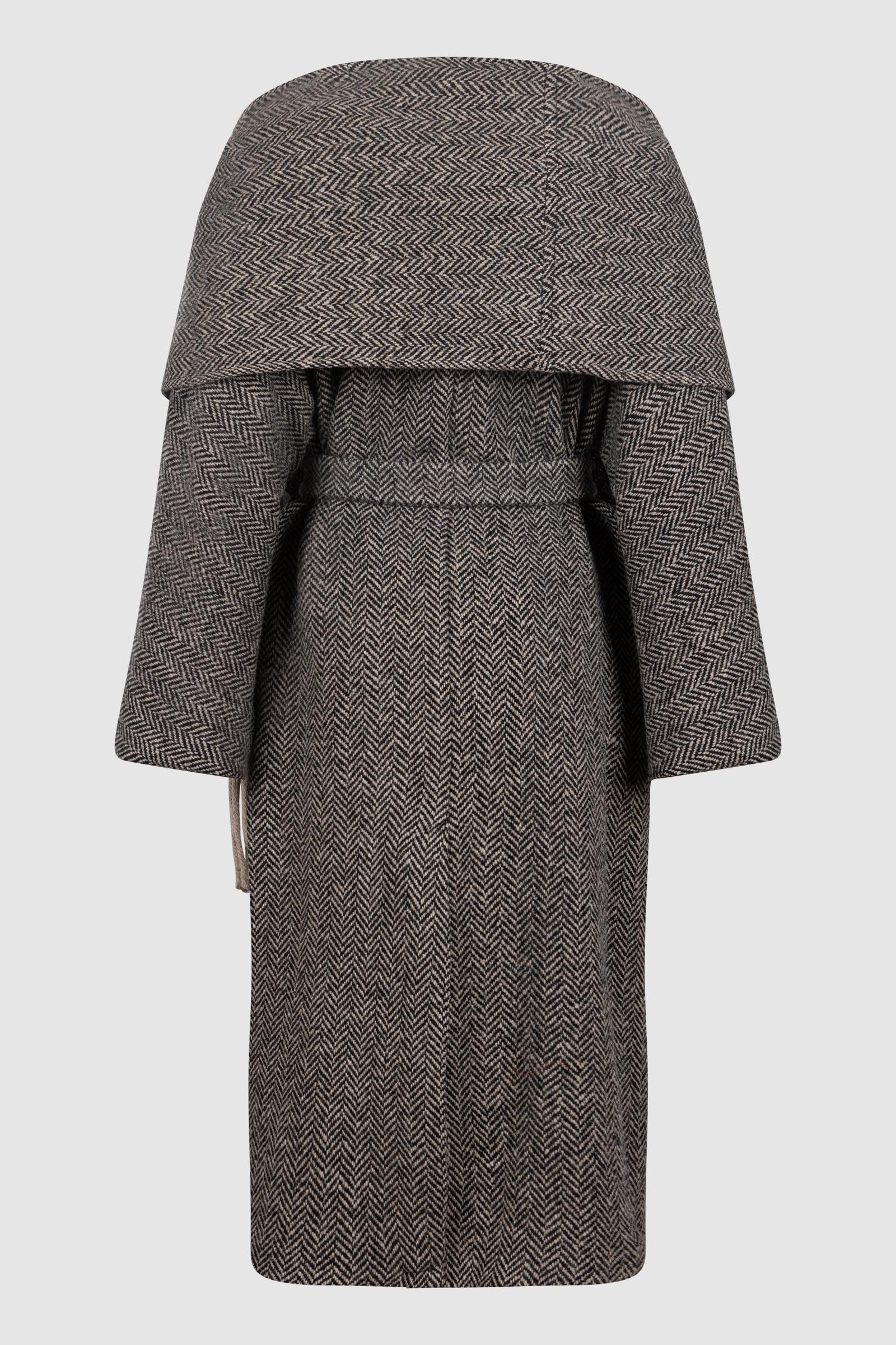 Colore: Marrone mélange con motivo a spina di pesce beige e nero