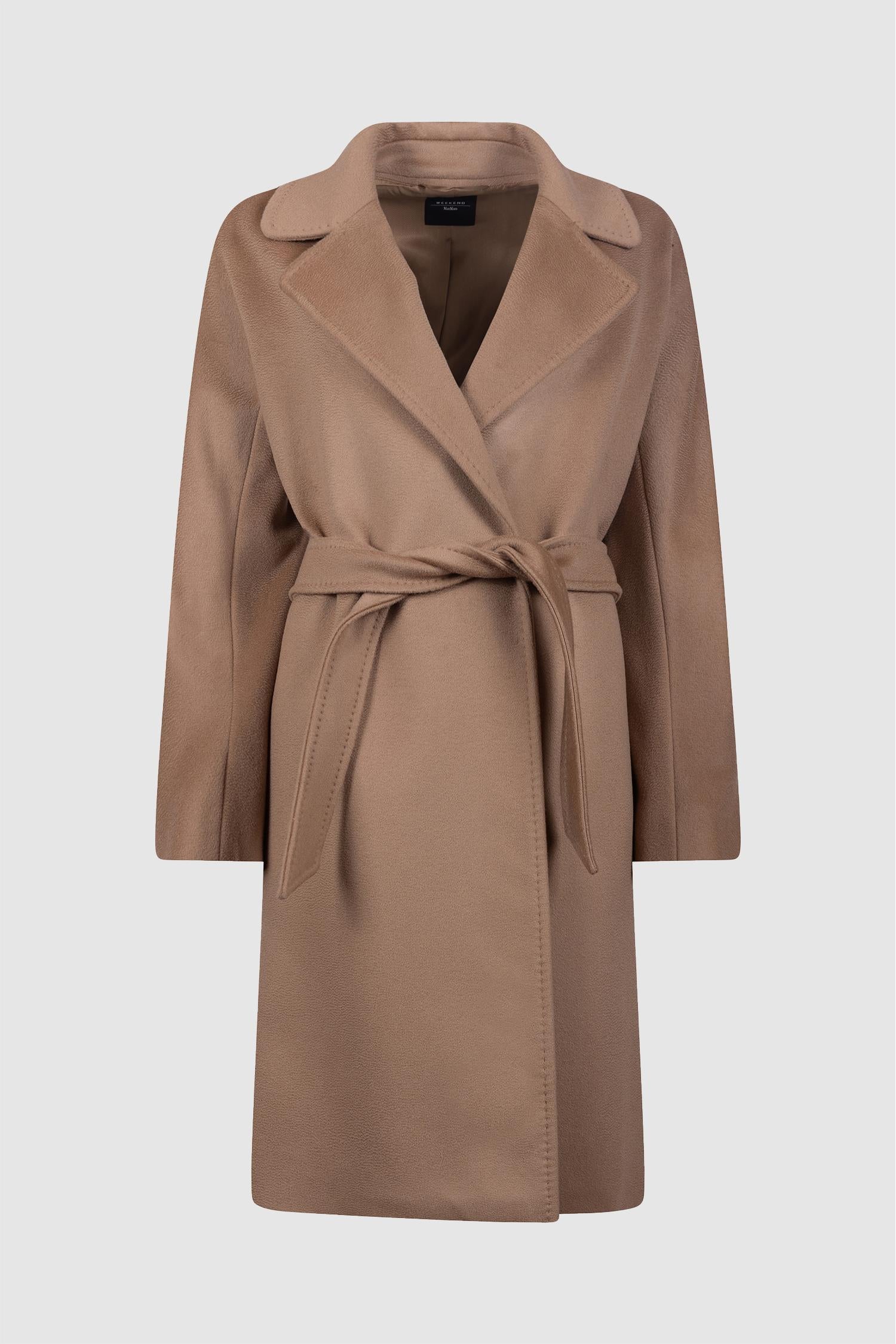 Un'icona di stile firmata Max Mara, il cappotto con cintura è un must-have del guardaroba femminile. Realizzato in pregiata lana color cammello, unisce eleganza e comfort, con un design essenziale e raffinato che esalta la femminilità.