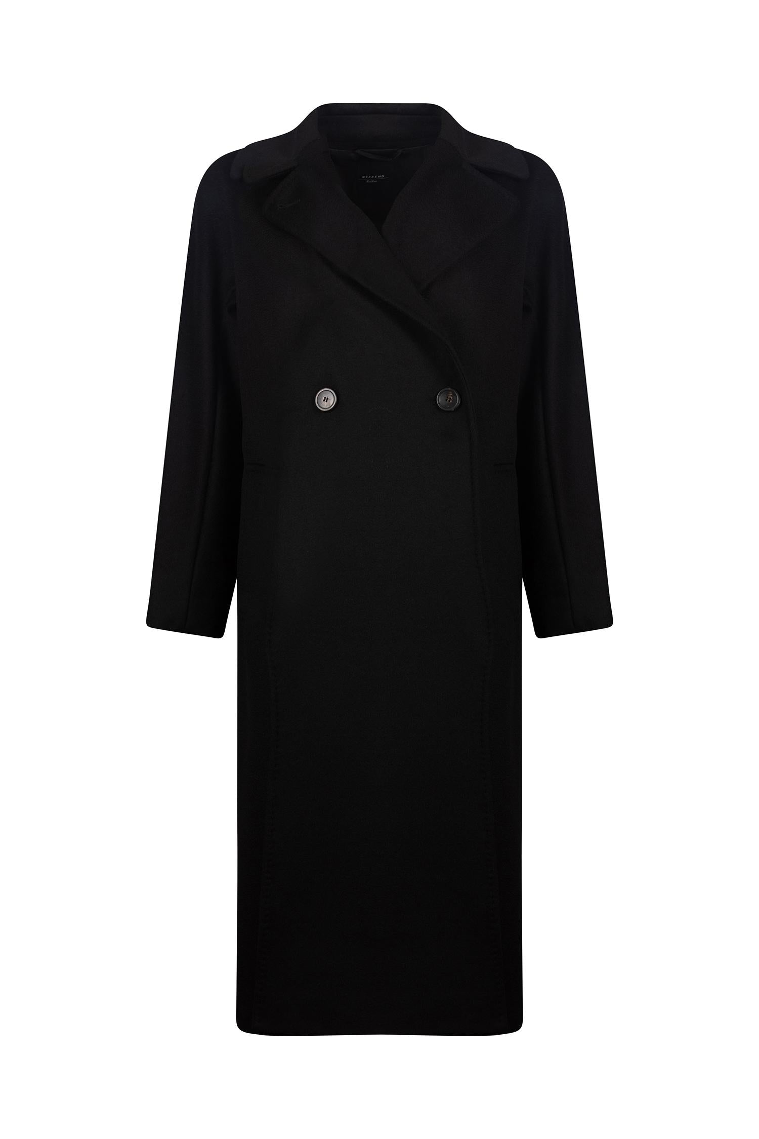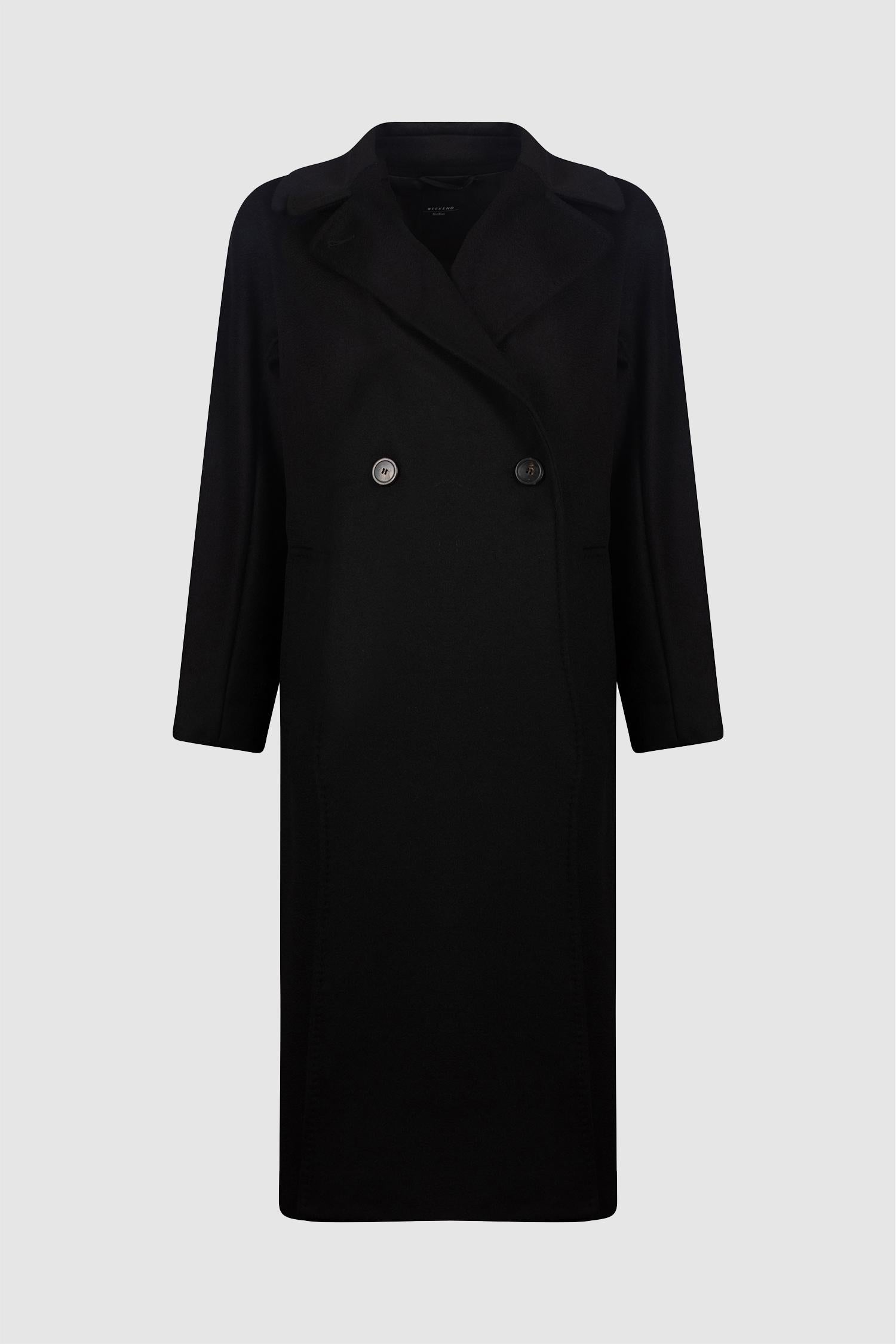 L'eleganza minimalista di Max Mara prende forma in questo cappotto doppiopetto nero, un capo essenziale e senza tempo. Realizzato in lana di alta qualità, unisce stile e comfort in un design raffinato e versatile.