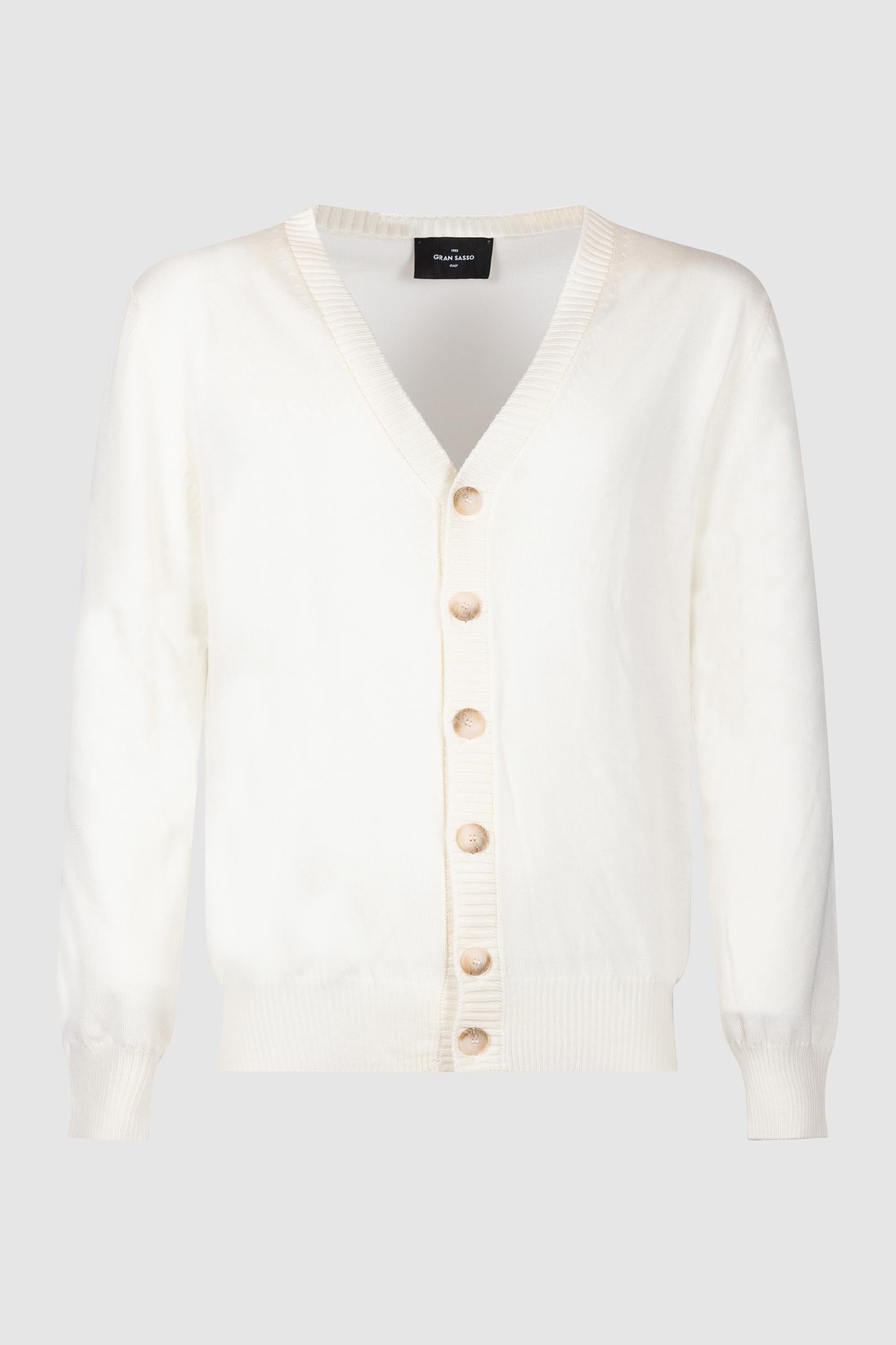 Elegante e versatile, questo cardigan bianco in maglia è un capo must-have per ogni guardaroba. Realizzato in un tessuto morbido e leggero, presenta una chiusura frontale con bottoni tono su tono che ne esaltano la semplicità e la raffinatezza.