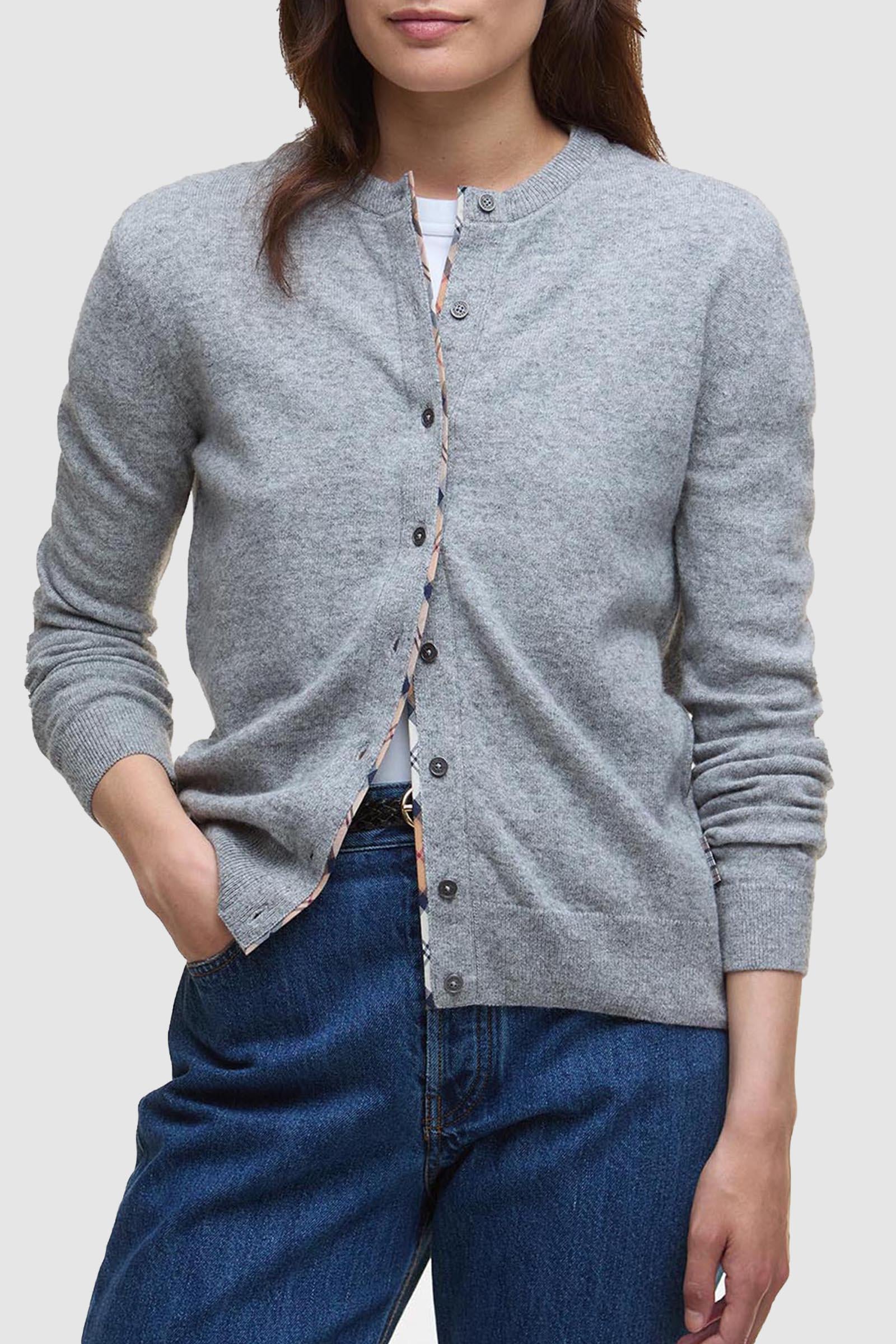 Il cardigan Barbour Pendle è una scelta intelligente ed elegante per la primavera. Questo capo in misto lana e cotone presenta finiture tartan sul retro del collo, sull'abbottonatura e sulle toppe sui gomiti, rendendolo un'opzione femminile per i look del fine settimana.Esterno: 55% lana, 45% cotone Toppe sui gomiti: 100% cotone Sottile targhetta in metallo sul retro del collo. Solo lavaggio a mano