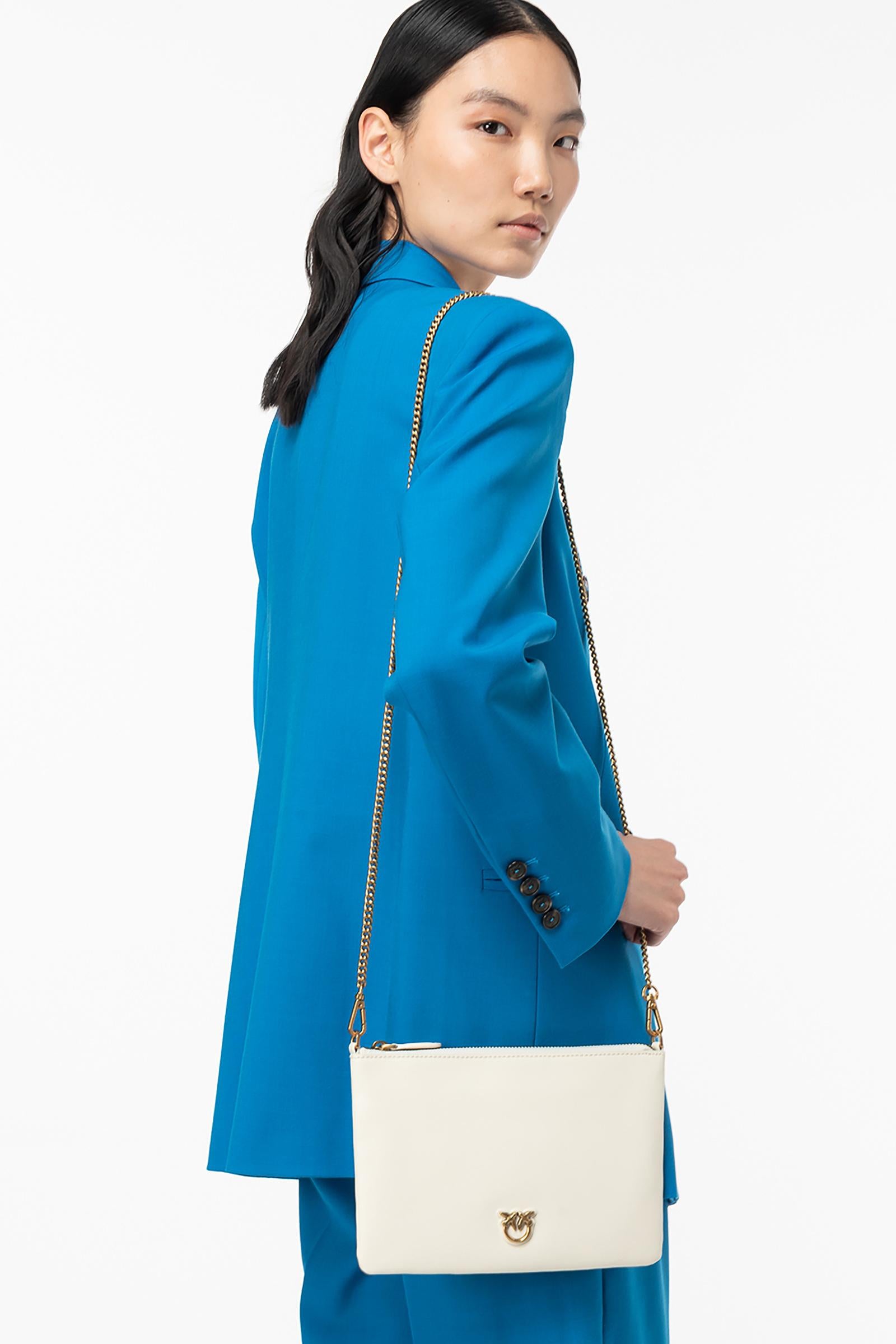 Borsa a tracolla flat in morbida pelle mano seta. Personalizzazione con placchetta Love Birds Diamond Cut. Interno foderato in polycotton e tracolla rimovibile a catena sottile. Chiusura con zip.Pelle: PELLE DI VACCA 100% - 1° Fodera: COTONE 100% - 663: NYLON 50% POLIURETANICA 50%