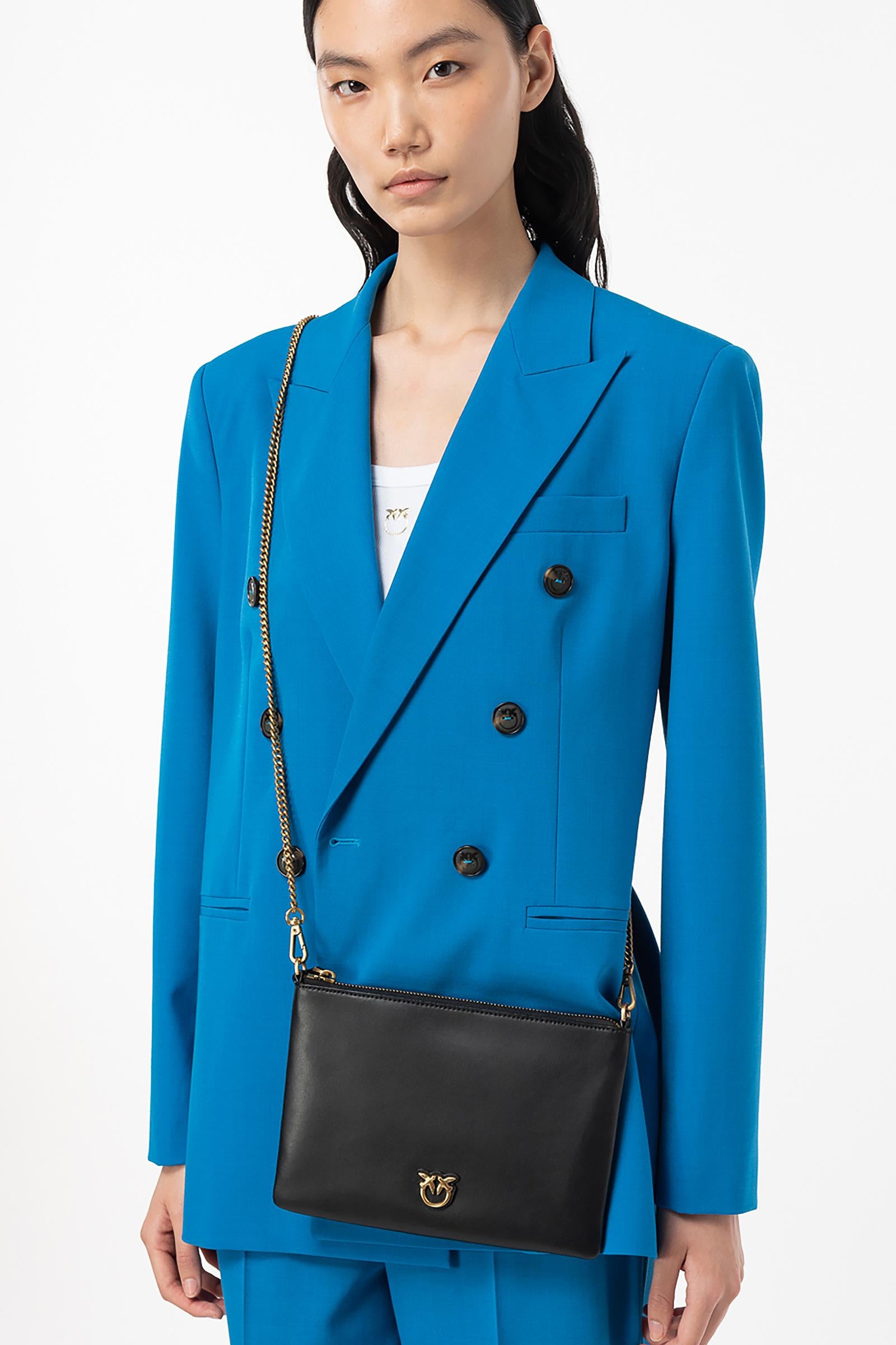 Borsa a tracolla flat in morbida pelle mano seta. Personalizzazione con placchetta Love Birds Diamond Cut. Interno foderato in polycotton e tracolla rimovibile a catena sottile. Chiusura con zip.Pelle: PELLE DI VACCA 100% - 1° Fodera: COTONE 100% - 663: NYLON 50% POLIURETANICA 50%