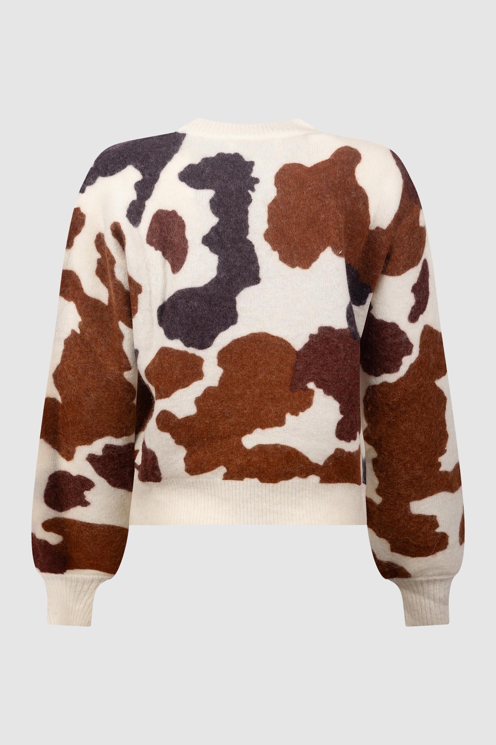 Il maglione fantasia firmato St. Barth è un capo dal carattere deciso e contemporaneo. Realizzato in morbida maglia spazzolata, presenta un originale motivo maculato nei toni del marrone, beige e nero su base écru, perfetto per aggiungere un tocco di personalità ai look invernali. La vestibilità comoda e il girocollo classico garantiscono massimo comfort e versatilità.