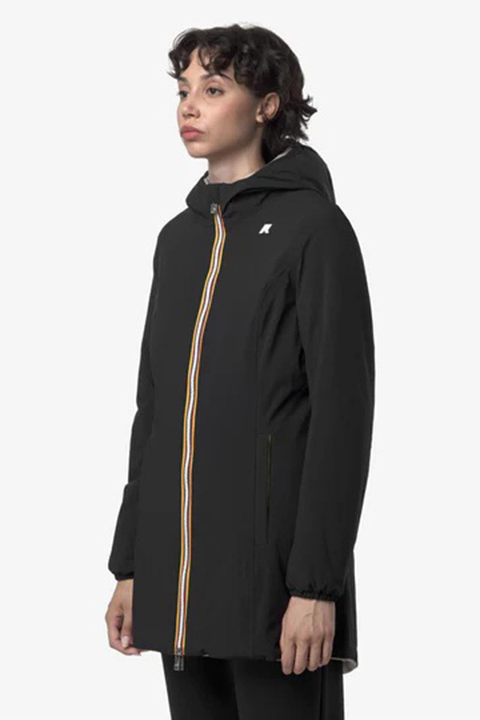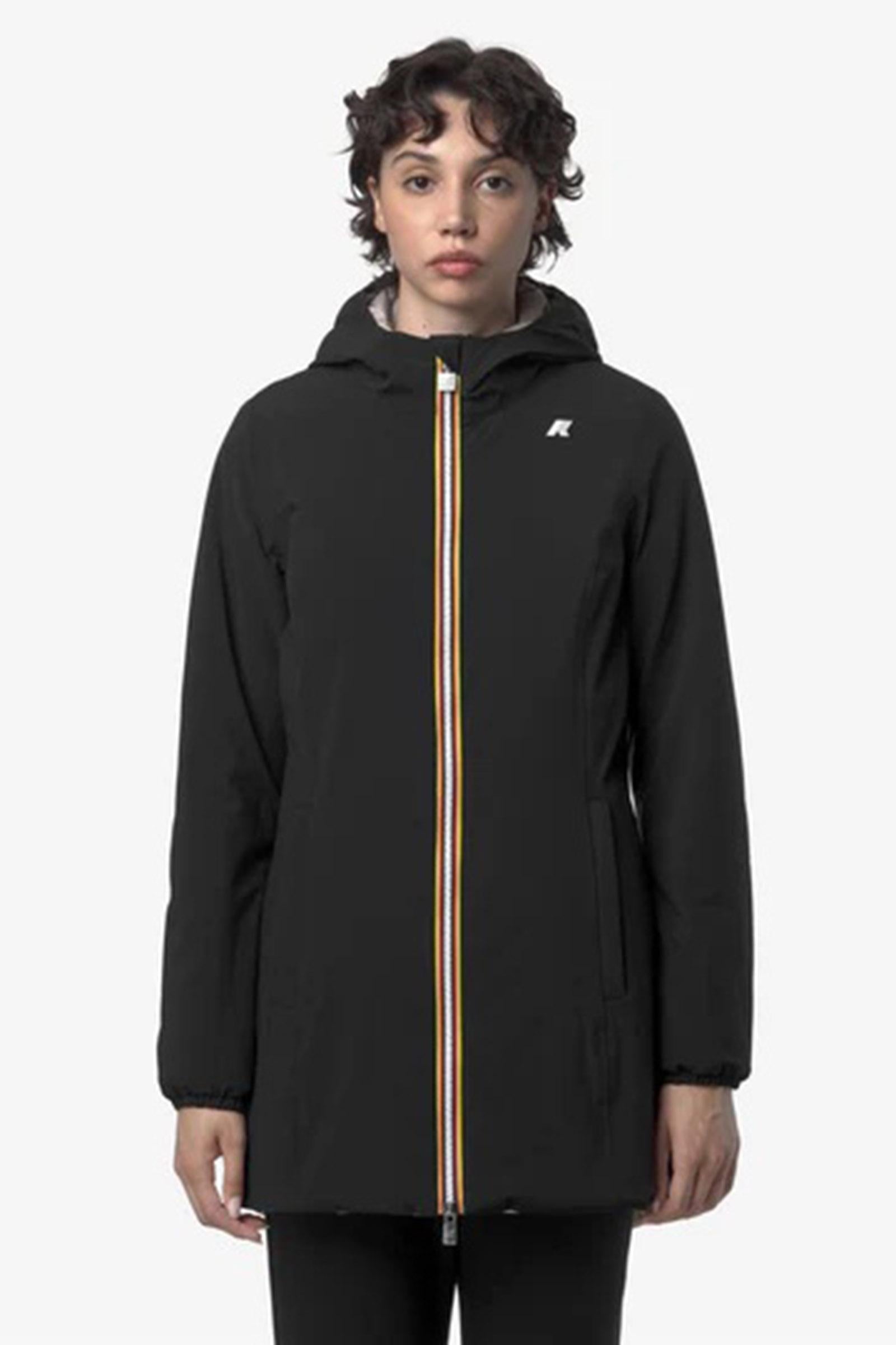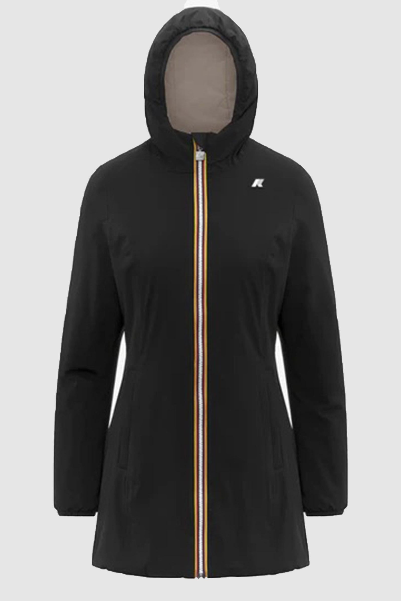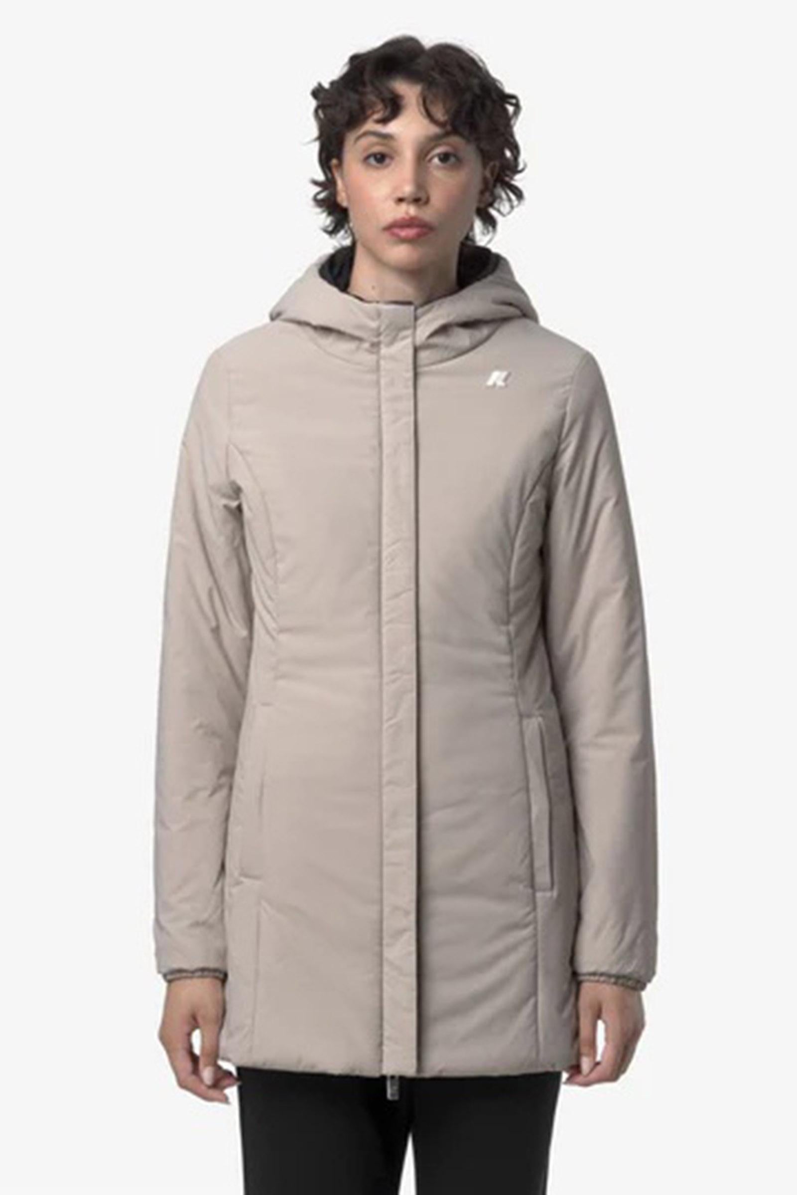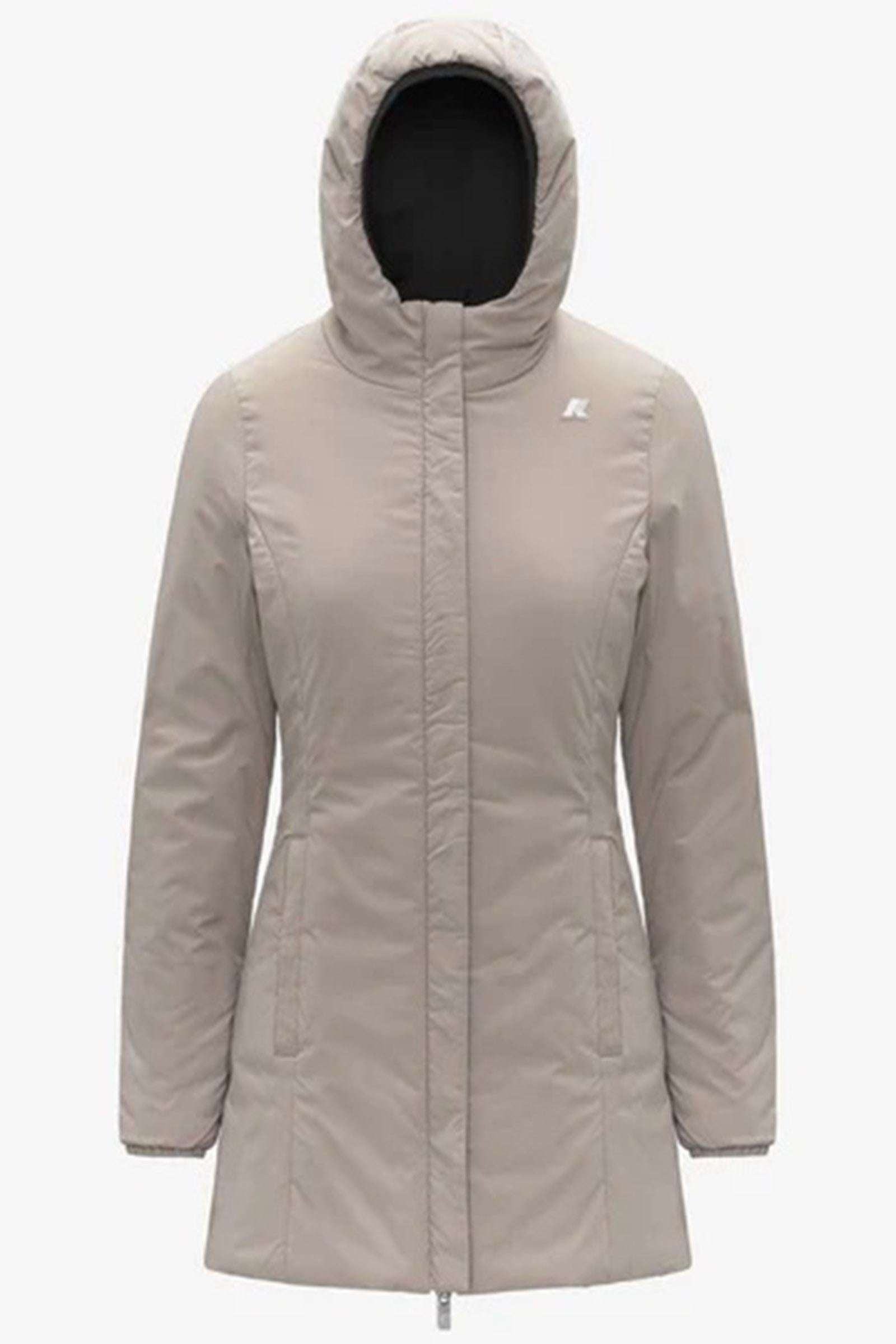 Denise è la giacca da donna con lunghezza a tre quarti che reinterpreta l'ispirazione funzionale K-Way in chiave femminile. Il modello combina un lato in poliestere elasticizzato impermeabile tinta unita e un lato in poliestere antivento dal colore a contrasto. L'imbottitura in ovatta offre un grado di calore medio, ideale per la mezza stagione, mentre le cuciture termonastrate isolano dal freddo e offrono maggiore comfort durante l'attività outdoor.
