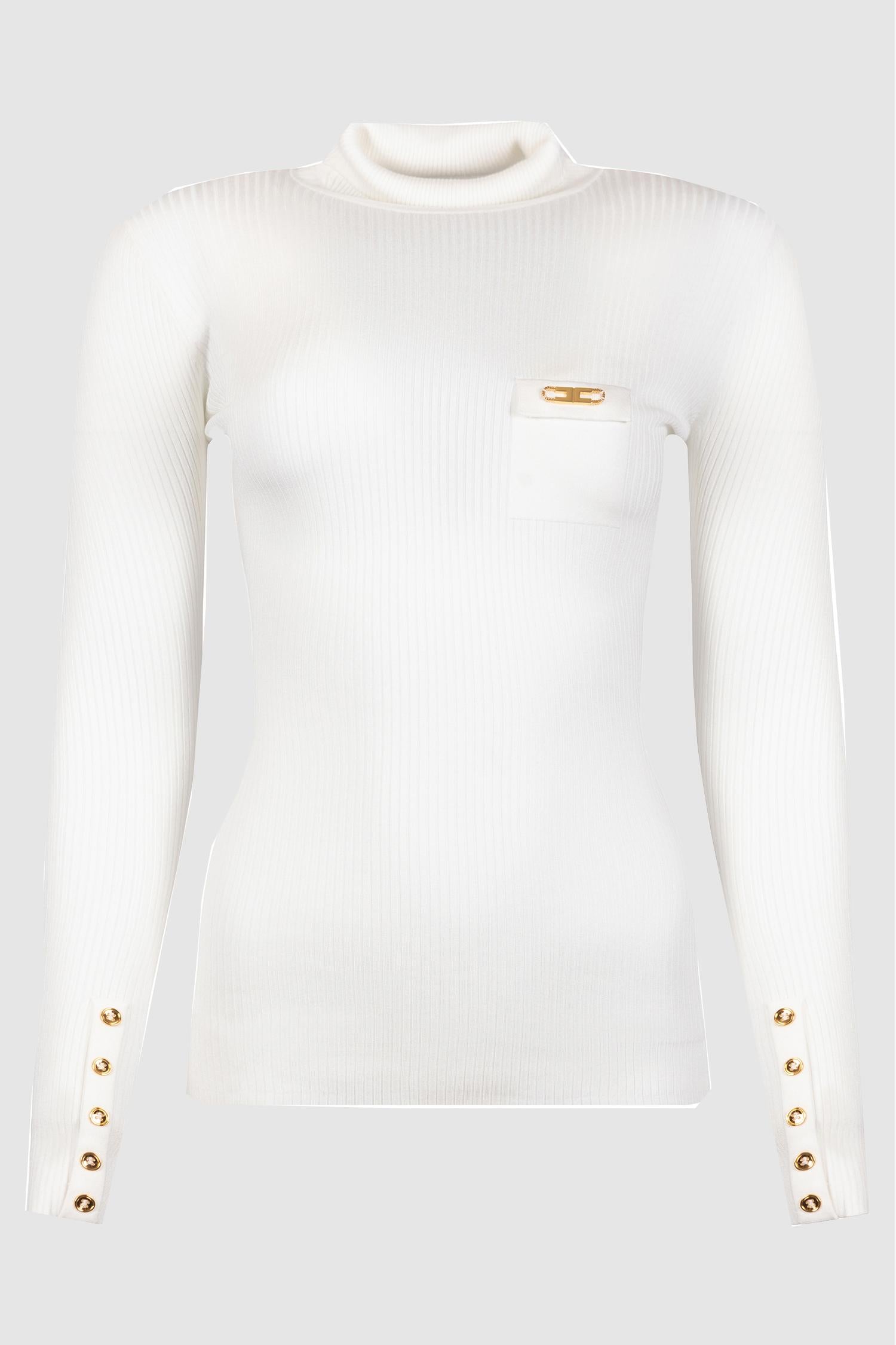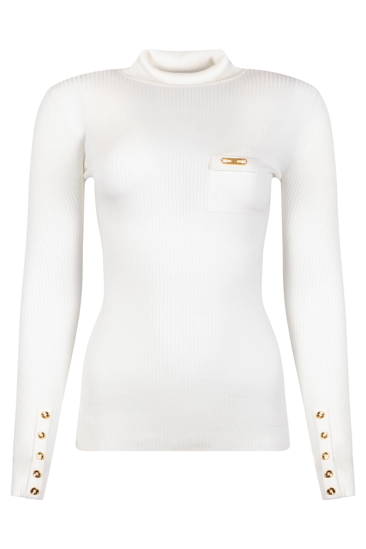 Un capo elegante e raffinato che unisce minimalismo e dettagli preziosi. Questo dolcevita firmato Elisabetta Franchi è realizzato in maglia a costine elasticizzata che valorizza la silhouette, garantendo al tempo stesso comfort e femminilità.