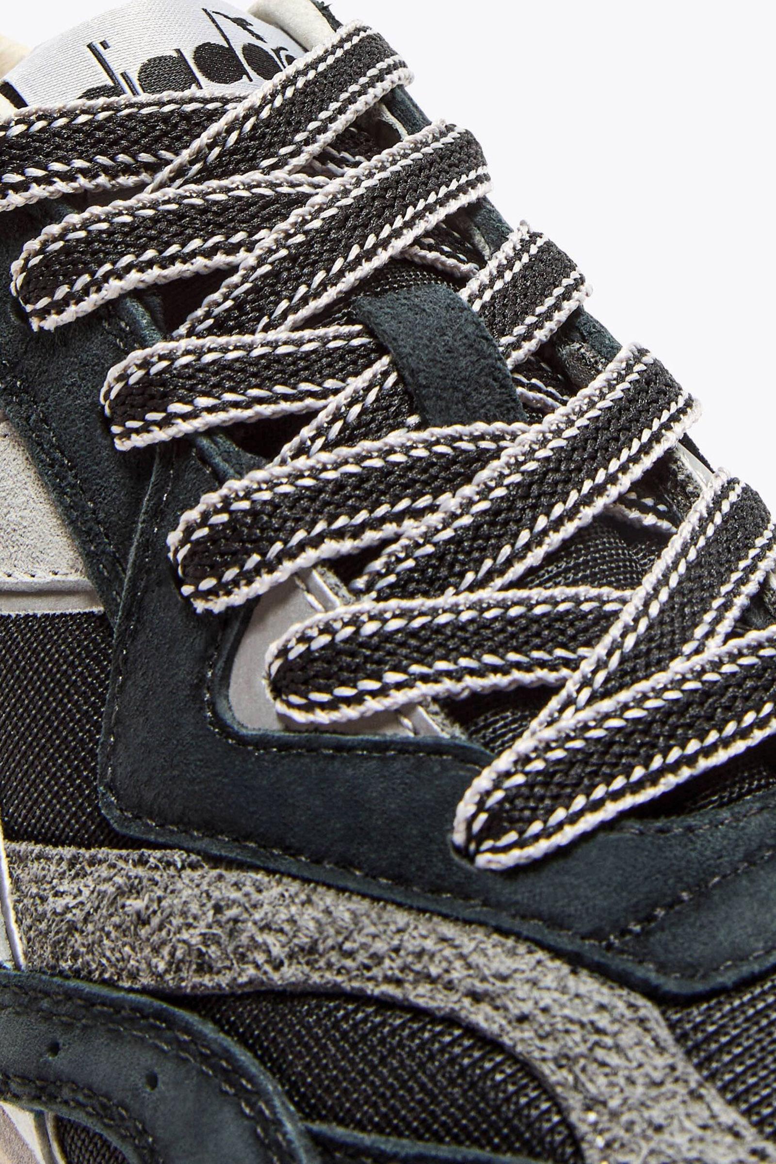 Un mix di texture elaborato per una sneaker unica: Equipe Revenge Used è realizzata in suede con dettagli in hairy cow suede. I trattamento stone wash e wax ammorbidiscono la pelle e donano il classico effetto used, firma inconfondibile della linea Heritage Diadora.