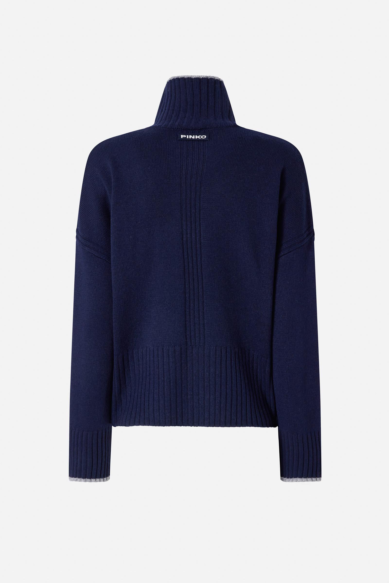 Dolcevita a maniche lunghe in misto lana merino e cashmere. Il filato a contrasto su scollo e polsini dona un tocco di vivacità al design. Scollo, orlo e polsini sono lavorati a coste, mentre il tocco finale è dato dall'etichetta con logo lettering PINKO sul retro. Composizione: Filato Esterno: 90%WO 10%WS.