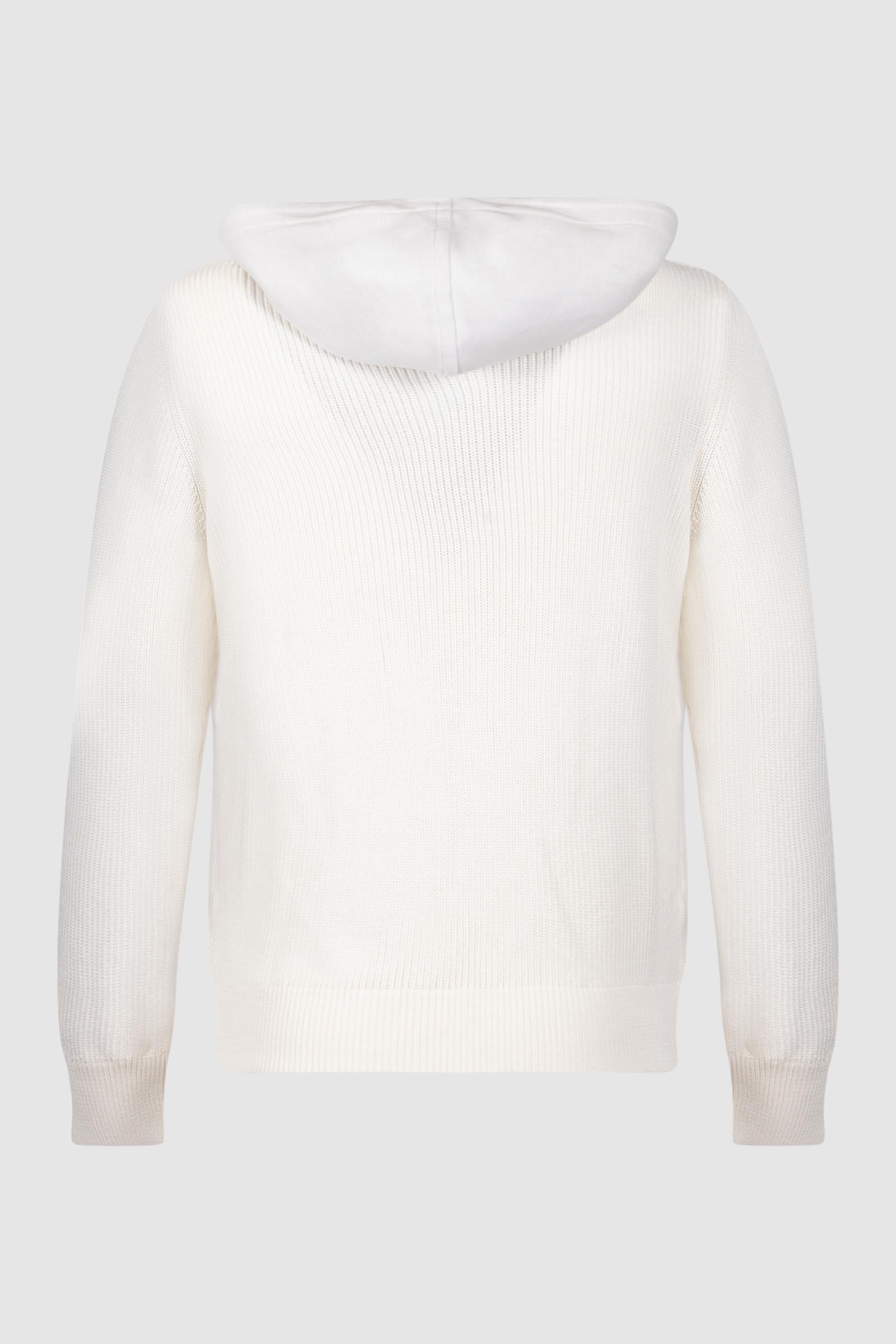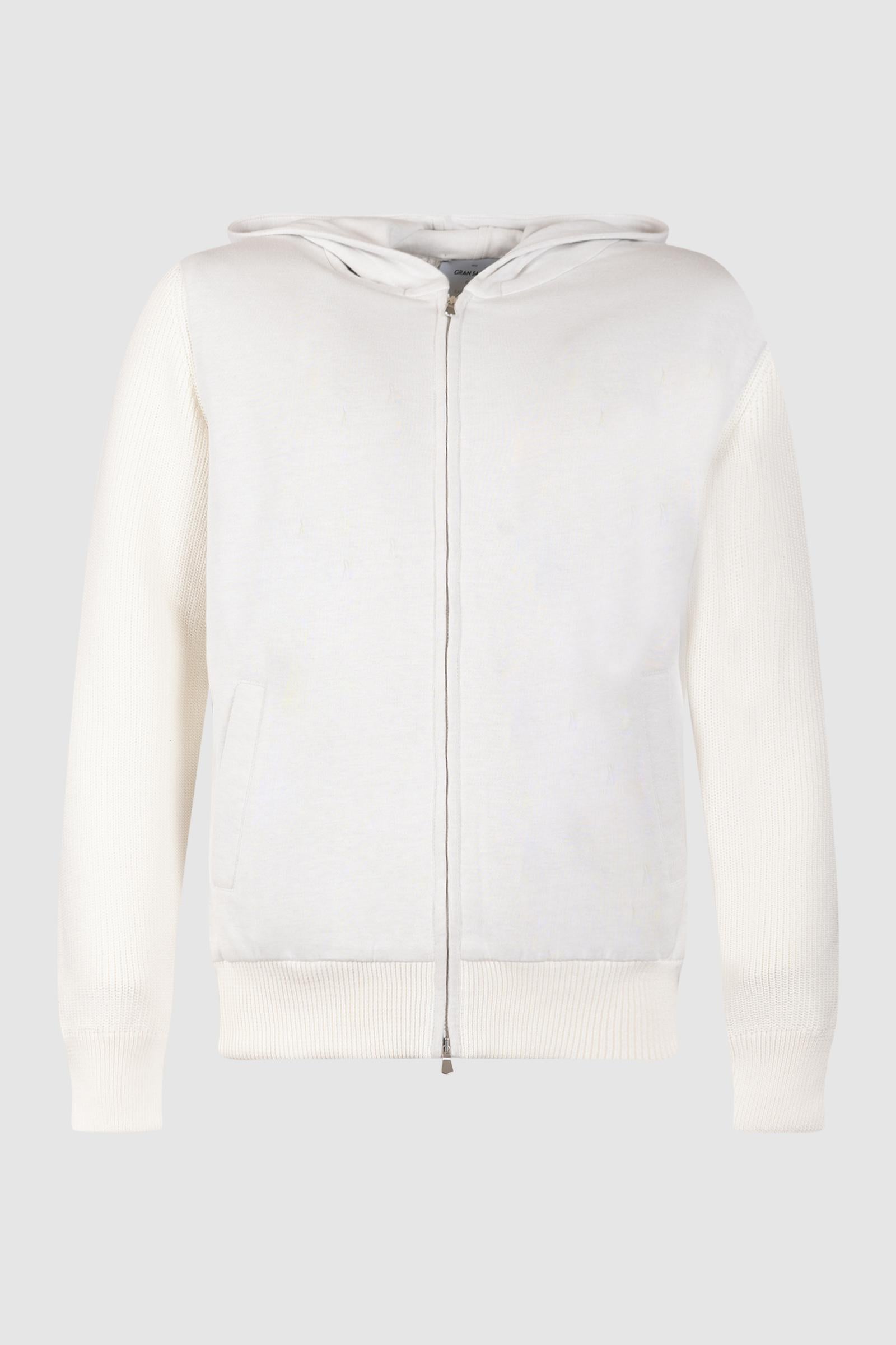 Felpa con maniche in maglia tramata, polsini e cappuccio. Composizione:98%cotone 2%poliammide.