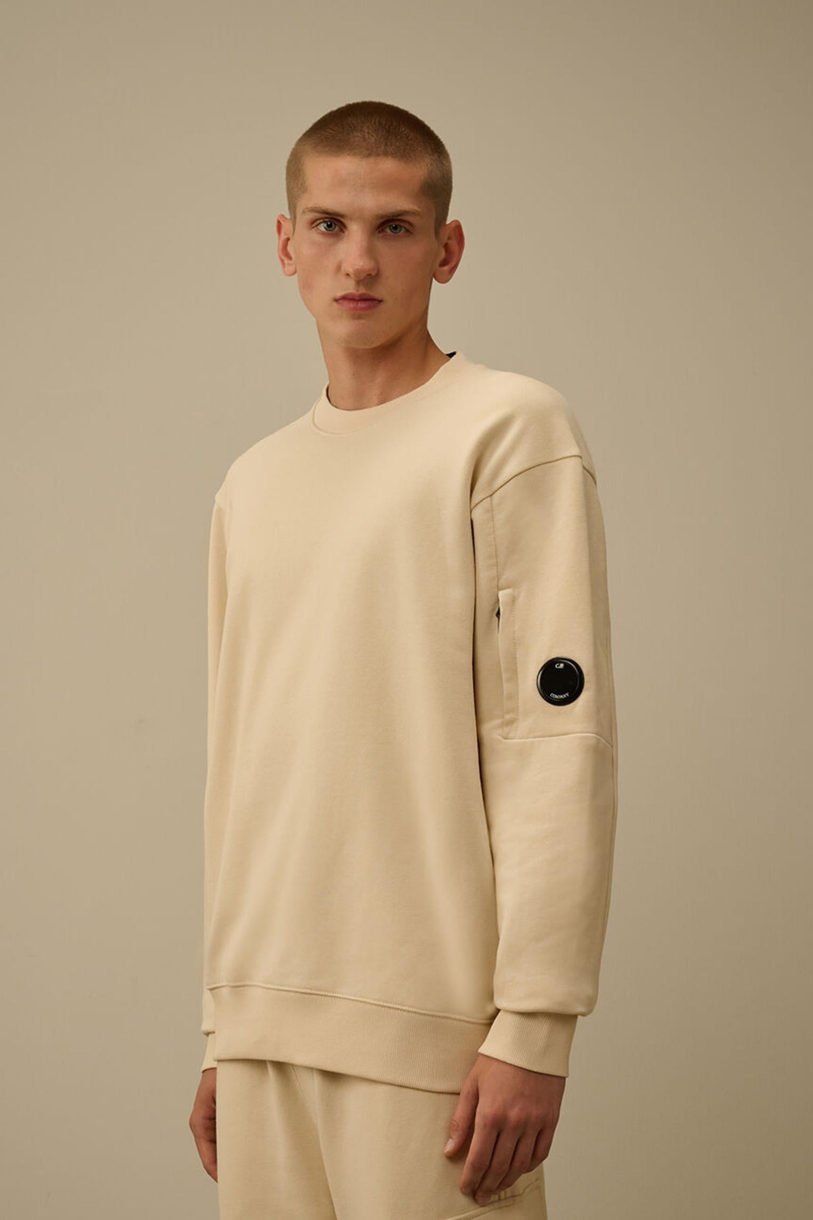 Felpa girocollo realizzata in Diagonal Raised Fleece, un cotone spazzolato a trama diagonale di peso medio. Il tessuto morbido assicura comfort e libertà di movimento. Il capo presenta logo ricamato sul retro del collo, l'iconica Lente di C.P. Company, polsini e orlo a costine. Regular fit.