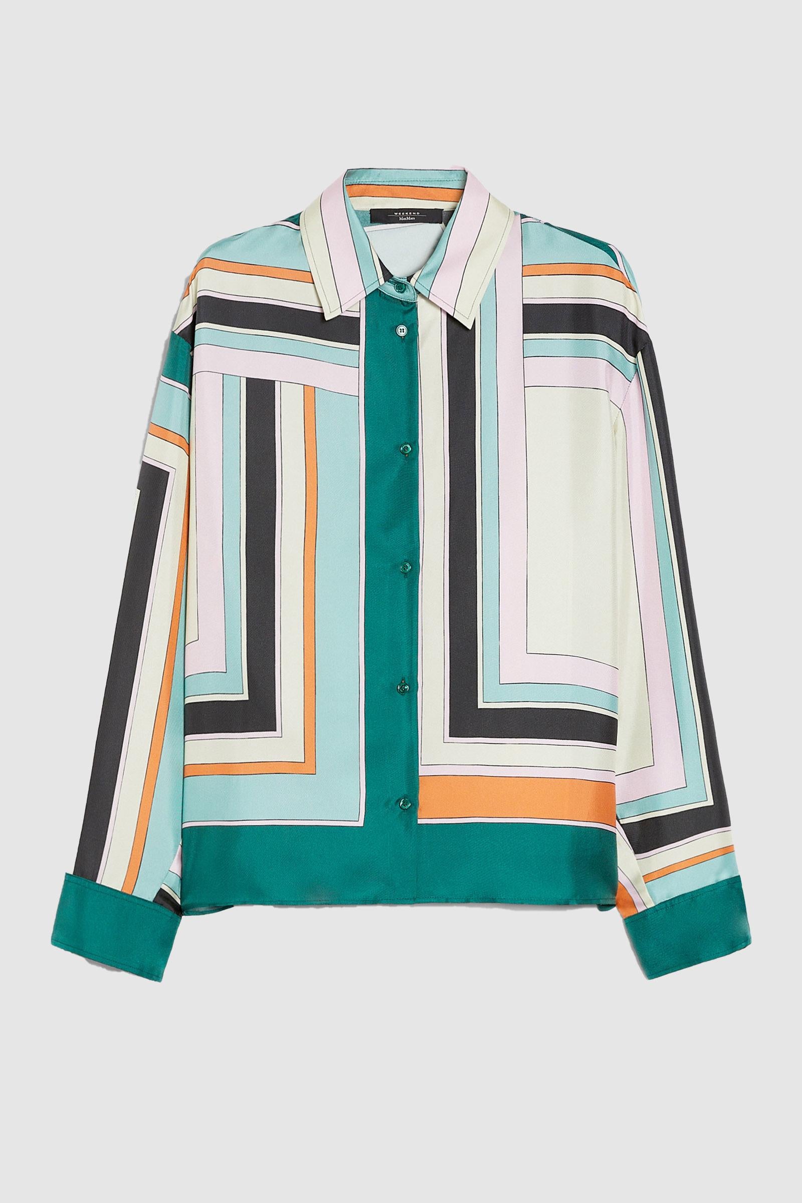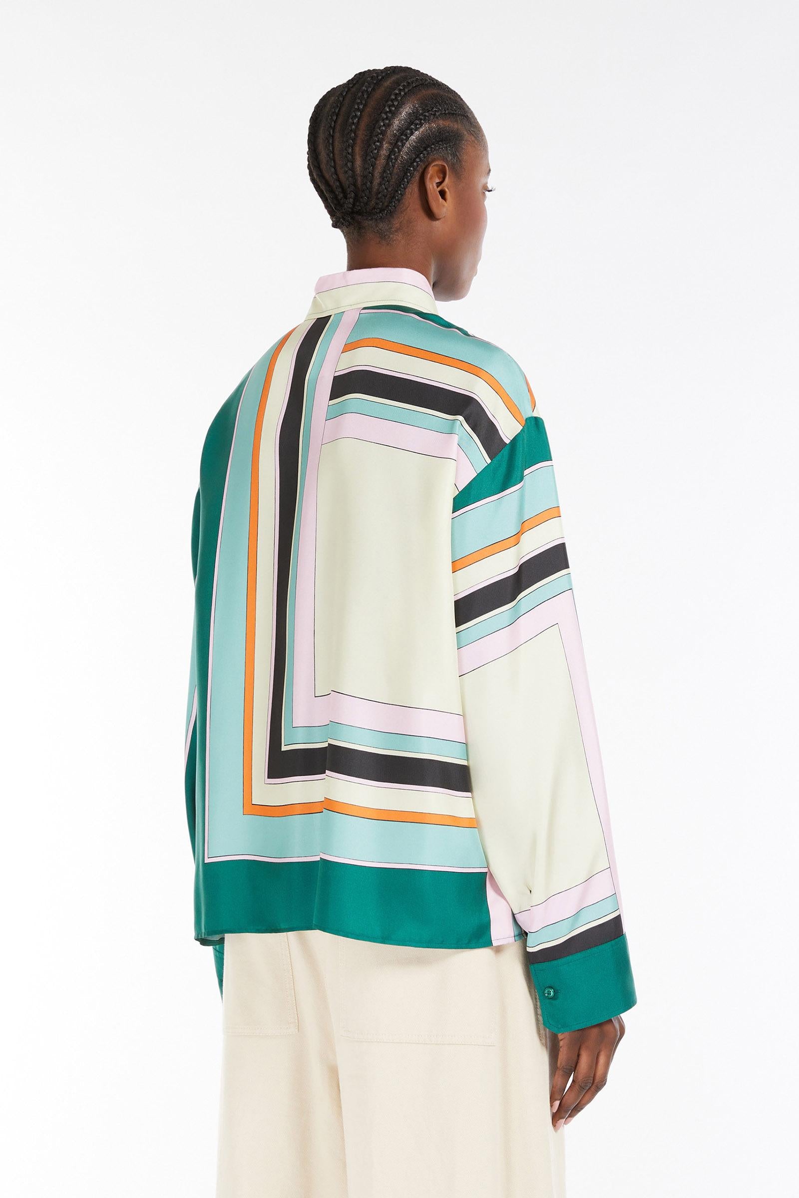 Camicia dalla linea dritta, realizzata in prezioso twill di pura seta stampata. Il modello è caratterizzato da colletto classico, maniche lunghe a giro e polsini con bottoni. Rifinita con spacchi laterali al fondo. Chiusura con bottoni a vista. Composizione: 100% seta.