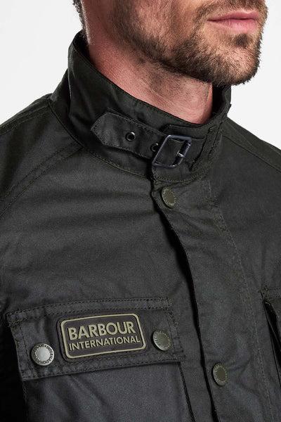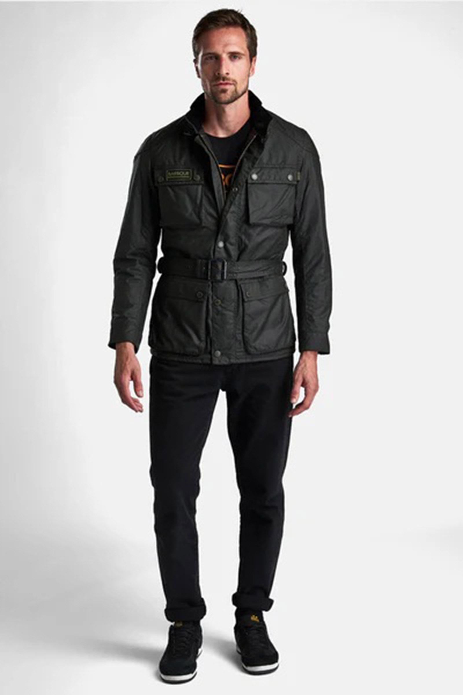 La Blackwell è una giacca cerata da uomo pronta per l'inverno ispirata alla tradizione motociclistica di Barbour International. È tagliata per una vestibilità slim contemporanea e costruita per combattere gli elementi con un resistente esterno in cotone cerato Sylkoil e una fodera trapuntata, che mostra anche una distintiva stampa di pneumatici di marca. Quattro tasche esterne hanno forma quadrata e le patte con chiusura a bottone viste per la prima volta sulla tuta da motociclista di Barbour International, mentre la cintura in vita, l'hardware in ottone e il colletto alto con fibbia strizzano anch'essi l'occhio al caratteristico look da motociclista. L'iconica targhetta Barbour International in nero e giallo decora il taschino destro.