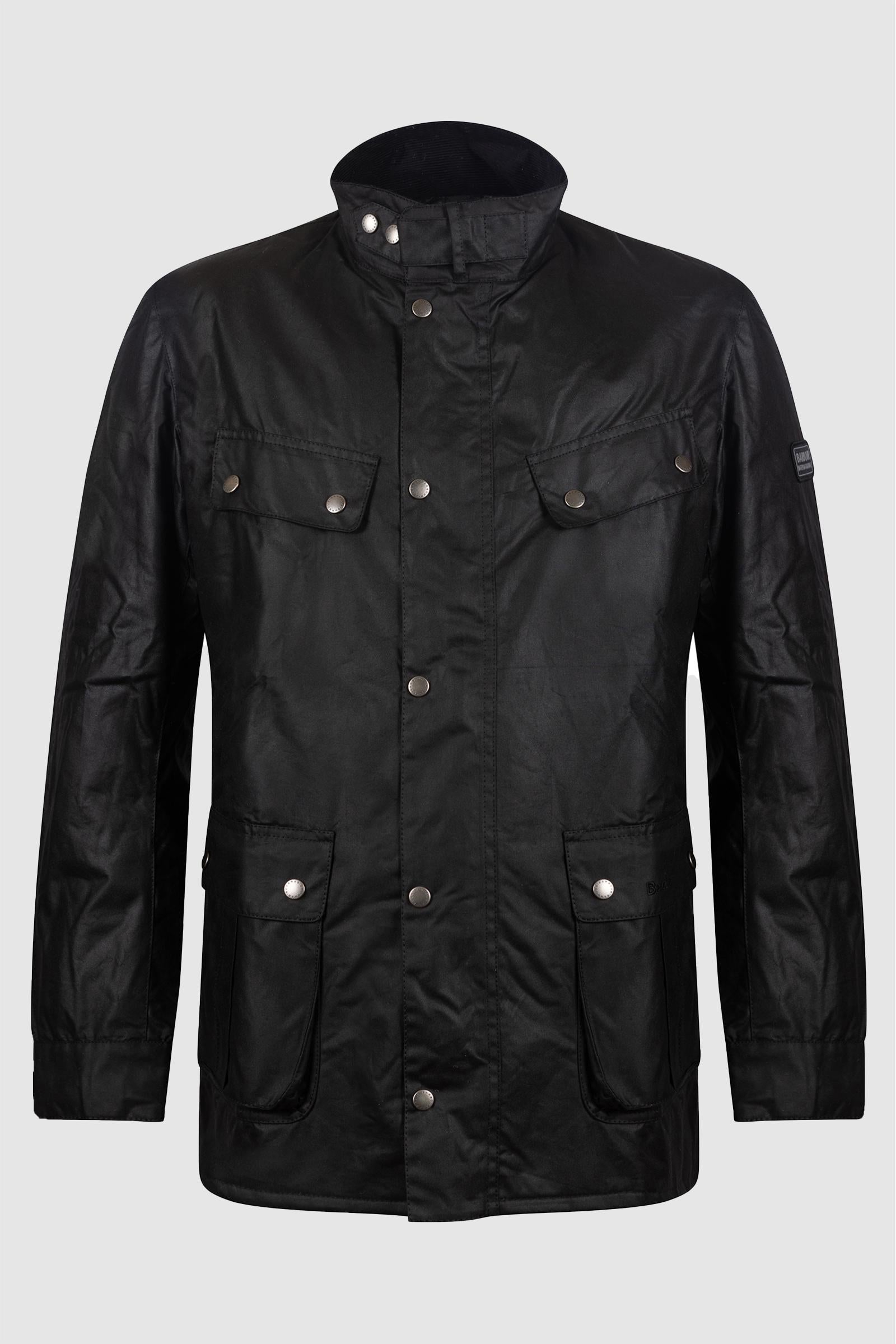 Ispirata all'abbigliamento motociclistico vintage, la Barbour International Duke Wax Jacket combina stile urbano e funzionalità tecnica. Realizzata in cotone cerato 6oz impermeabile e antivento, garantisce protezione dalle intemperie senza rinunciare a un look deciso e contemporaneo.
