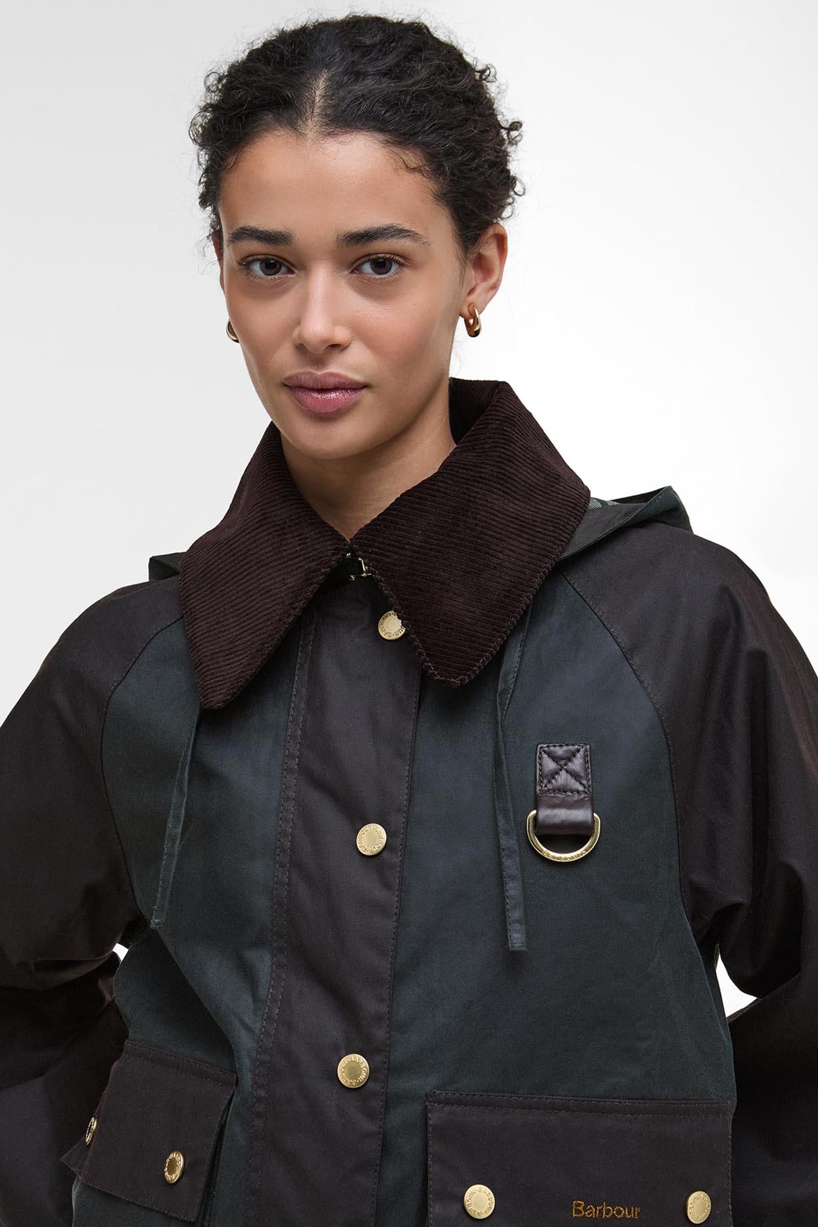 Ispirata alla giacca cerata Spey, uno dei modelli d'archivio più amati, il capospalla Reighton Spey di Barbour, anch'esso cerato, sfoggia tutti i classici elementi che caratterizzano l'originale, come il dettaglio con anello a D sul petto e il cappuccio fisso. Un colletto oversize a coste sottili e le finiture in tartan sui polsini completano il tutto regalando un tocco contemporaneo e giocoso.Esterno: 100% cotone (cerato) Pannello posteriore interno/fodera del cappuccio: 65% poliestere, 35% cotone Fodera delle maniche/sistema anti-goccia: 100% poliestere Interno/Colletto: 100% cotone Sylkoil da 170 g Logo sulla tasca sinistra Lunghezza posteriore: 61 cm Non lavare. Pulire solo con una spugna.
