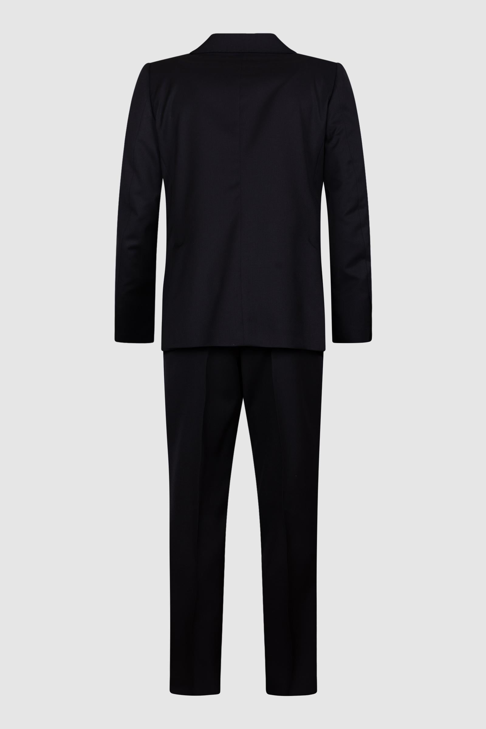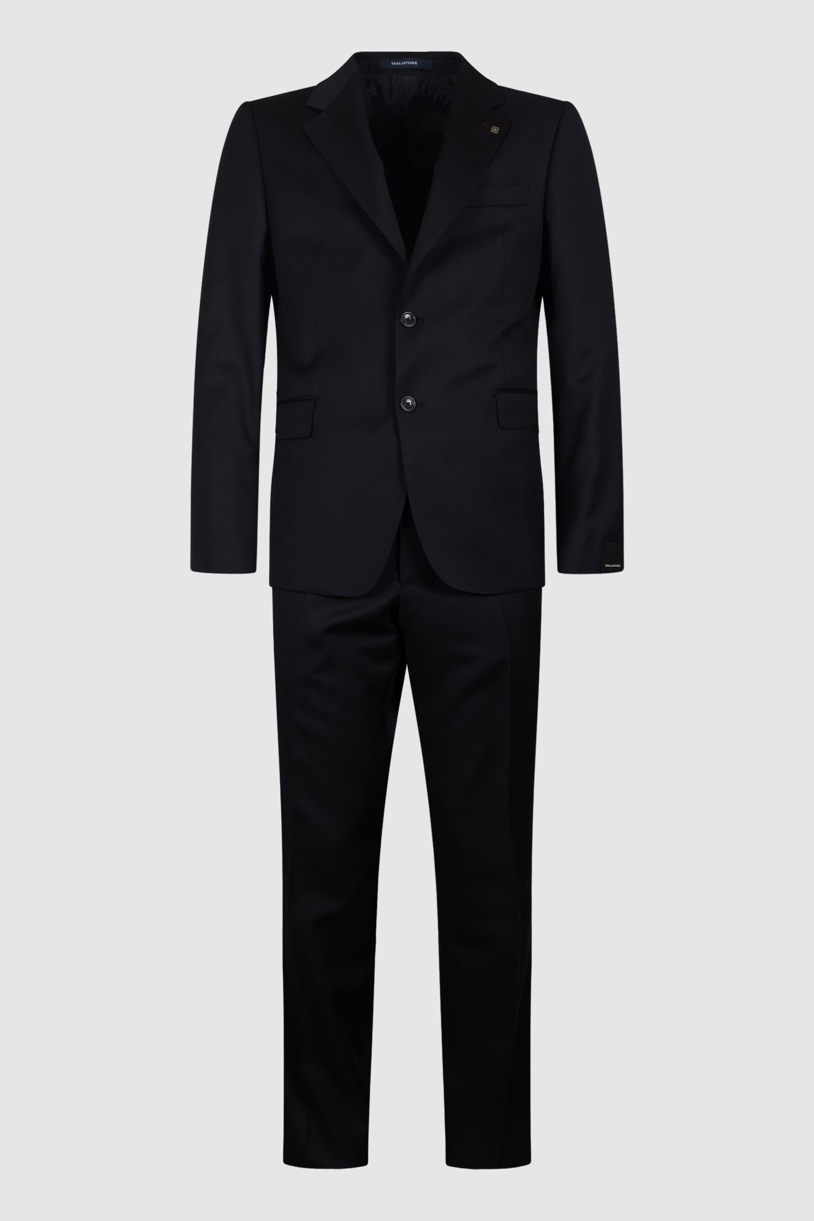 Eleganza sartoriale e linee pulite si incontrano in questo abito firmato Tagliatore, realizzato in pregiata lana vergine blu navy. La giacca monopetto a due bottoni presenta un revers classico con occhiello ricamato, taschino sul petto e tasche a pattina, mentre la costruzione semi-strutturata garantisce comfort e vestibilità impeccabile. I pantaloni coordinati hanno una linea slim con piega stirata centrale, tasche laterali alla francese e posteriori a filetto con bottone.