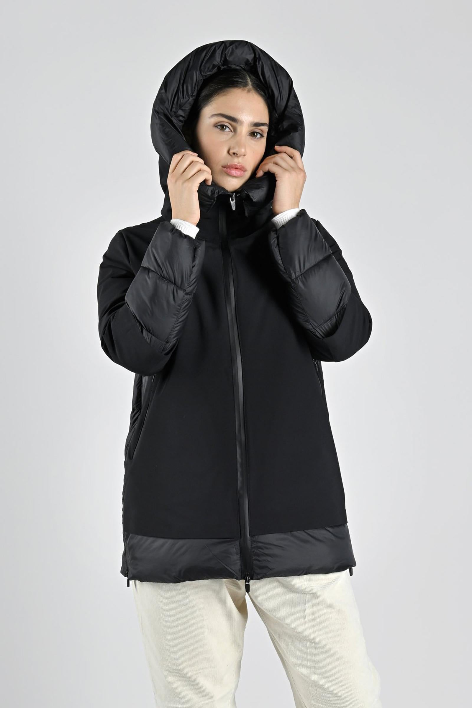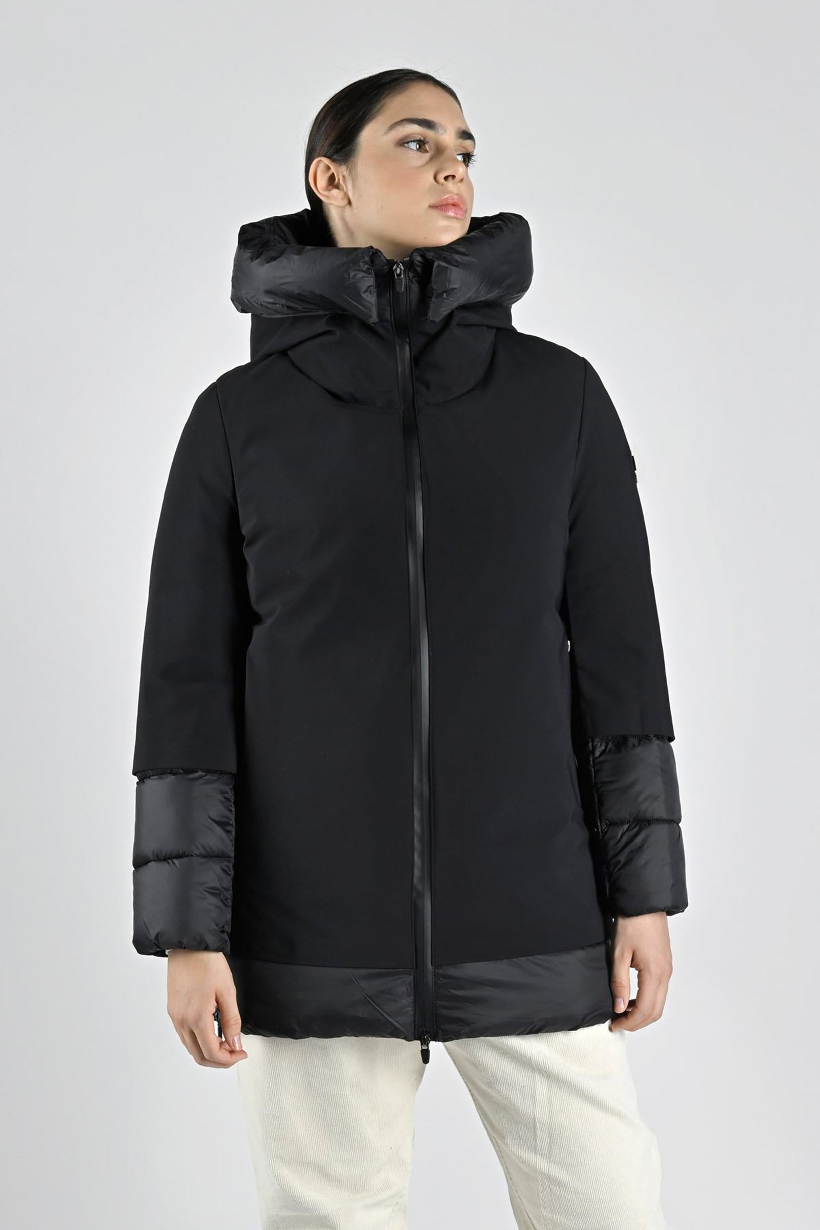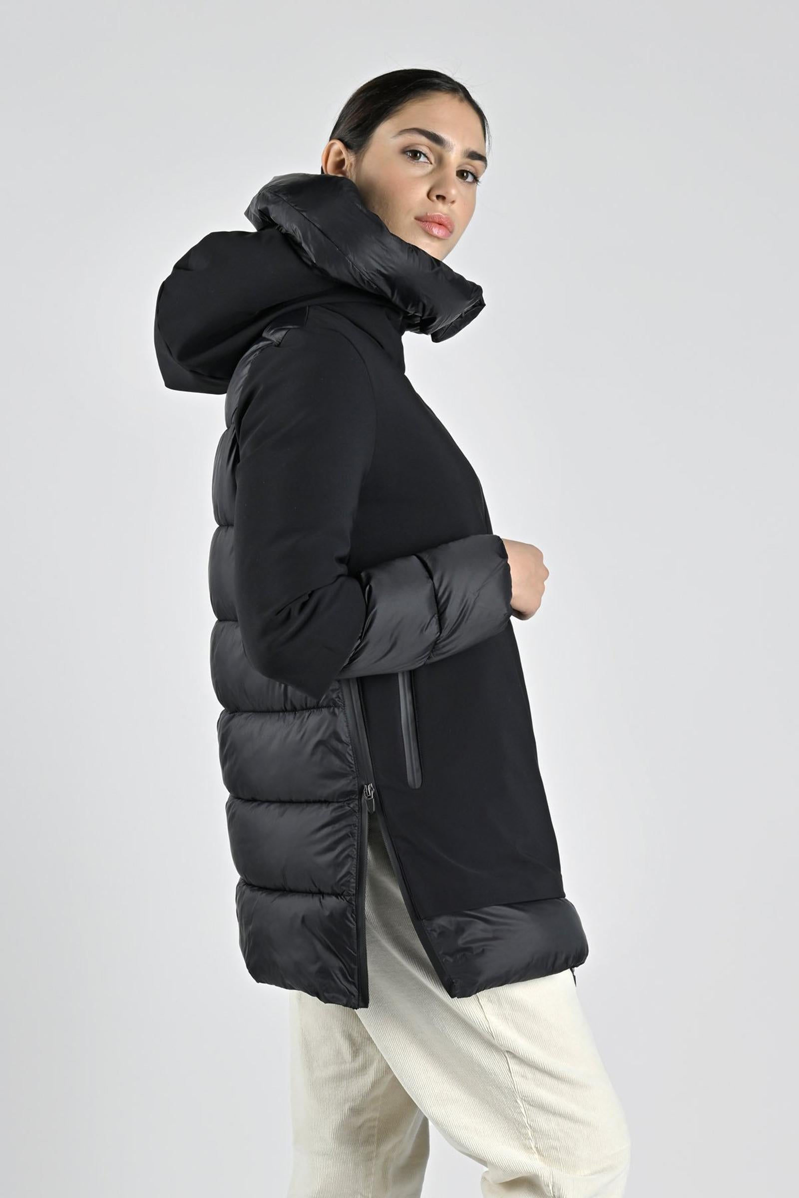 E' il capospalla numero uno della stagione fredda, un vero e proprio must have per i mesi in cui il termometro scende al di sotto dello zero. Questo, realizzato in nylon resistente all'acqua e imbottito di 100% poliestere estremamente traspirante, ha un'aspetto glamour e metropolitano. Le sue caratteristiche vincenti sono il collo alto e la zip a contrasto, particolarità che gli conferiscono un look modaiolo ed elegante. Indossalo con un paio di pantaloni di tessuto maschile abbinati a un dolcevita a contrasto oppure, con una gonna dritta che arriva al ginocchio, un paio di stivali di suède e una borsa en pendant: il risultato sarà da dieci e lode. Composizione: esterno: 39% poliammide 46% poliestere 15% elastan - interno 100 % poliammide - imbottitura: 100% poliestere