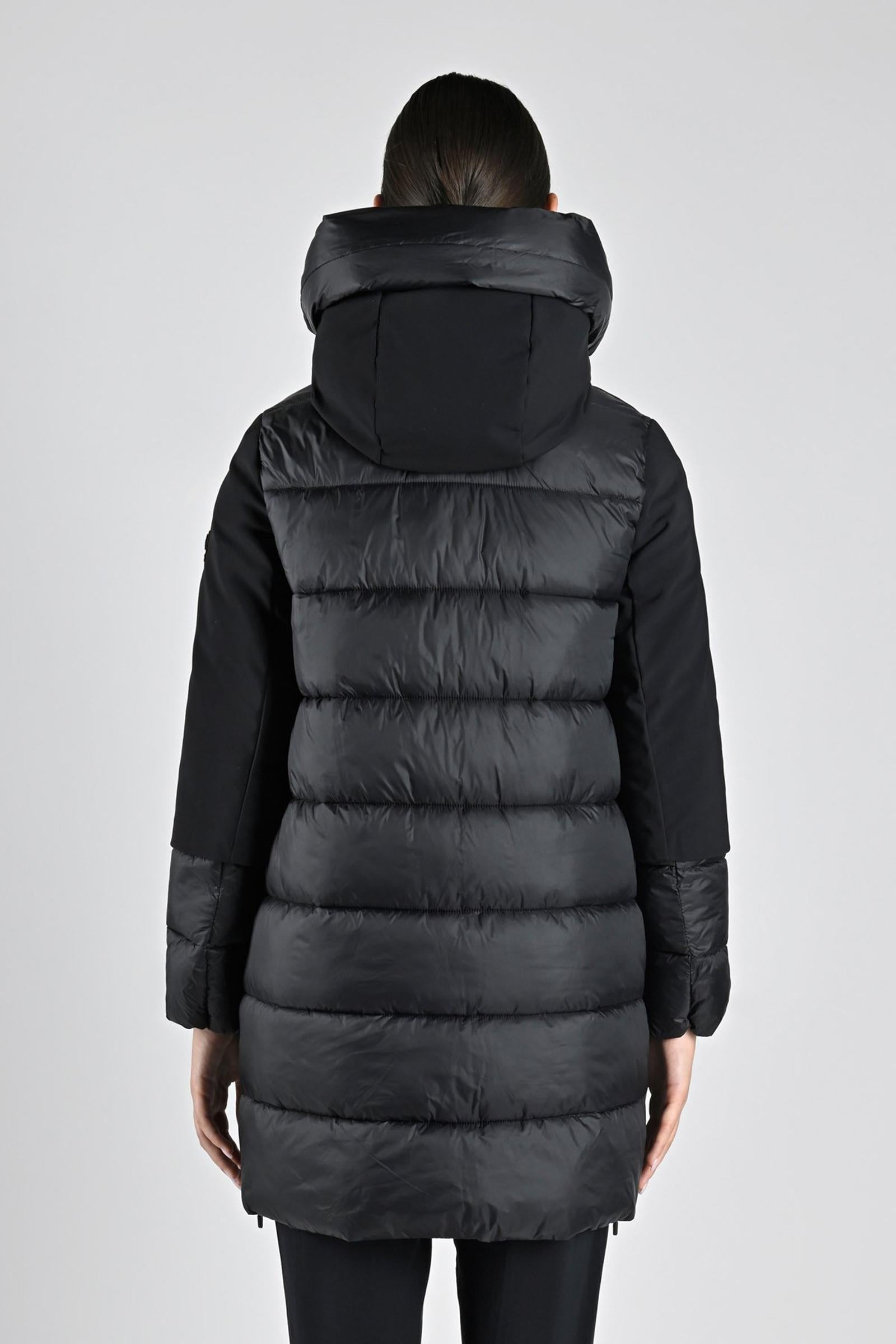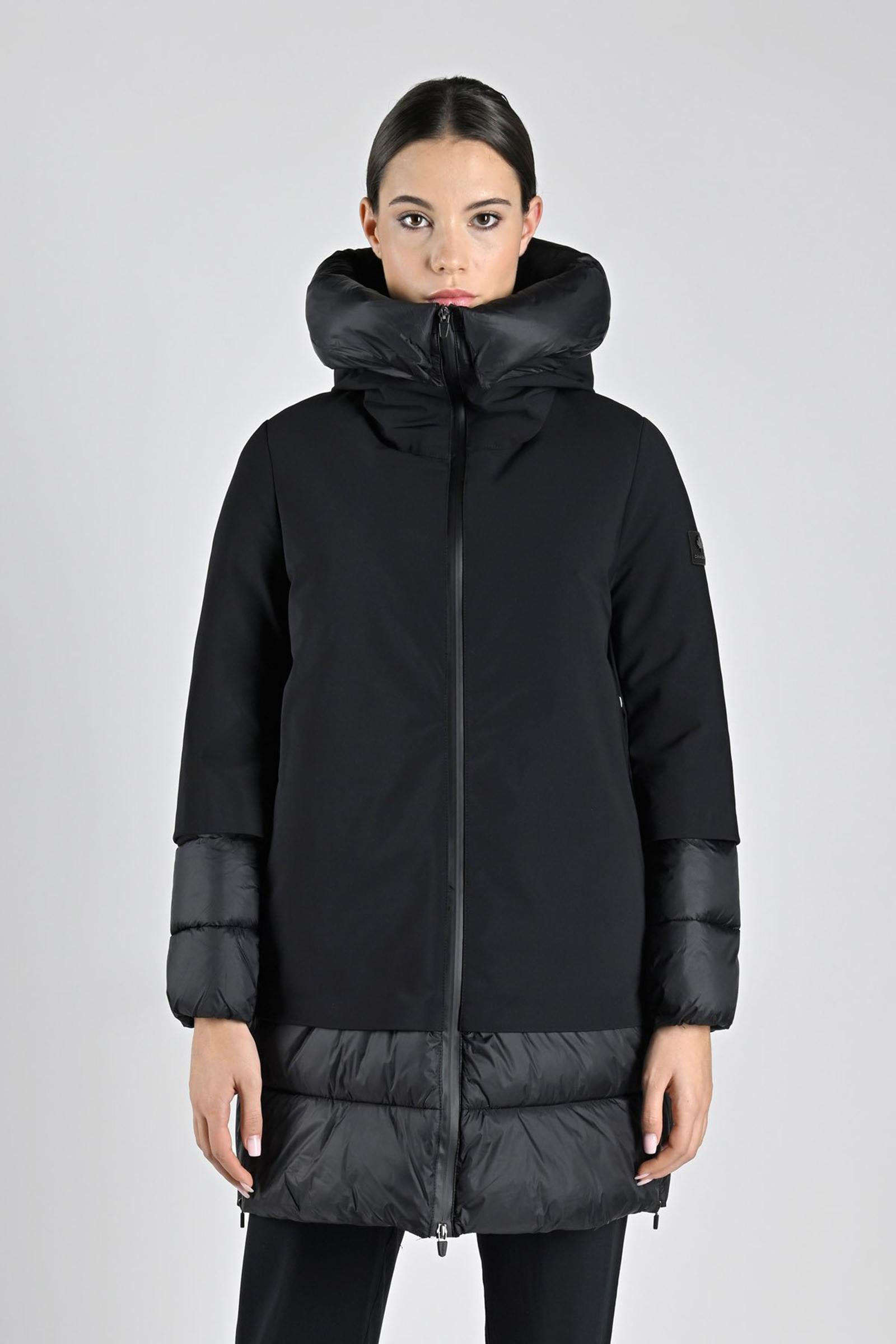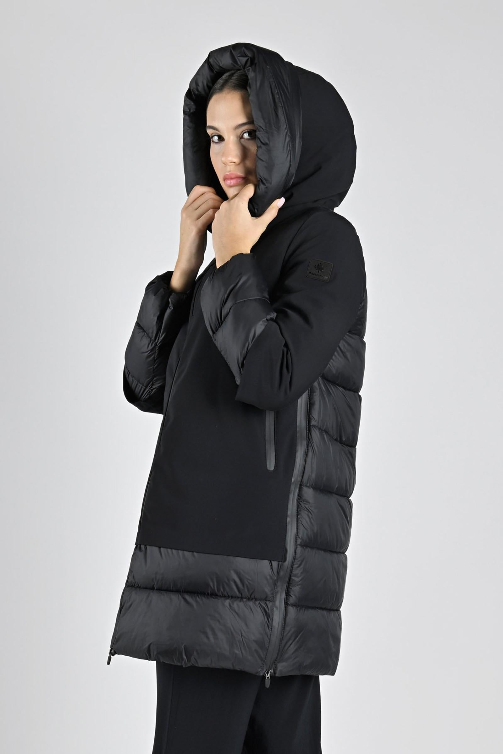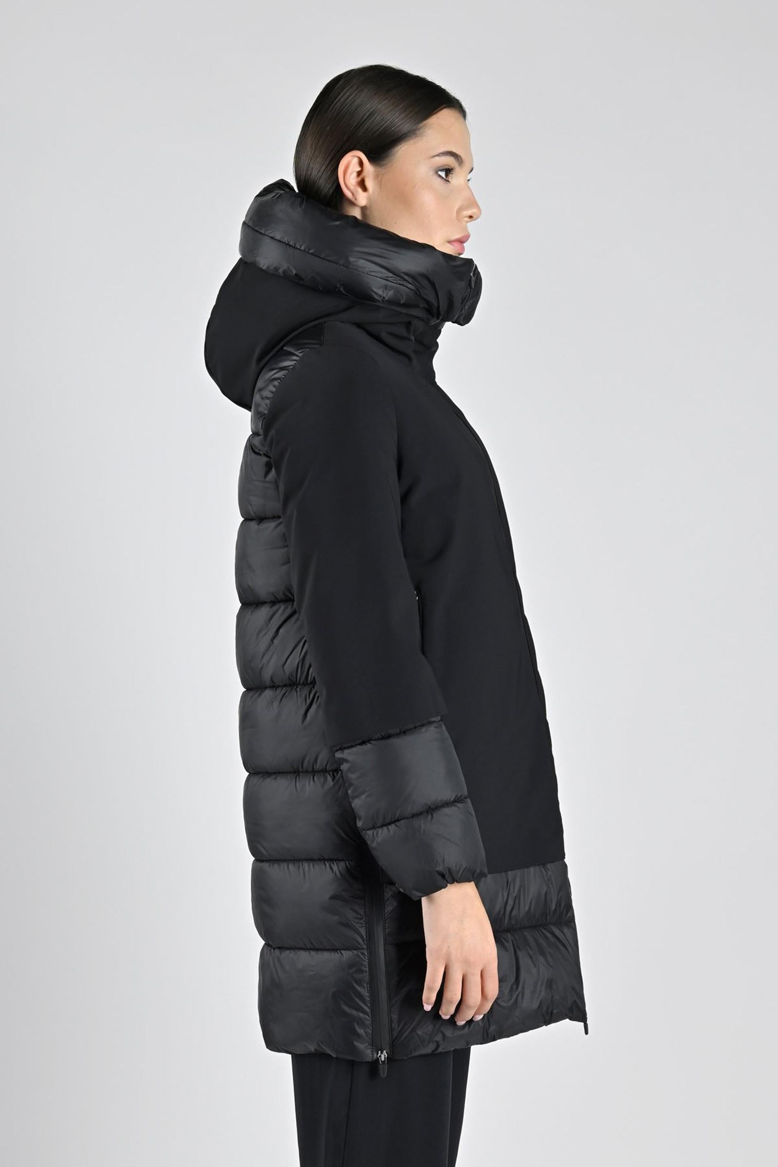 E' un fantastico mix and match tra un piumino e un cappotto e, ne siamo certe, risolverà con uno stile impeccabile, ogni vostro outfit invernale. Idrorepellente e traspirante, questo capospalla è realizzato in nylon ed è imbottito da poliestere, ha una chiusura a zip e un pratico cappuccio integrato pronto all'uso. I giochi di contrasto tra lucido e opaco, liscio e trapuntato sono le caratteristiche che lo rendono davvero speciale. Anche se il suo design ha un aspetto sportivo, riuscirà a essere estremamente elegante se indossato sopra un abito di maglia magari dello stesso colore con stivaletti di vernice, una clutch coordinata e qualche bijoux dorato. Composizione: esterno: 39% poliammide 46% poliestere 15% elastane - interno 100 % poliammide - imbottitura: 100% poliestere