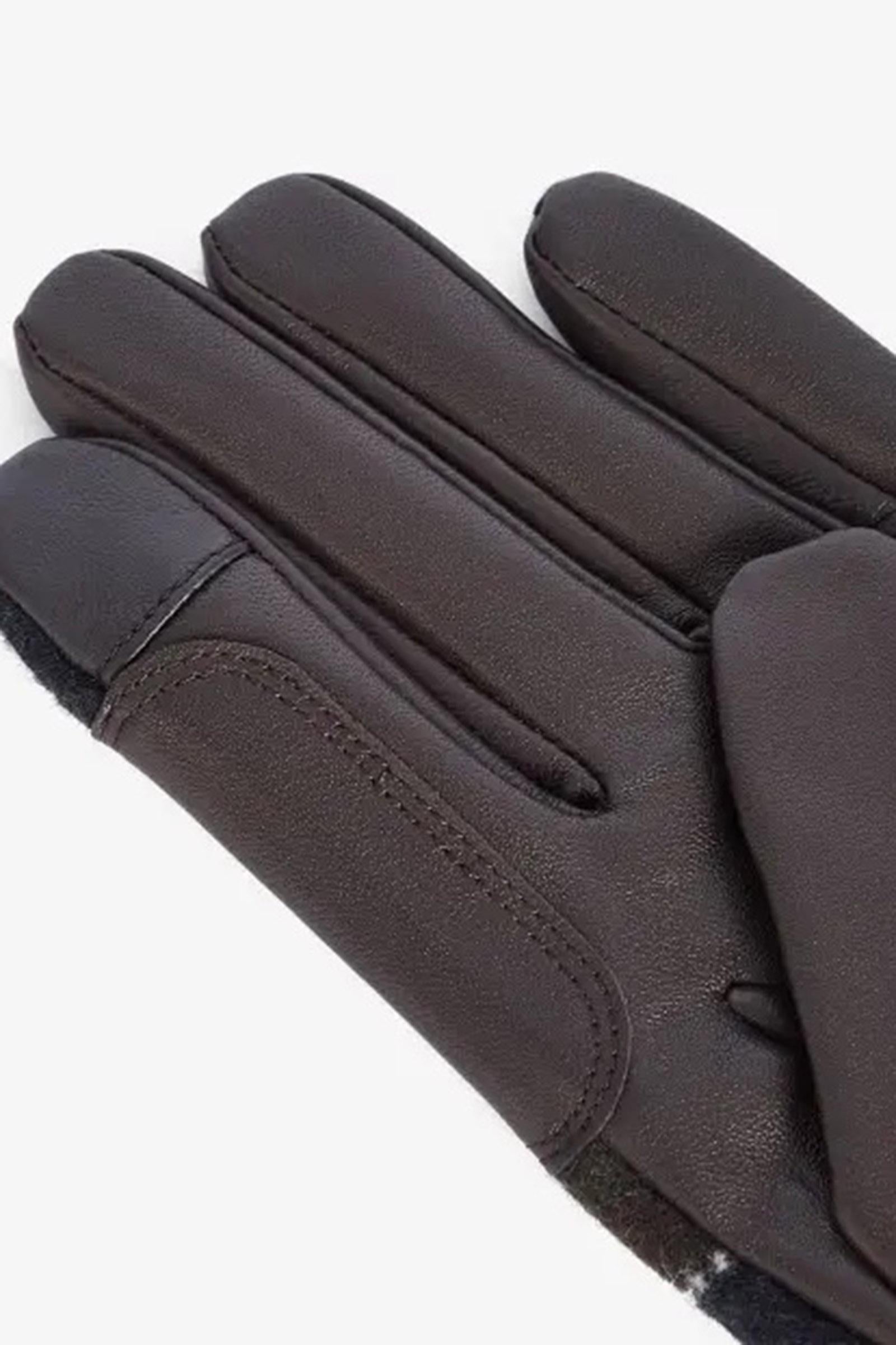 Studiati per offrire un caldo riparo alle mani quando le temperature scendono, i guanti in tartan Aubrey di Barbour sono realizzati in morbida pelle. L'elegante cinturino con bottone a pressione sul polso consente di personalizzarne la vestibilità, mentre le punte delle dita permettono di utilizzare qualsiasi touchscreen senza esporre le mani al freddo.Materiale esterno principale: 100% cuoio. Tessuto secondario: 70% lana, 30% poliammide. Rivestimento interno: 100% poliestere. Membrana impermeabile. Adatti ai touchscreen Sul cinturino: bottone a pressione con logo Non lavare. Pulire solo con una spugna.