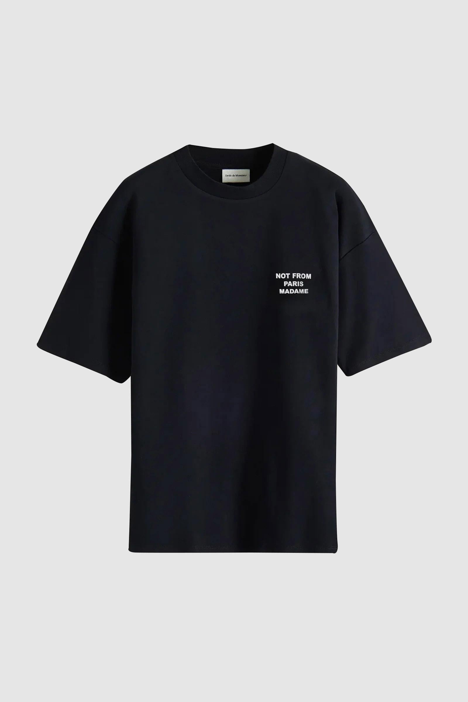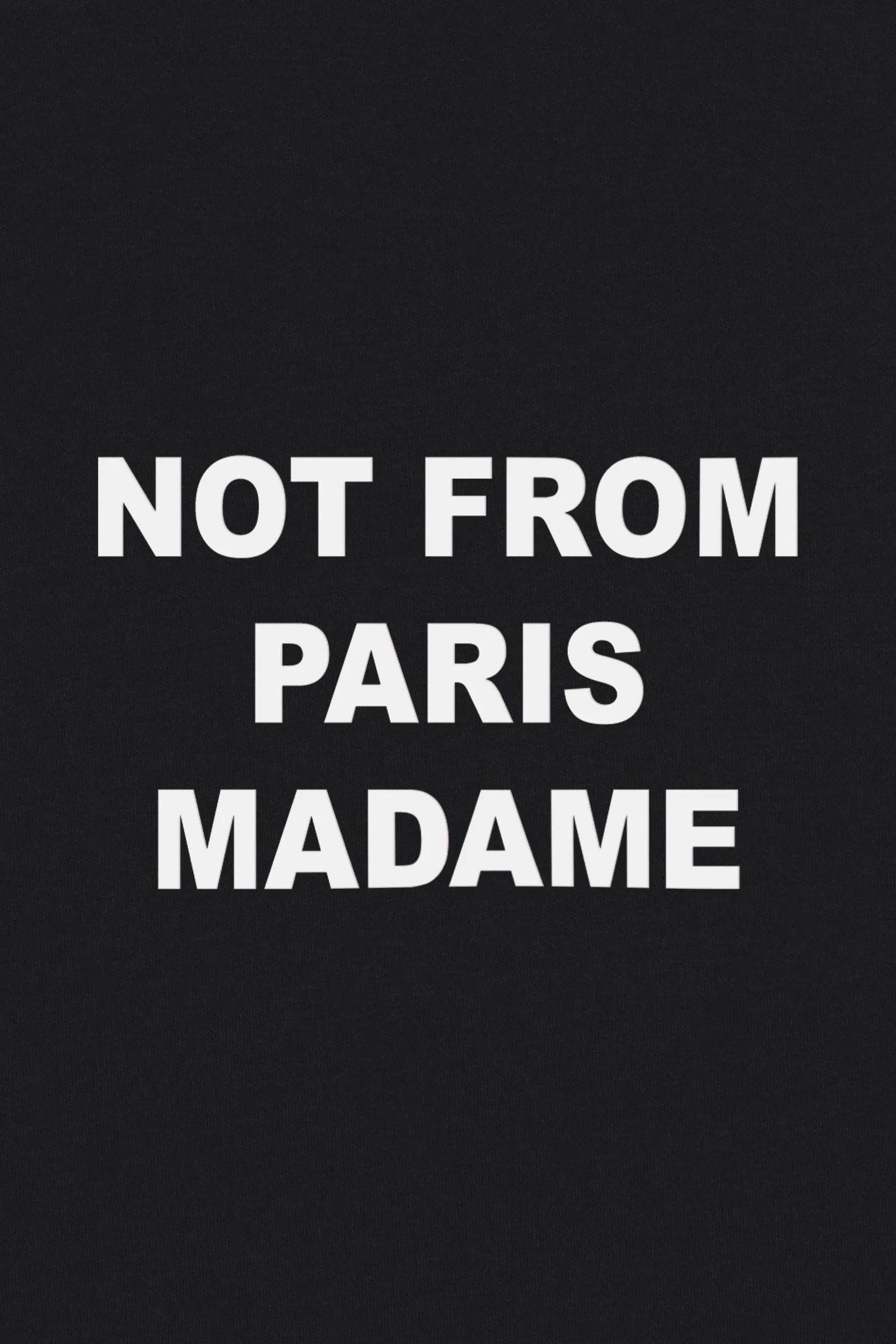 T-shirt con slogan. Realizzata in tessuto interlock di cotone al 100%, questa t-shirt nera presenta uno scollo a costine e lo slogan "Not from Paris Madame" stampato davanti e dietro.