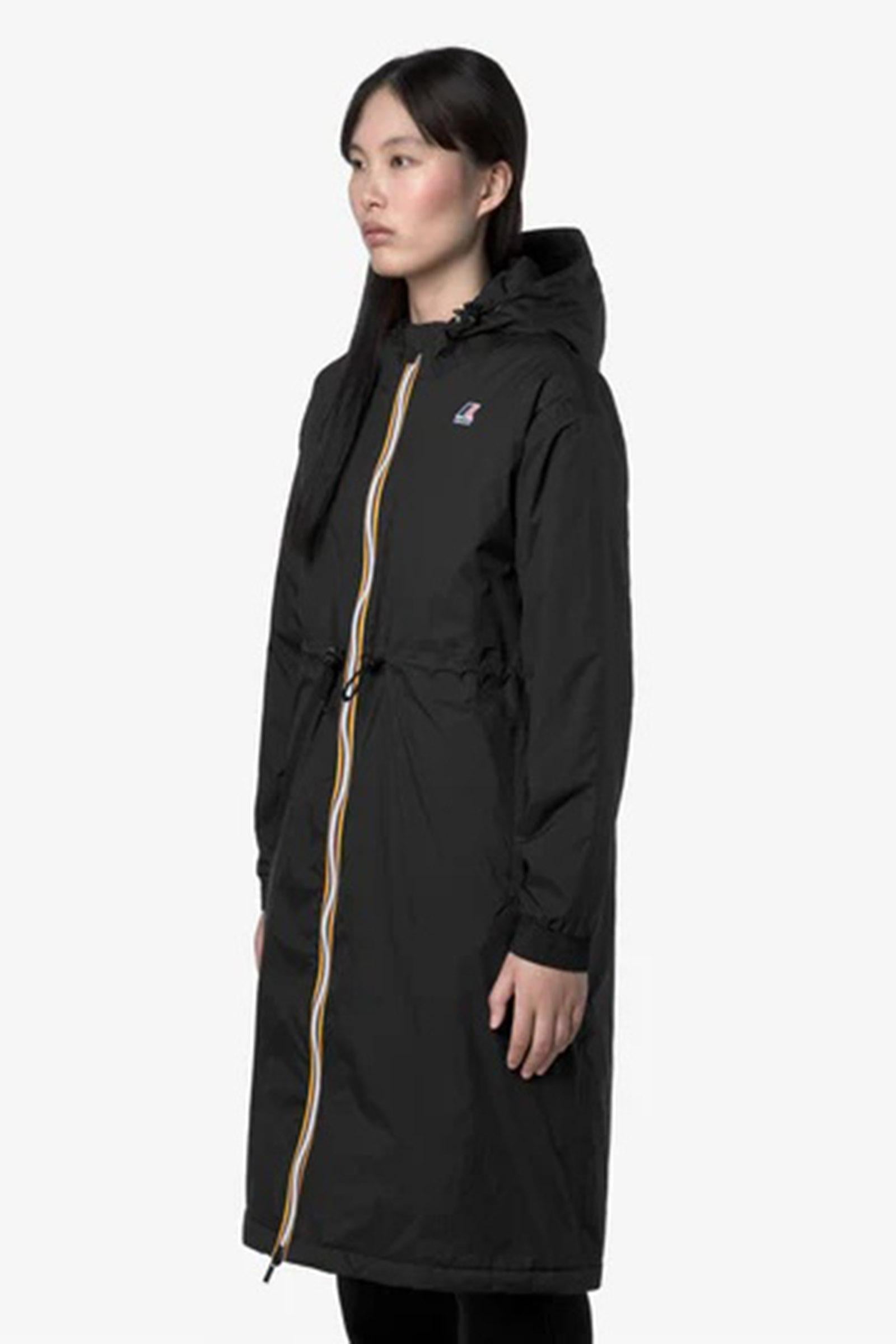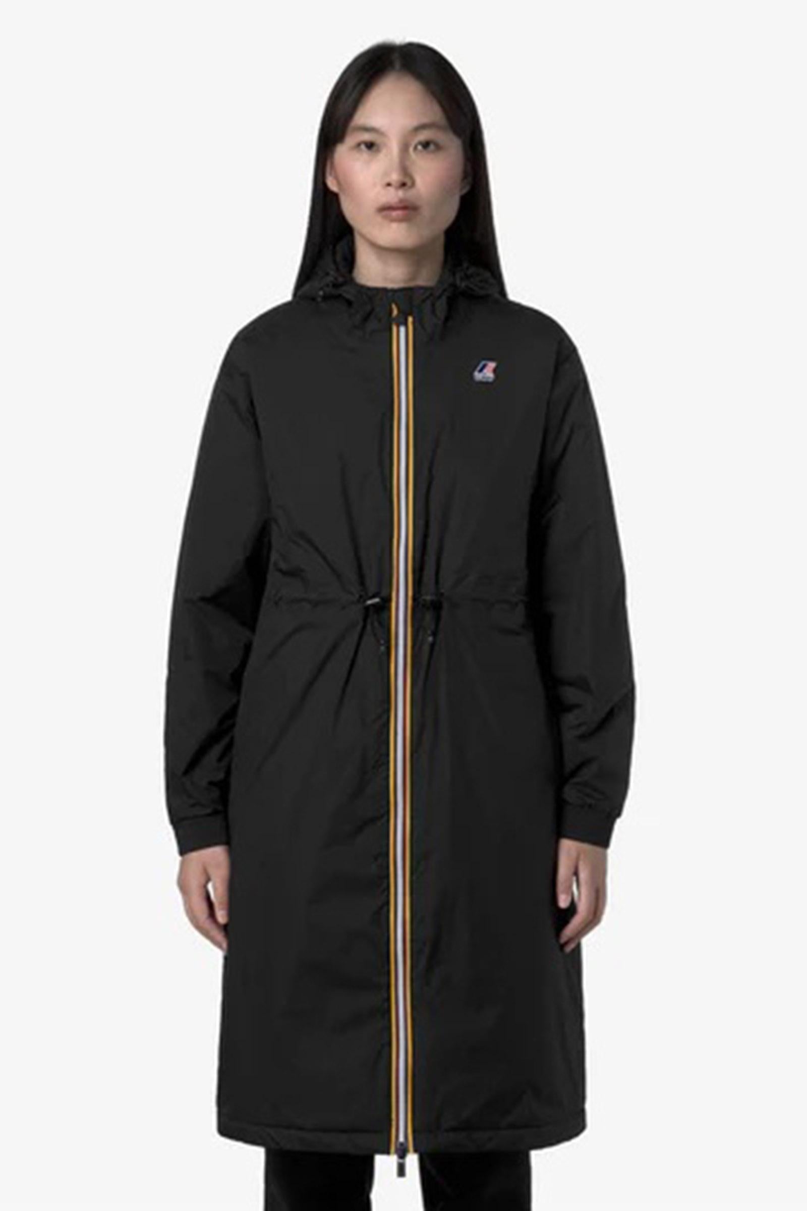 Delia è una giacca lunga da donna, progettata per le mezze stagioni. Realizzata in tessuto micro ripstop, 100% riciclato, ancora più resistente all'acqua e traspirante, ha un design sportivo ed essenziale con coulisse in vita per un fit che segue la silhouette. L'interno presenta un'imbottitura leggera in PrimaLoft®, una fibra riciclata ricavata dal poliestere e altamente isolante, che protegge senza ingombrare.