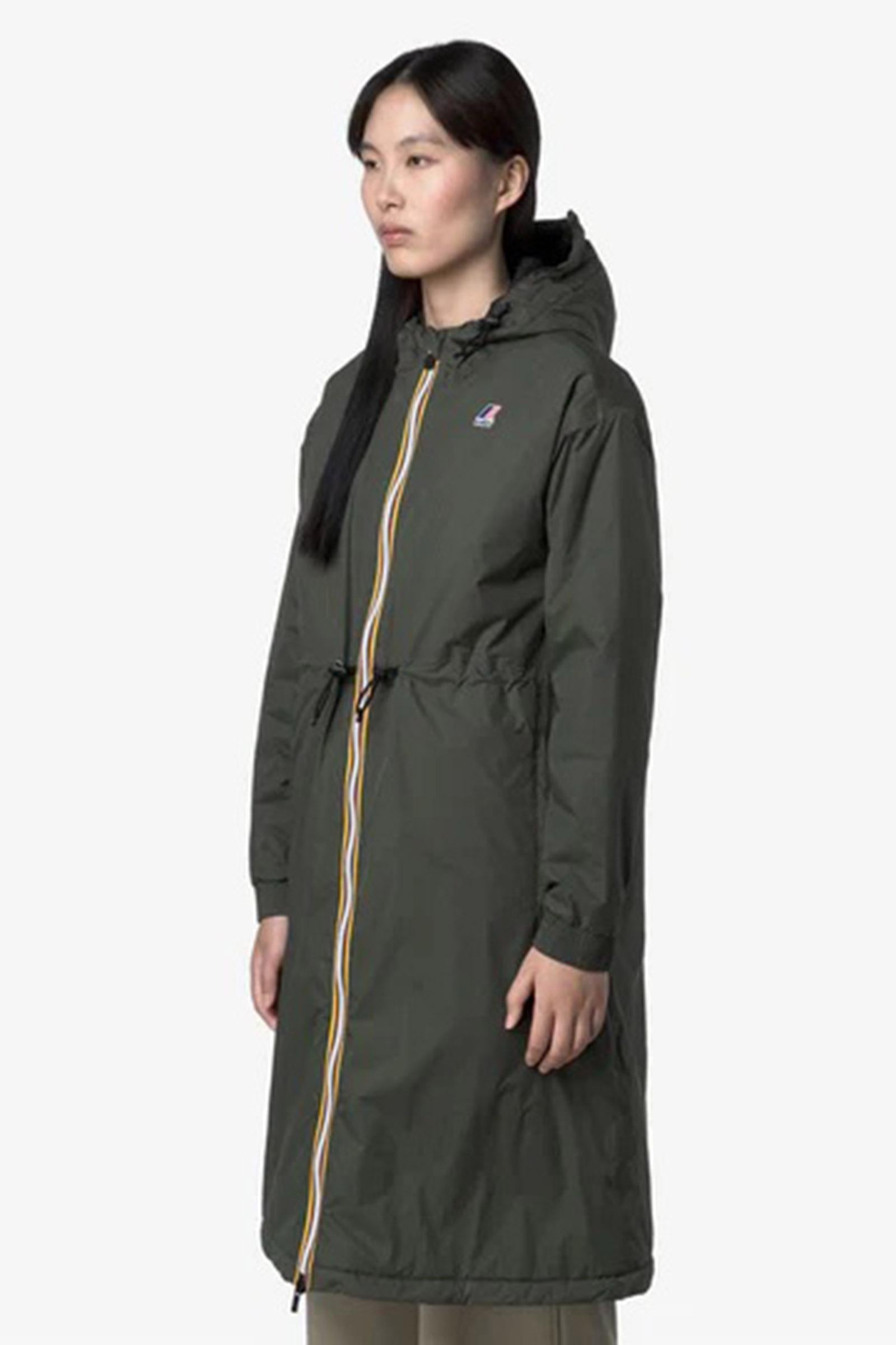 Delia è una giacca lunga da donna, progettata per le mezze stagioni. Realizzata in tessuto micro ripstop, 100% riciclato, ancora più resistente all'acqua e traspirante, ha un design sportivo ed essenziale con coulisse in vita per un fit che segue la silhouette. L'interno presenta un'imbottitura leggera in PrimaLoft®, una fibra riciclata ricavata dal poliestere e altamente isolante, che protegge senza ingombrare.