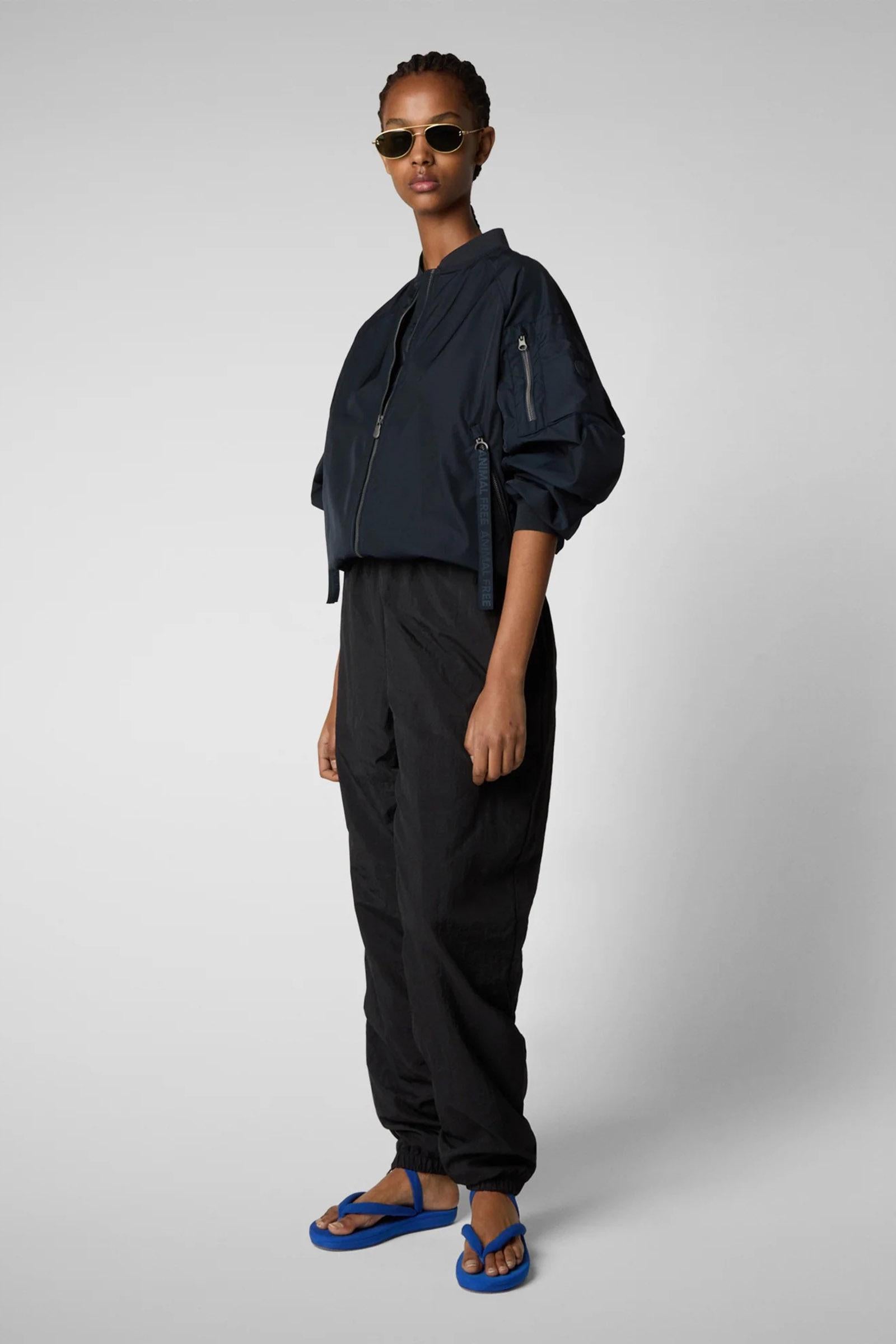 Perfetto mix di street e utility il bomber Lil si distingue per il fit oversize e le tasche con tirazip in grosgrain stampato ANIMAL FREE. Dotato di tasche anche sulle maniche raglan extra ampie e arricciate si chiude con una zip centrale a doppio cursore. Il logo tondo sulla manica sinistra e i tiretti custom metallizzati completano il modello con i caratteristici dettagli Save The Duck.Composition: 100% recycled polyester
