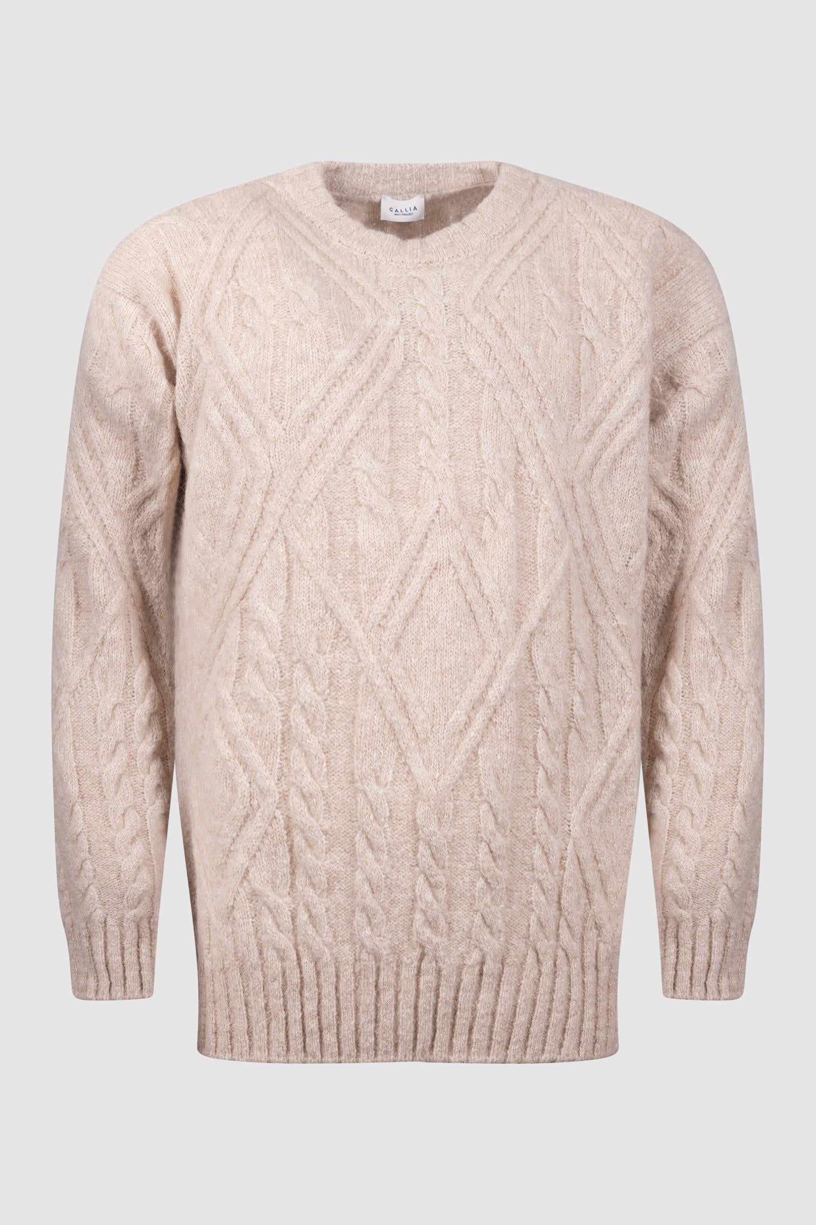 Maglia Gallia dallo stile caldo e raffinato, realizzata in lana e alpaca con una morbida lavorazione a trecce geometriche.