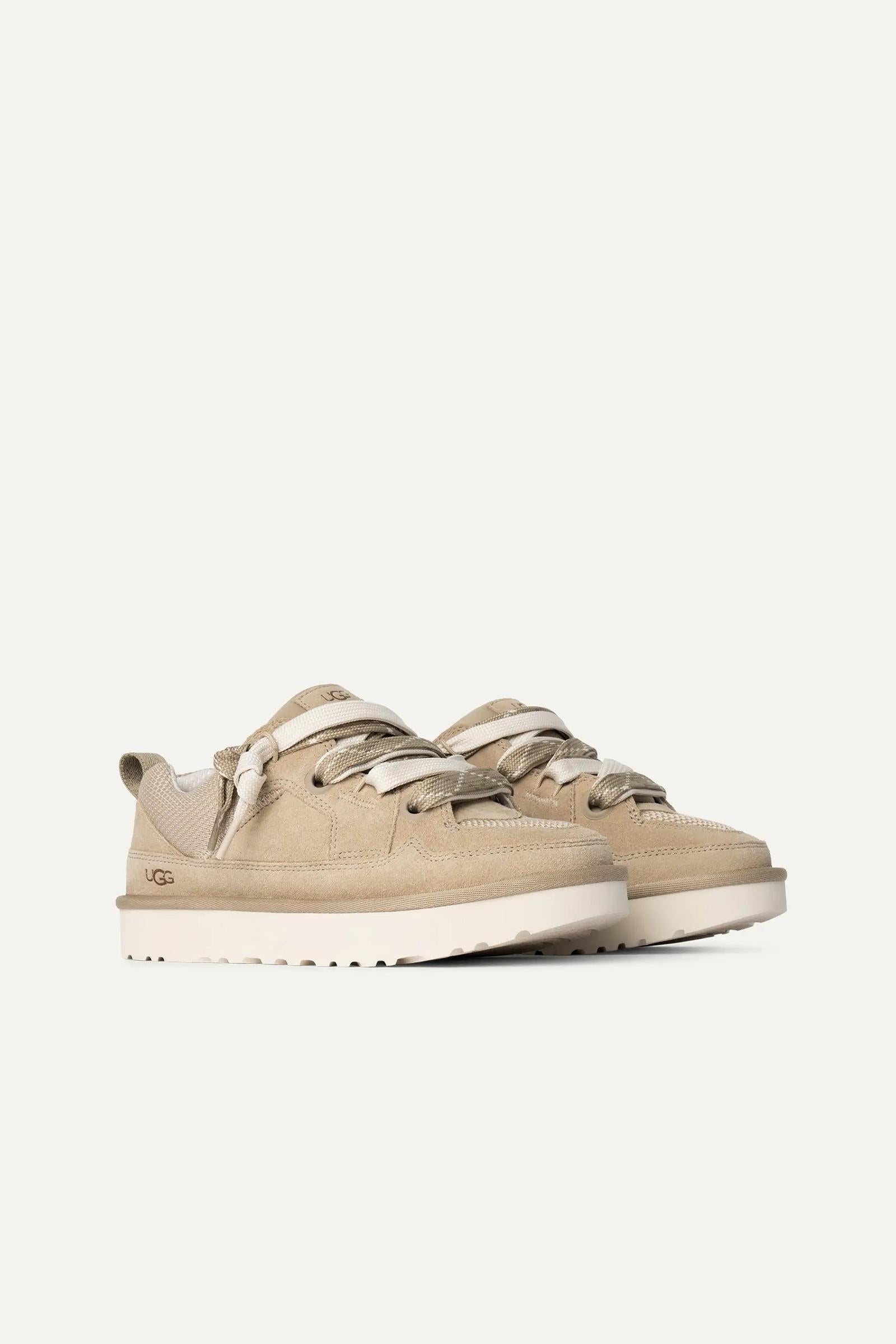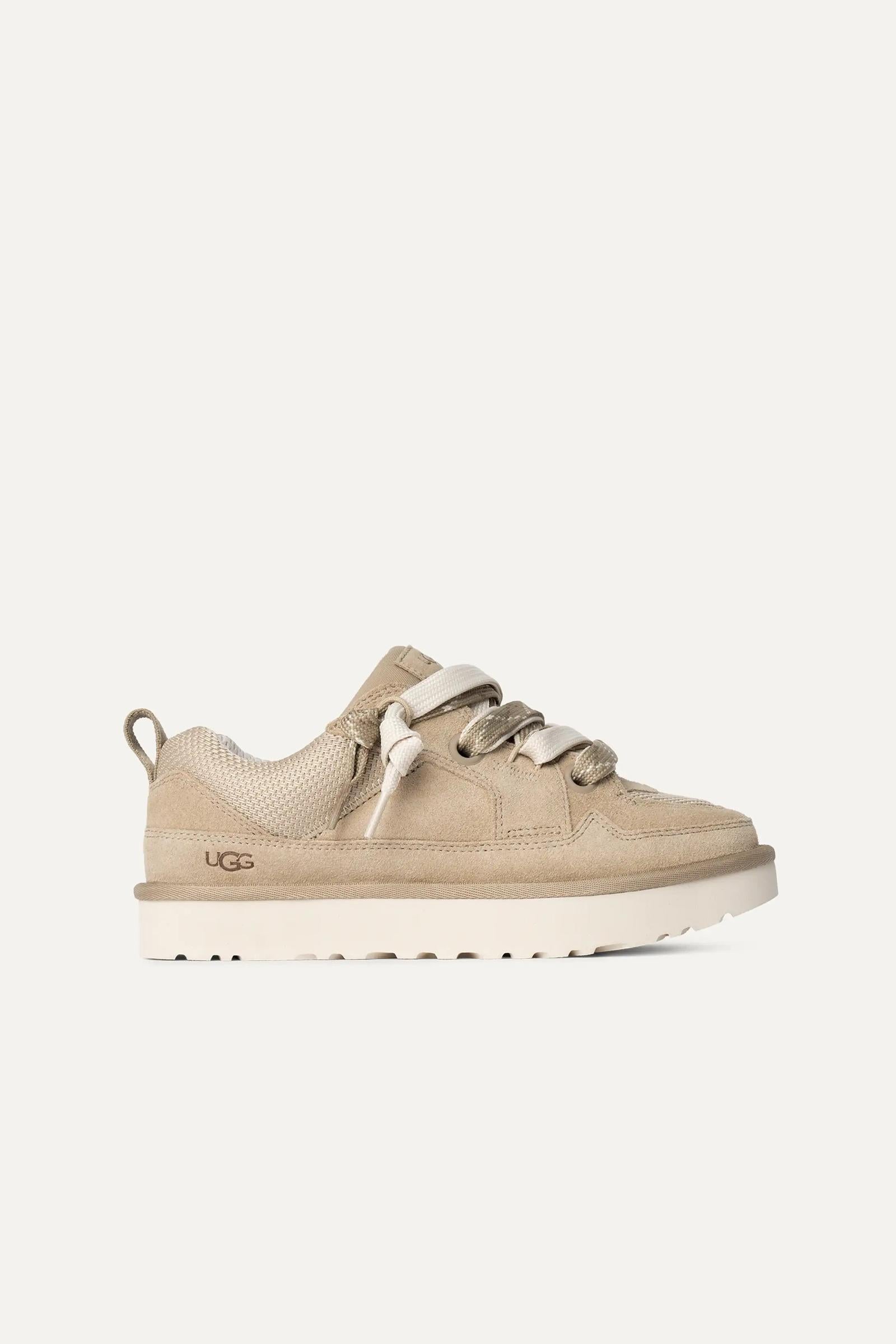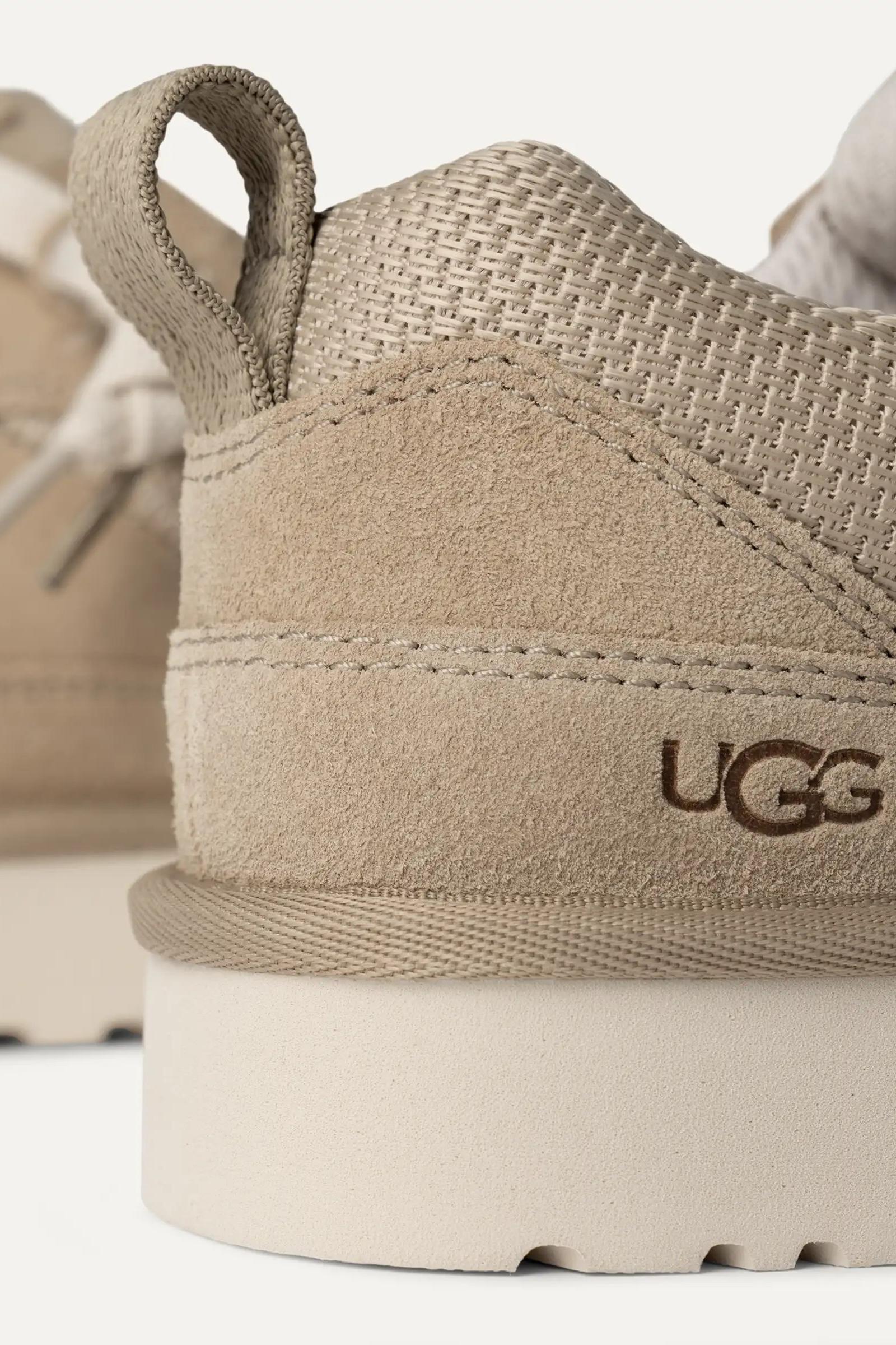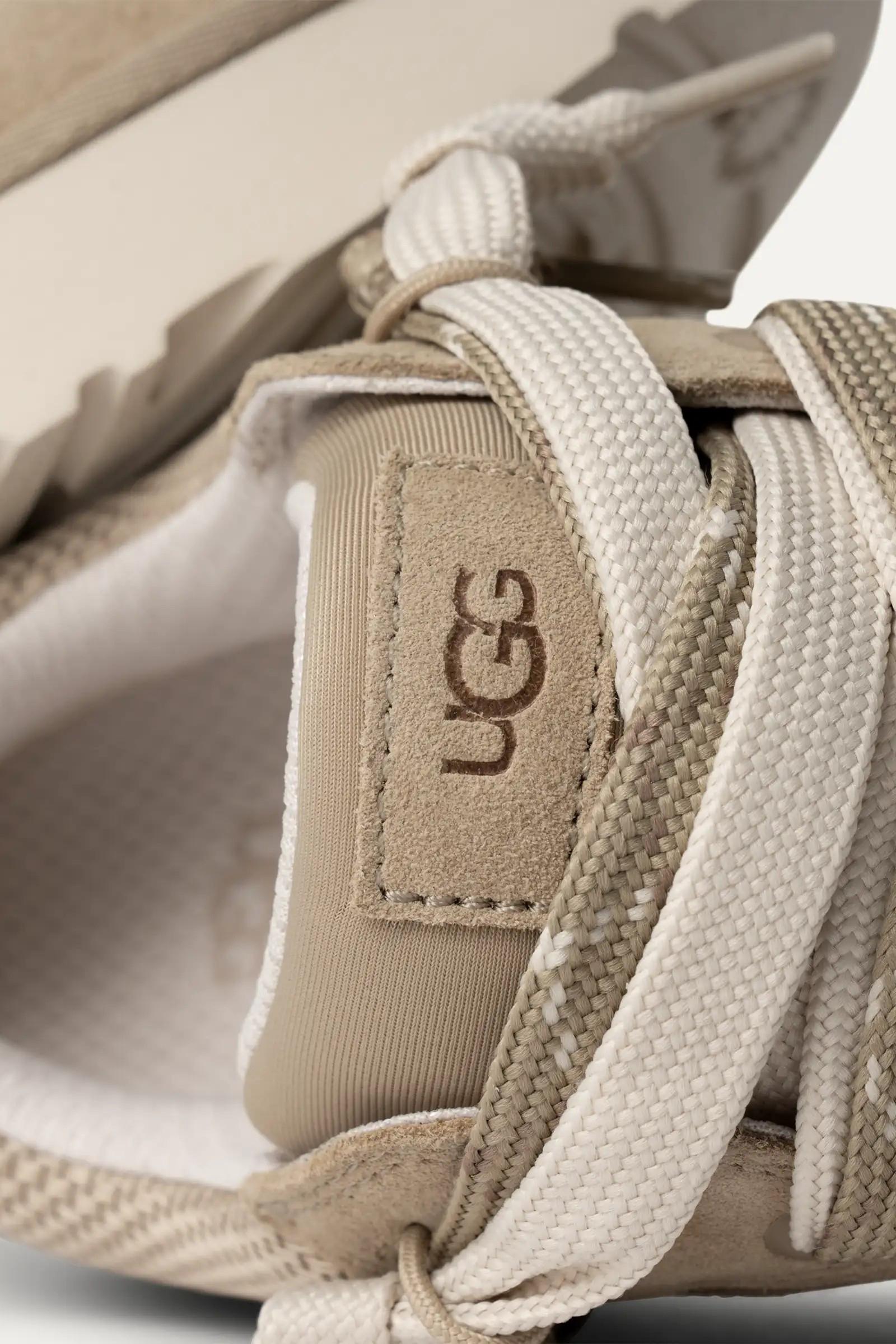 Tomaia in camoscio e rete di tela intrecciata riciclata, cinturino sul tallone in tessuto resistente, applicazione con logo UGG®, linguetta oversize imbottita - Laccio piatto bicolore, sistema con doppia allacciatura - Fodera in tessuto realizzato con fibre di poliestere riciclato (100%) - Soletta in tessuto di poliestere riciclato (100%) - Suola interna in EVA - Suola in EVA da canna da zucchero - Logo UGG® in rilievo.