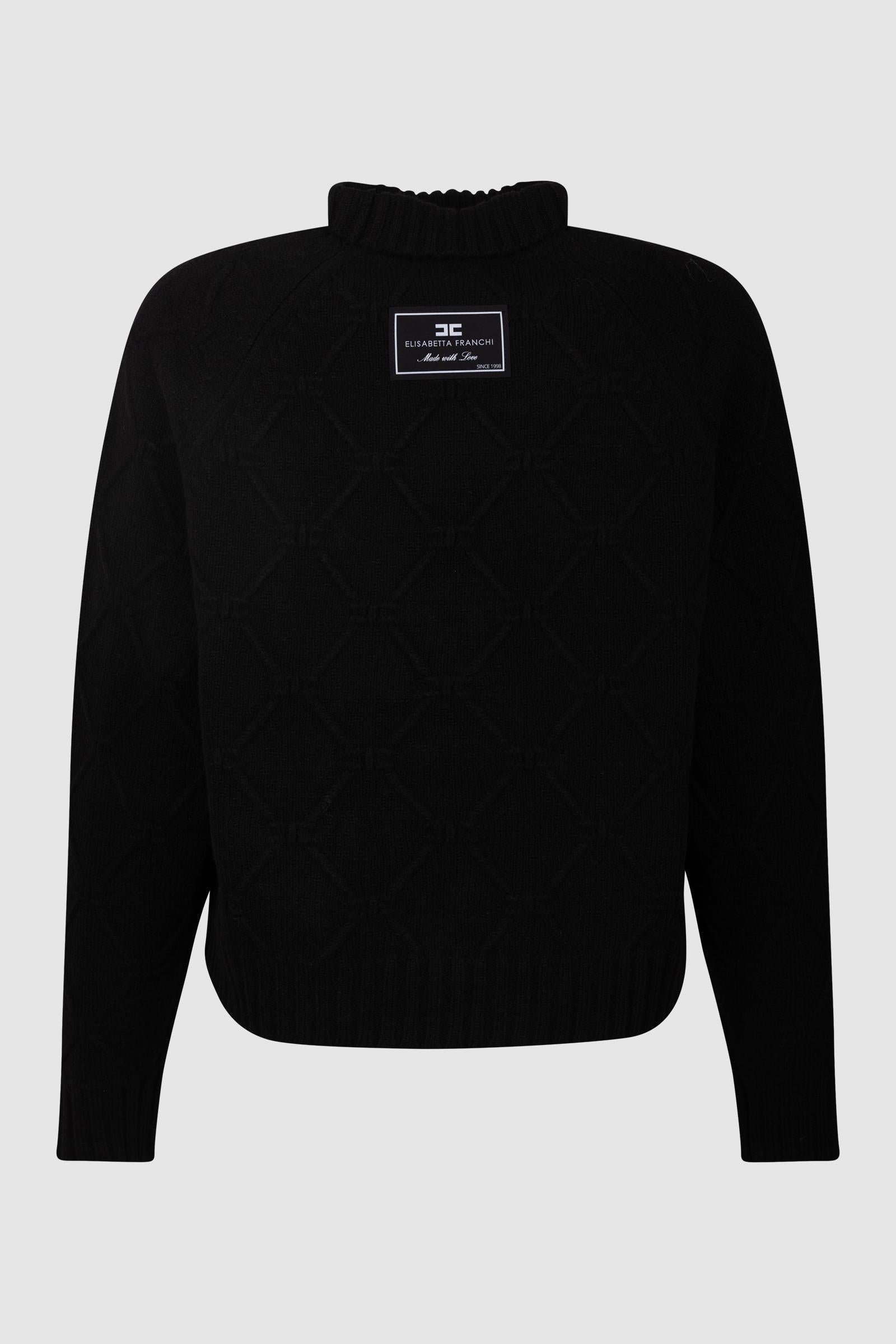 Un capo intramontabile che unisce stile, comfort e raffinatezza. Questo maglione nero da donna presenta un elegante collo alto e una raffinata lavorazione jacquard a rilievo tono su tono, che dona tridimensionalità e carattere al capo, pur mantenendo un look sobrio e versatile.
