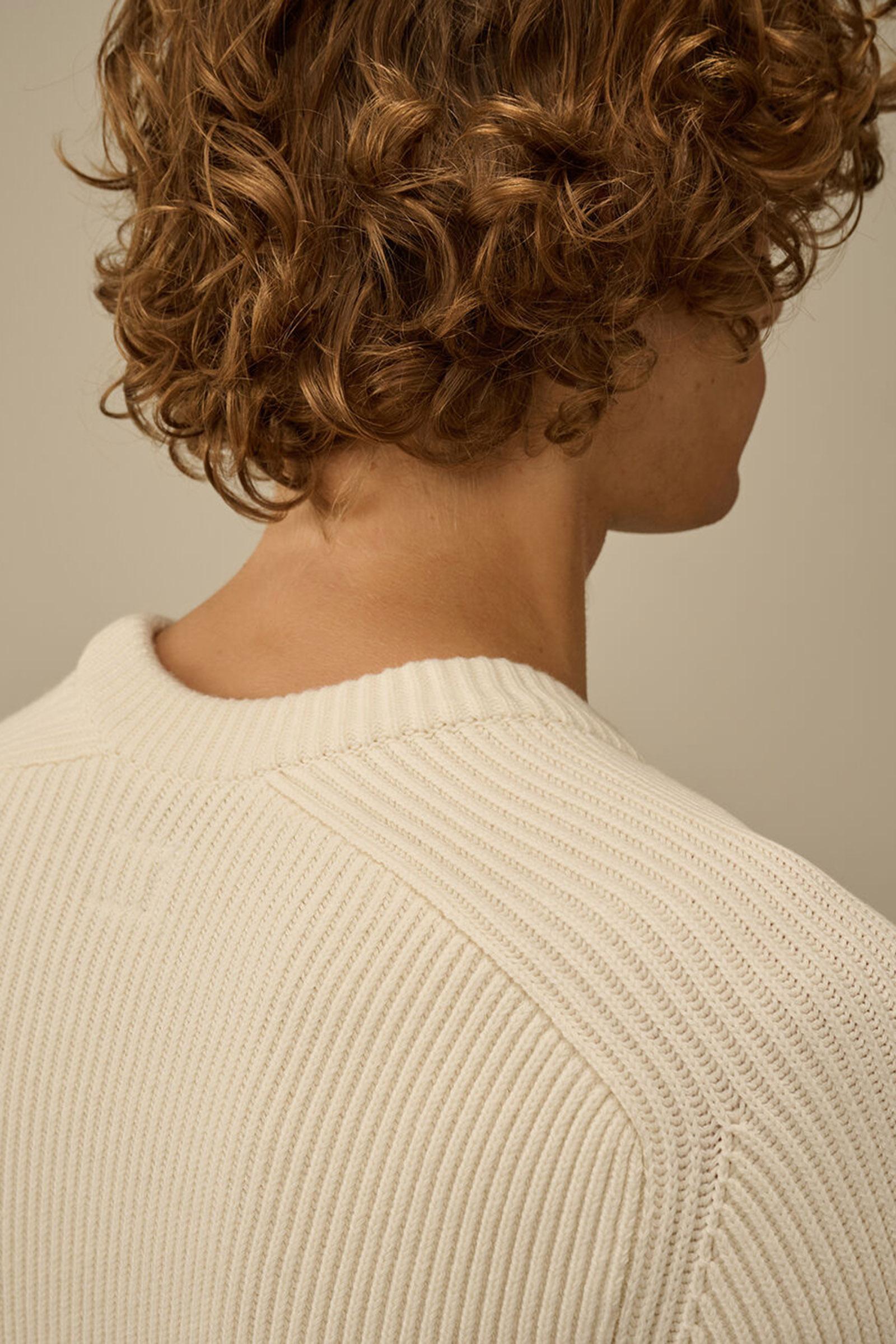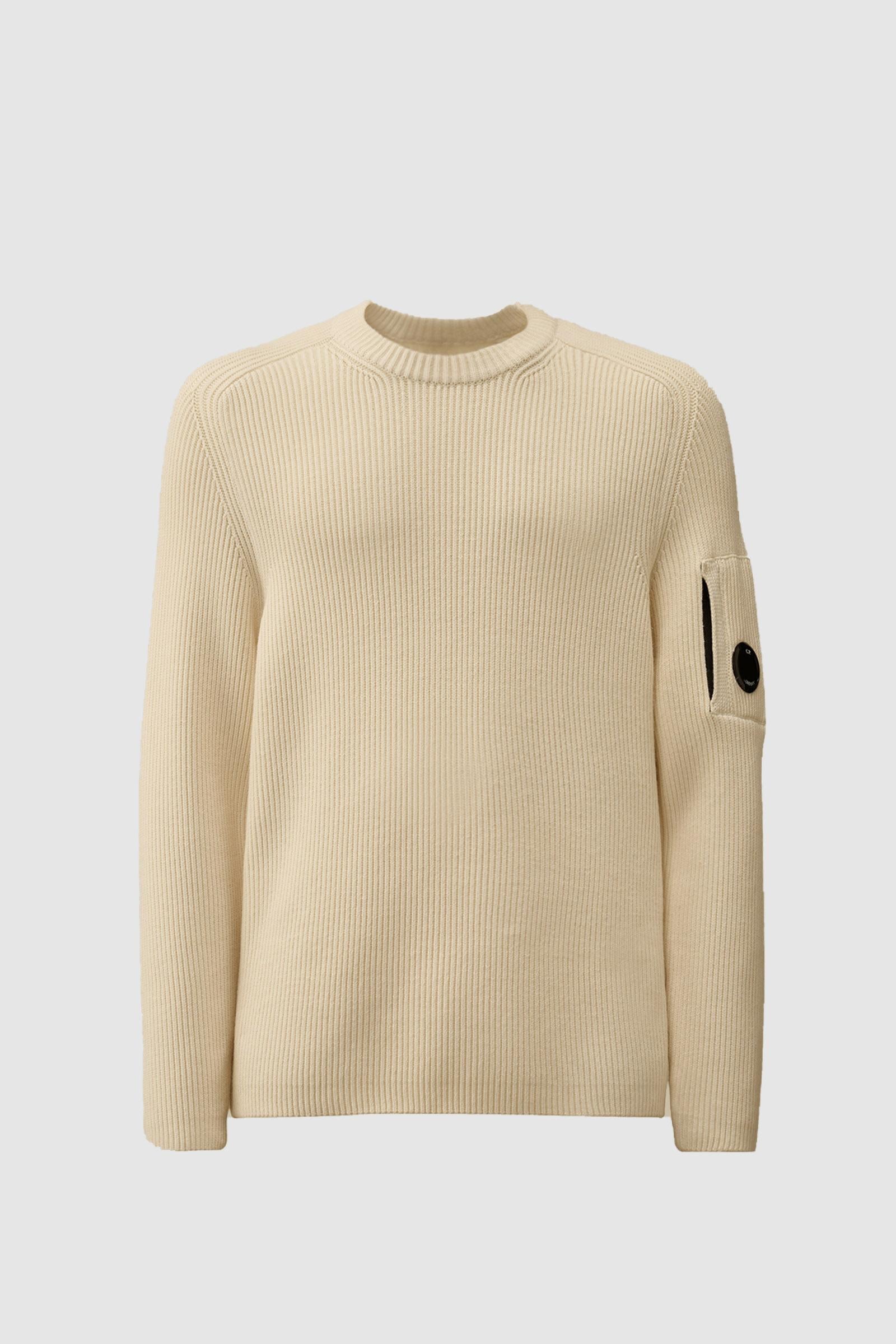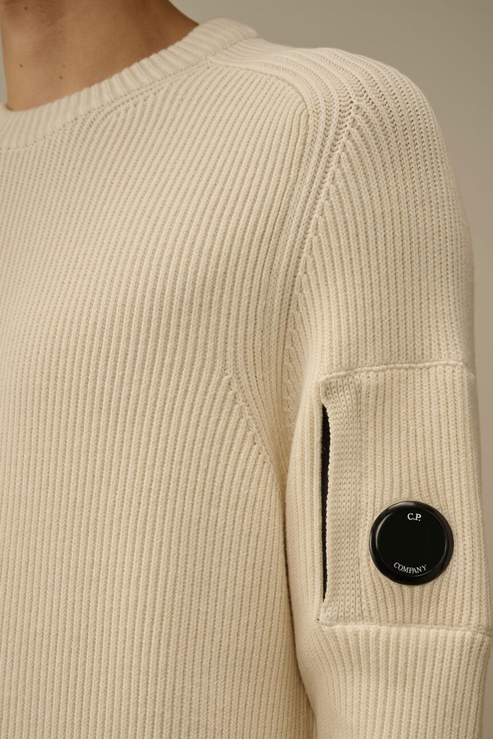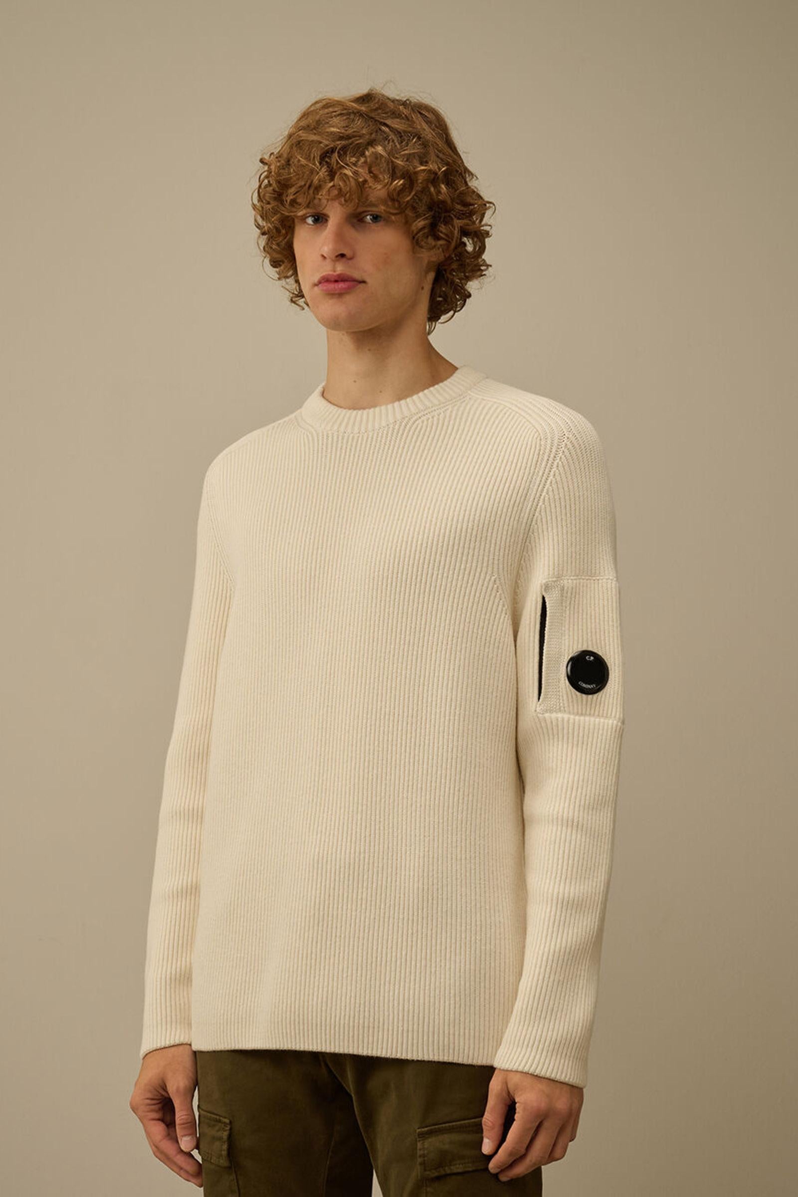 Maglione girocollo realizzato in misto cotone e nylon stretch con lavorazione a coste inglesi. Il tessuto garantisce comfort e flessibilità. Il capo presenta l'iconica Lente di C.P. Company. Finezza 7. Regular fit.