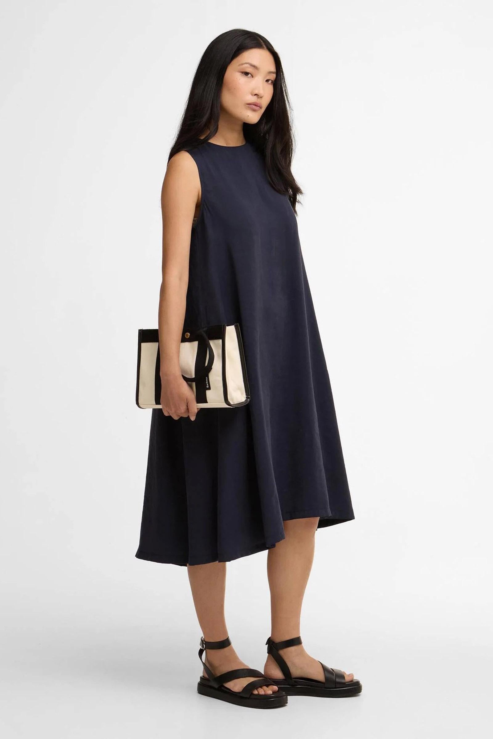 Il maxi abito Salthill di Barbour sfoggia una silhouette classica senza maniche, pensata per offrire un look elegante ma disinvolto. Caratterizzato da uno scollo arrotondato e da pratiche tasche con apertura laterale, il capo offre una comoda vestibilità oversize ed è caratterizzato da delicati dettagli arricciati sul retro del collo. Impreziosito da un'apertura a goccia con bottone logato e una sottile barretta identificativa sul retro, quest'abito è perfetto per un outfit casual ma sofisticato.Esterno: 85% modal, 15% poliestere