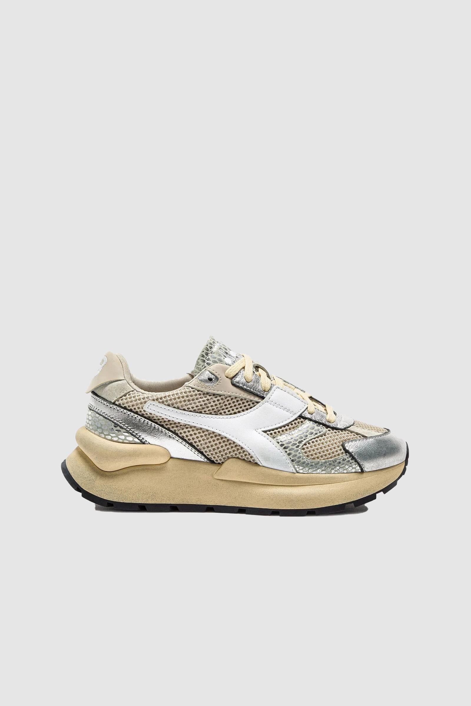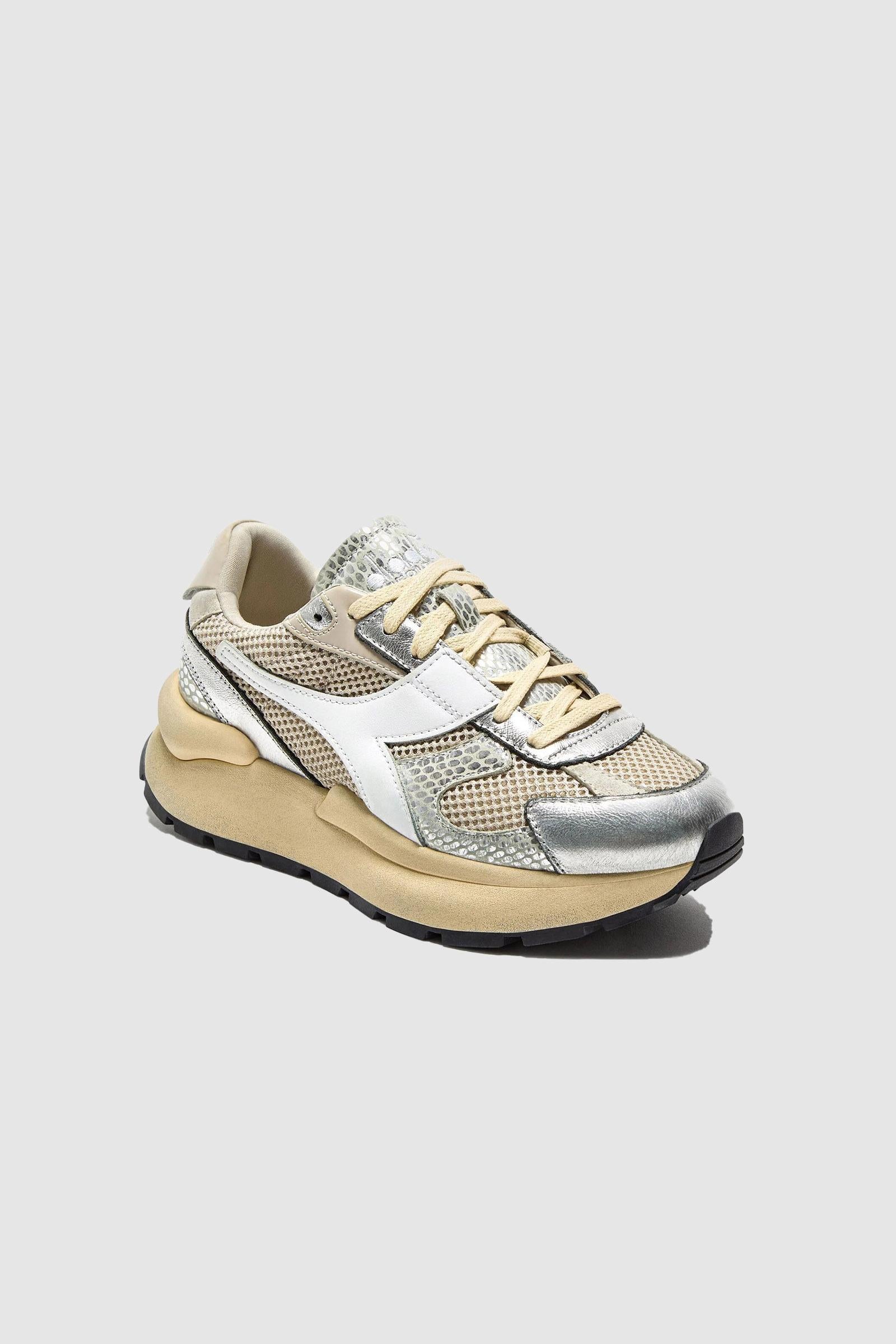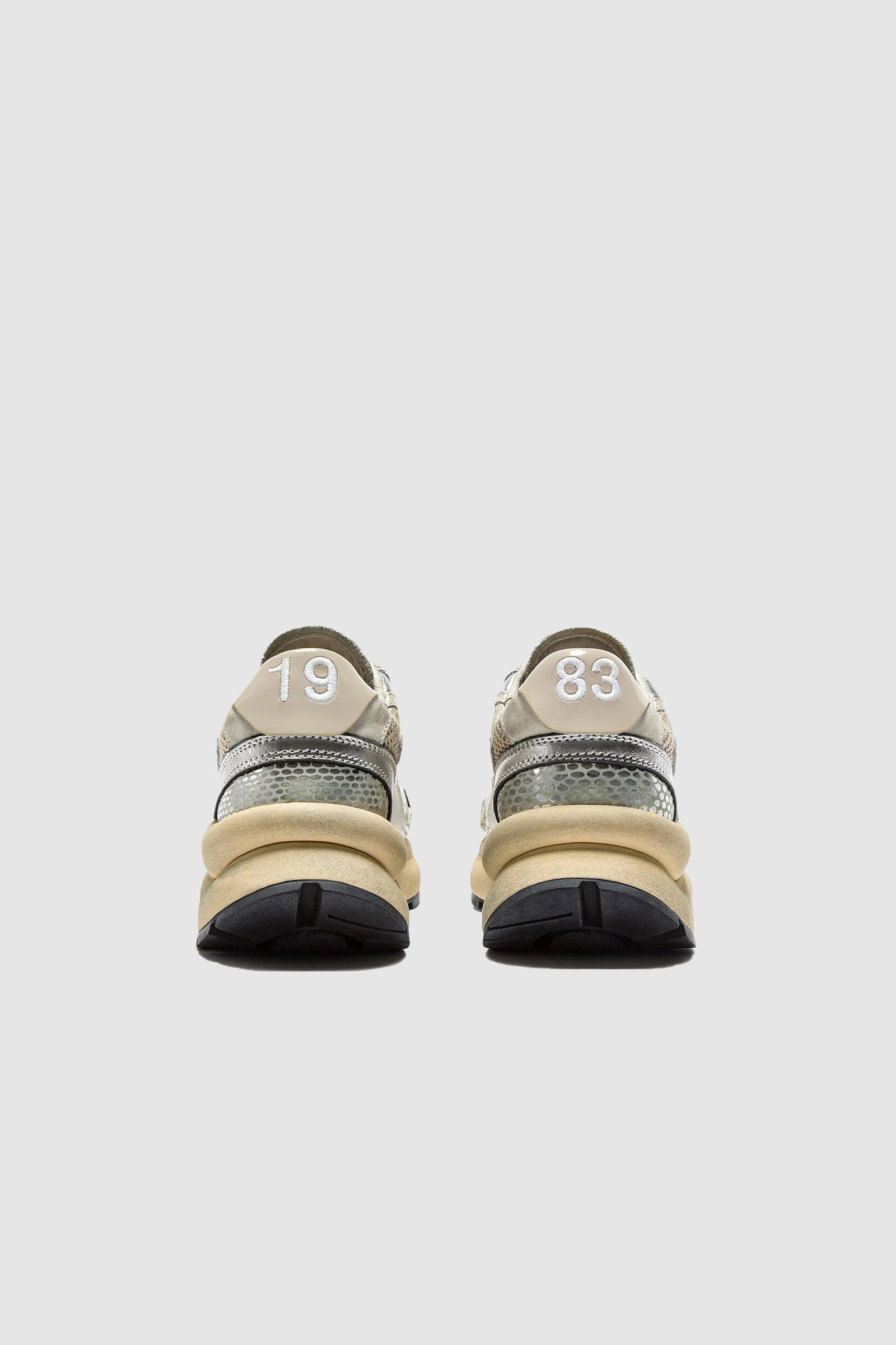 Un mesh leggerissimo con effetto shiny fa risaltare tutta la tomaia, mentre la pelle metallizzata crea un pattern a serpente impossibile da ignorare. Lavorata con il trattamento stone wash e wax, per combattere la tua nostalgia per le scarpe sportive anni '70.