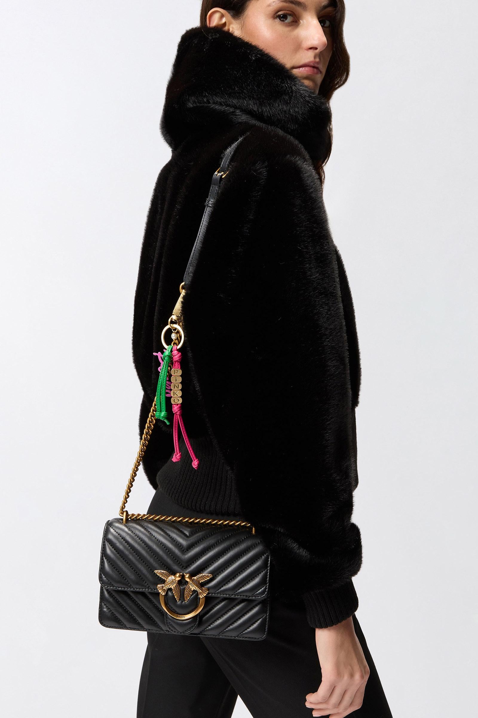 Mini Love Bag One in nappa trapuntata con motivo chevron. La chiusura è completata dall'iconica fibbia in metallo Love Birds Diamond Cut in metallo. L'interno è foderato in microfibra scamosciata e comprende tramezza chiusa con zip e tasca a parete in pelle. La tracolla combina la classica catena rotonda al pratico spallaccio in pelle regolabile.Pelle: PELLE DI PECORA 100% - Tessuto Esterno: PELLE DI VACCA 92% POLIURETANICA 8% - 1° Tessuto Esterno: NYLON 50% POLIURETANICA 50% - 2° Tessuto Esterno: NYLON 50% POLIURETANICA 50% - 1° Fodera: COTONE 100%
