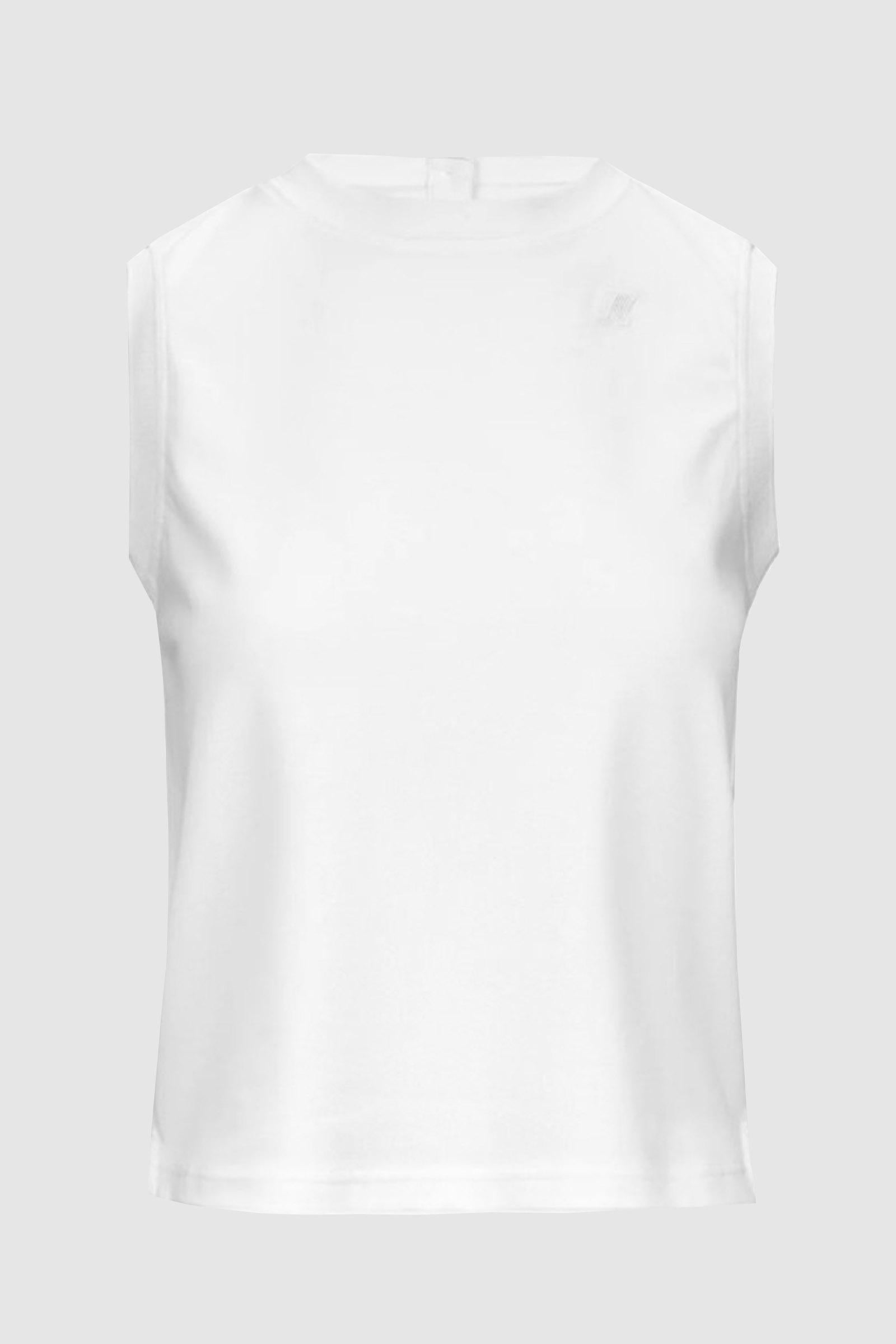 Mosa è una t-shirt senza maniche da donna in cotone piquet elasticizzato, un capo dall'appeal sportivo e versatile perfetto per le occasioni leisure e il viaggio. Questa t-shirt smanicata presenta girocollo e bordi giromanica a costine, mentre sul retro è presente una chiusura con bottoni in madreperla.