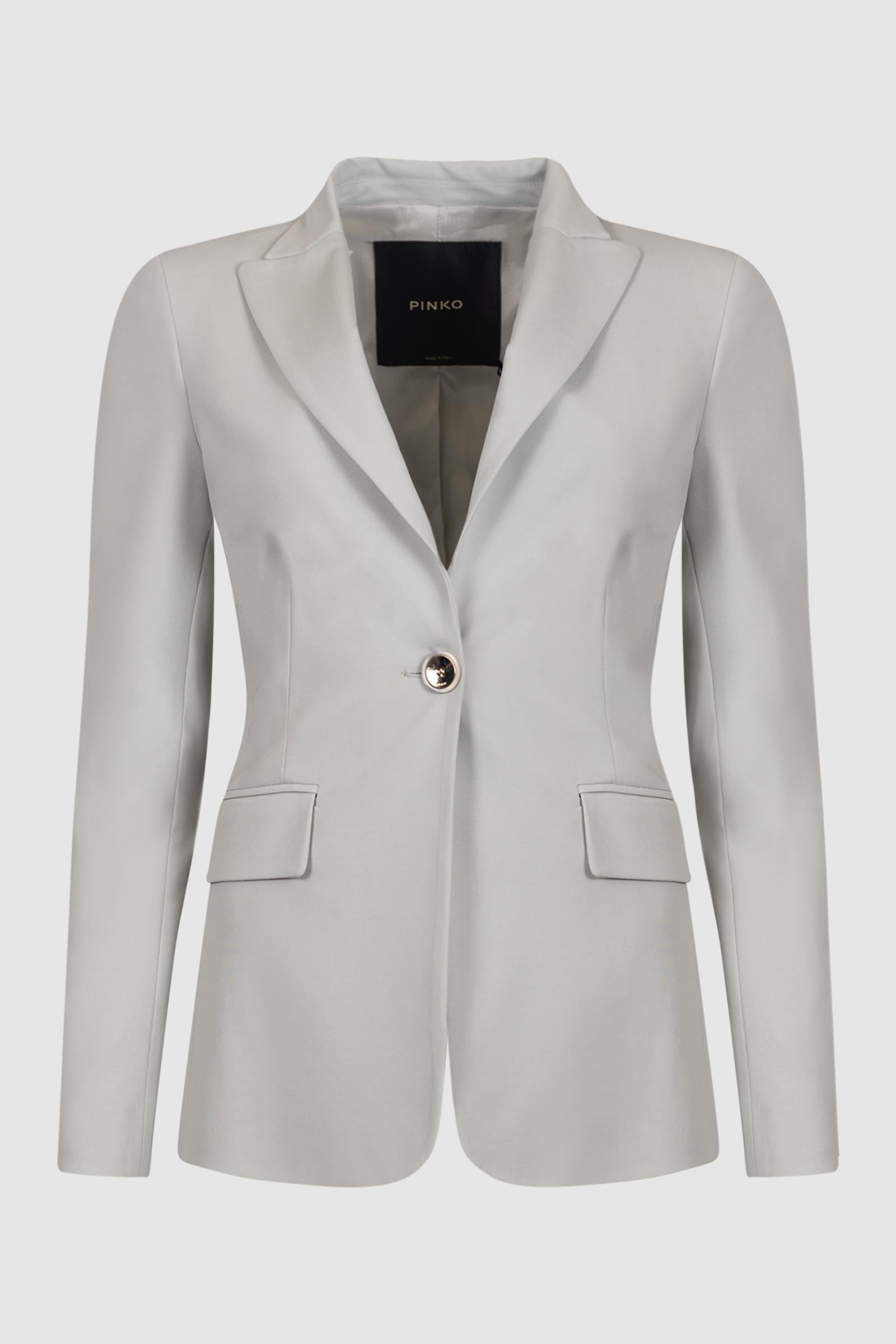 Giacca dalla linea sagomata, un po' più aderente in vita, realizzata in tessuto tecnico di misto viscosa stretch lavorato a punto stoffa dalla mano uniforme e leggermente crespa. Il capo, foderato per un maggior comfort durante l'indosso, presenta i dettagli classici dei blazer, come il collo con revers a lancia e le tasche laterali con patta, ed è arricchito da eleganti bottoni con logo lettering PINKO: uno più grande in corrispondenza della chiusura monopetto e quattro più piccoli sul fondo manica Abbina questa giacca ai pantaloni coordinati per un total look elegante, oppure indossala con un paio di pantaloni più casual per un outfit spezzato.Tessuto Esterno: VISCOSA 59% NYLON 36% ELASTAN 5% - Fodera: ACETATO 67% POLIESTERE 33%.Non lavare - Non trattare con cloro - Non usare asciugatrice - Stirare a temperatura massima 110 °C - Lavare delicatamente a secco in tetracloroetilene - Coprire le applicazioni durante il lavaggio con specifiche protezioni