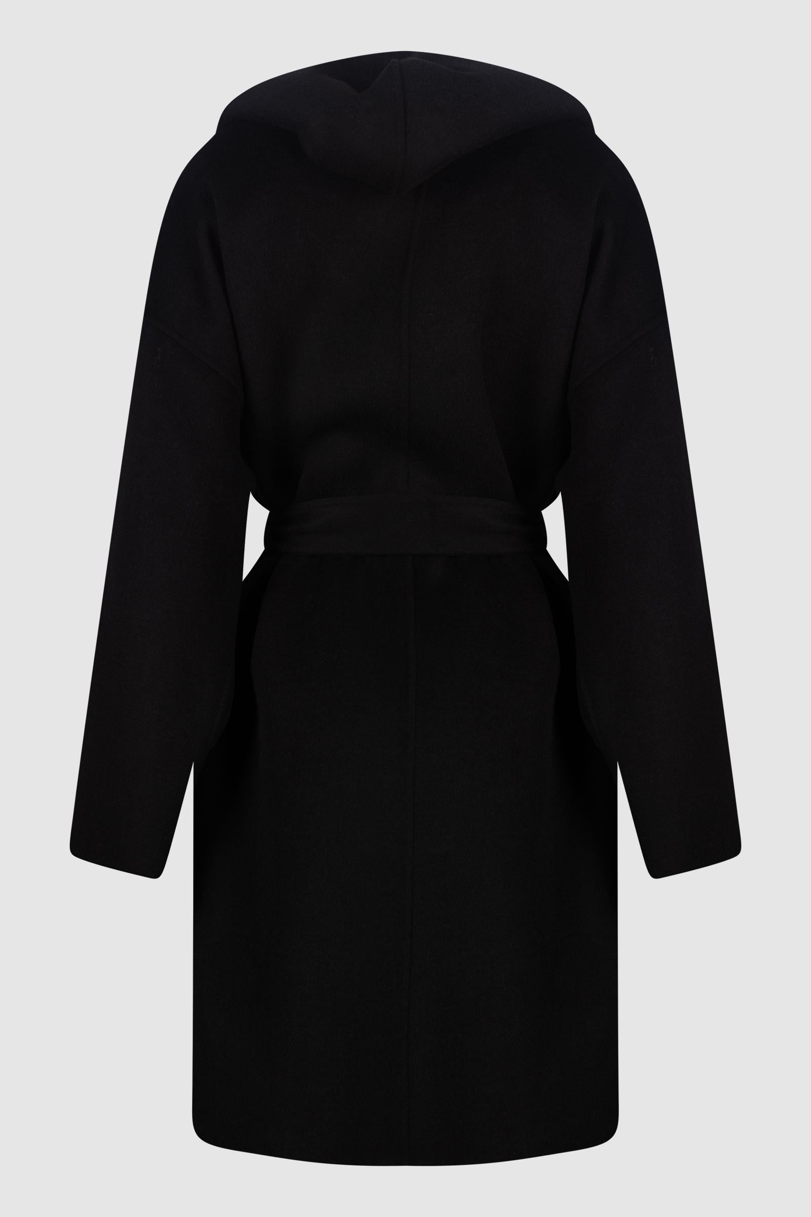 Cappotto Park Place dal design minimal e raffinato, caratterizzato da una linea fluida con cappuccio e cintura in vita.