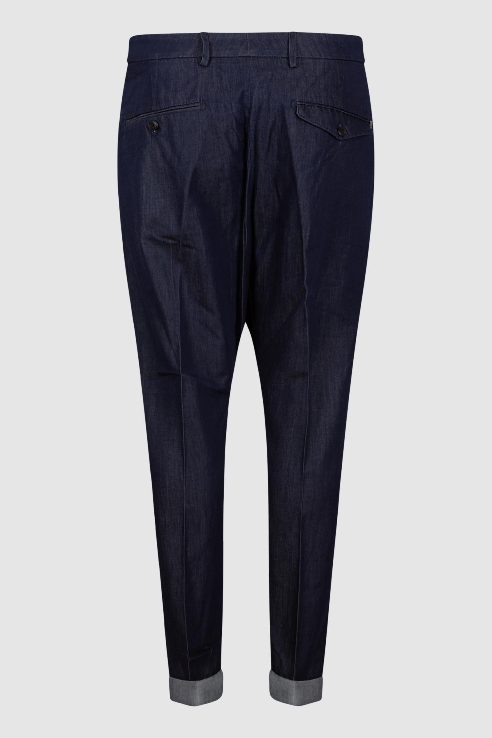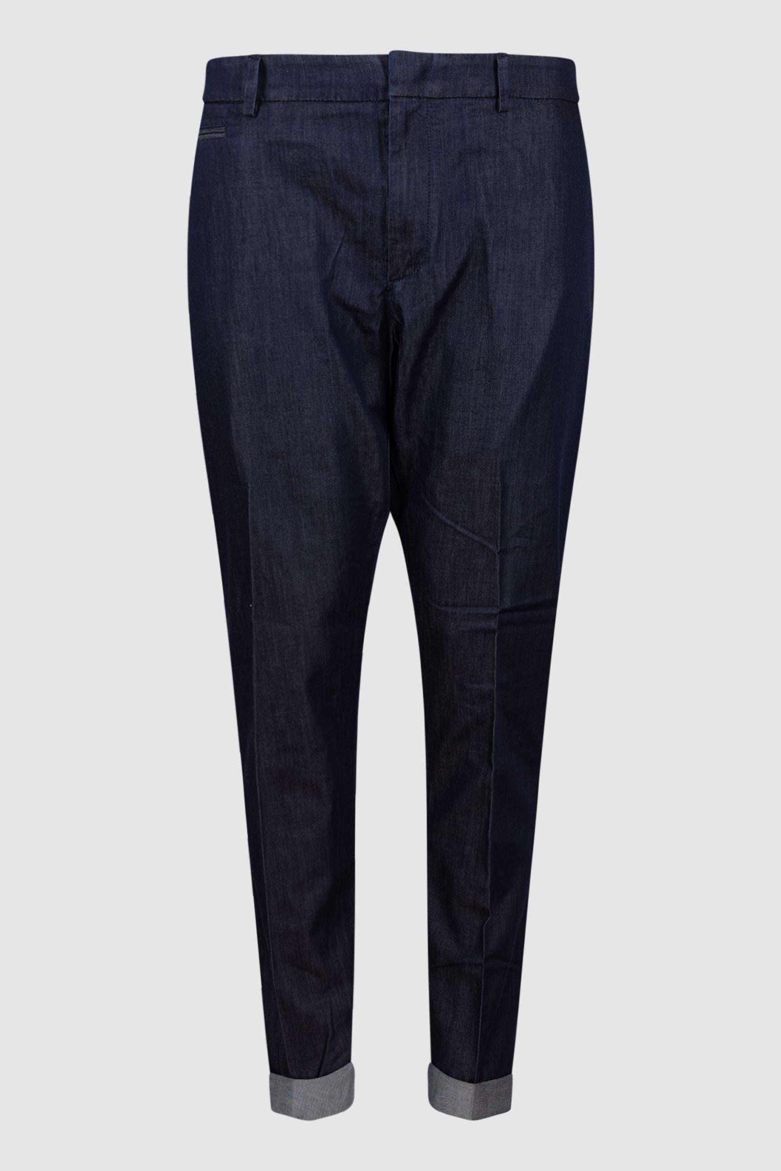 Pantalone lavaggio scuro,scende slim verso la caviglia,la chiusura è composta da un bottone in vita.