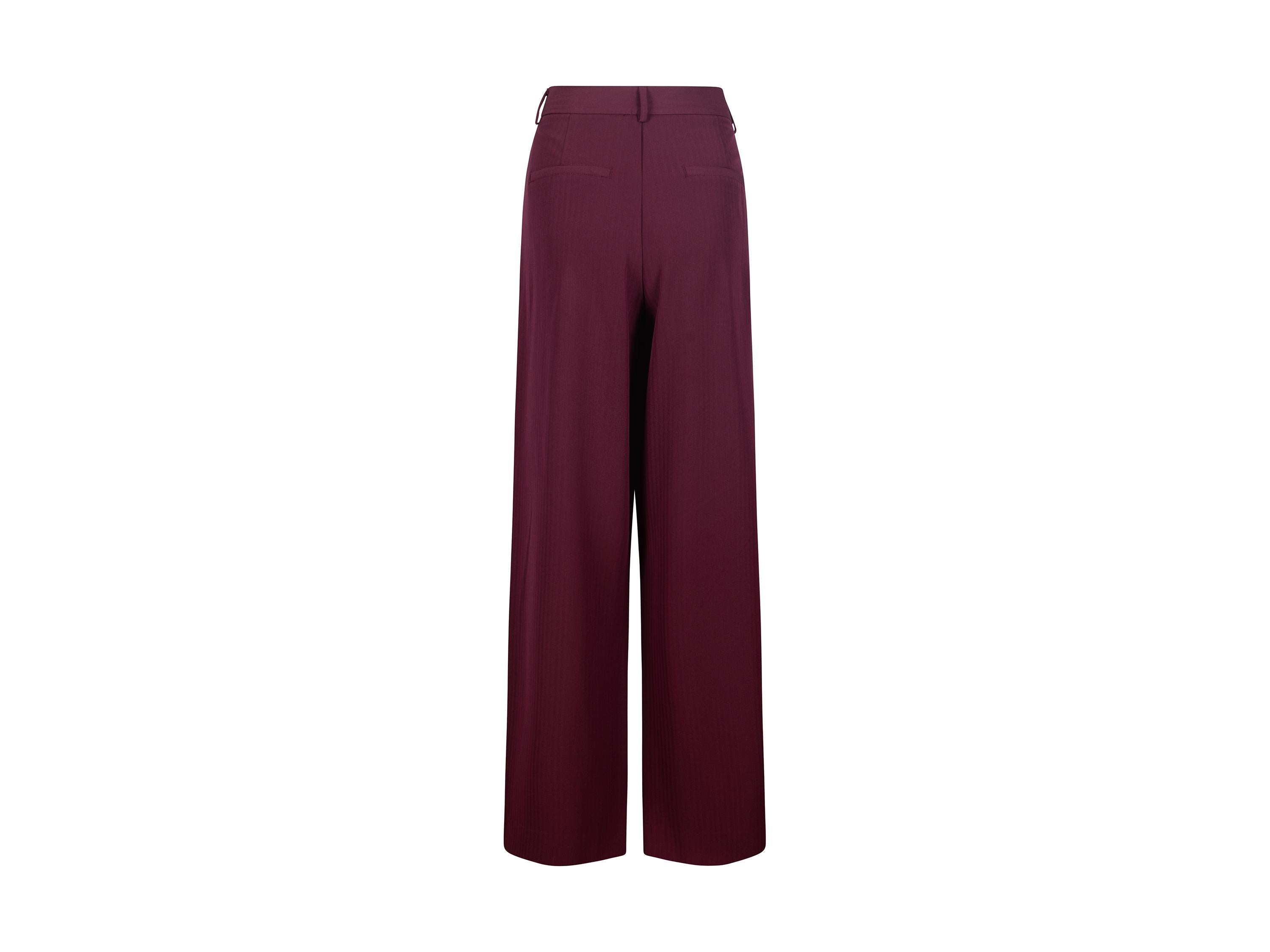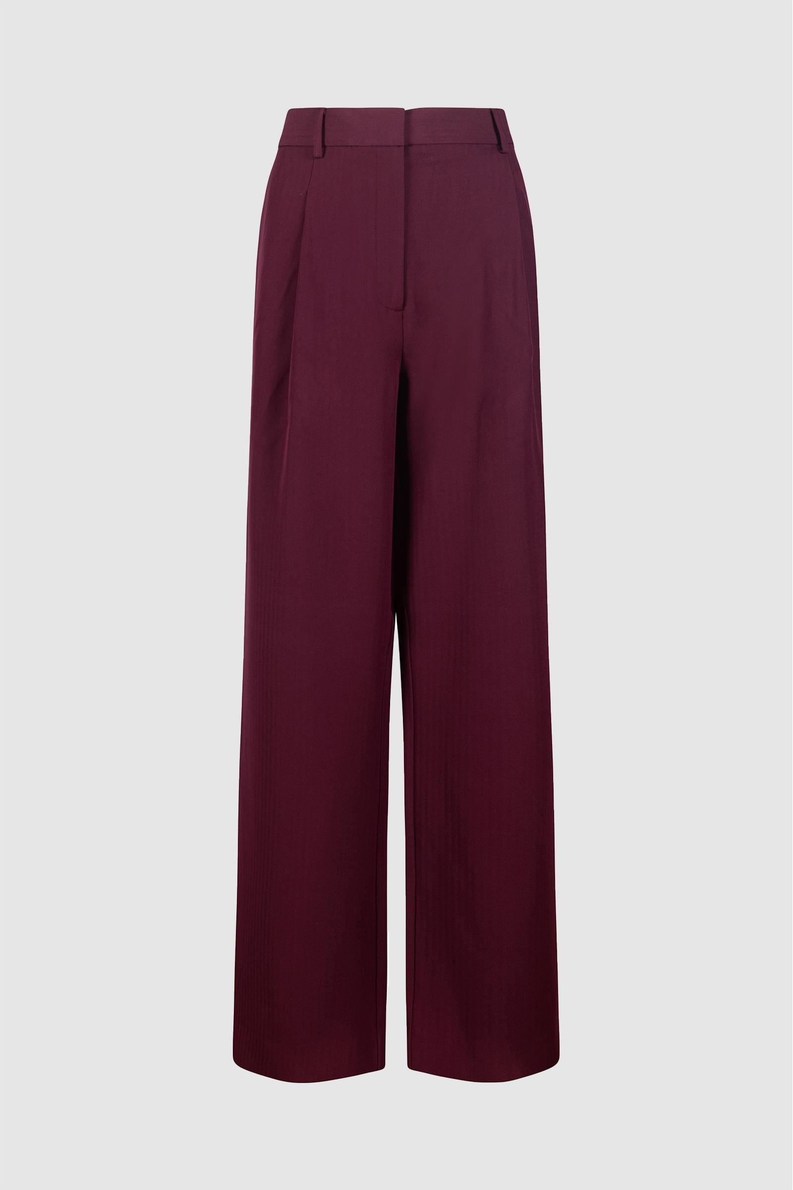 Il taglio ampio e fluido li rende versatili e ideali sia per outfit business che per look più casual chic, abbinati a camicie, maglioni o blazer. La tonalità bordeaux intensa aggiunge un tocco elegante e distintivo al guardaroba stagionale.