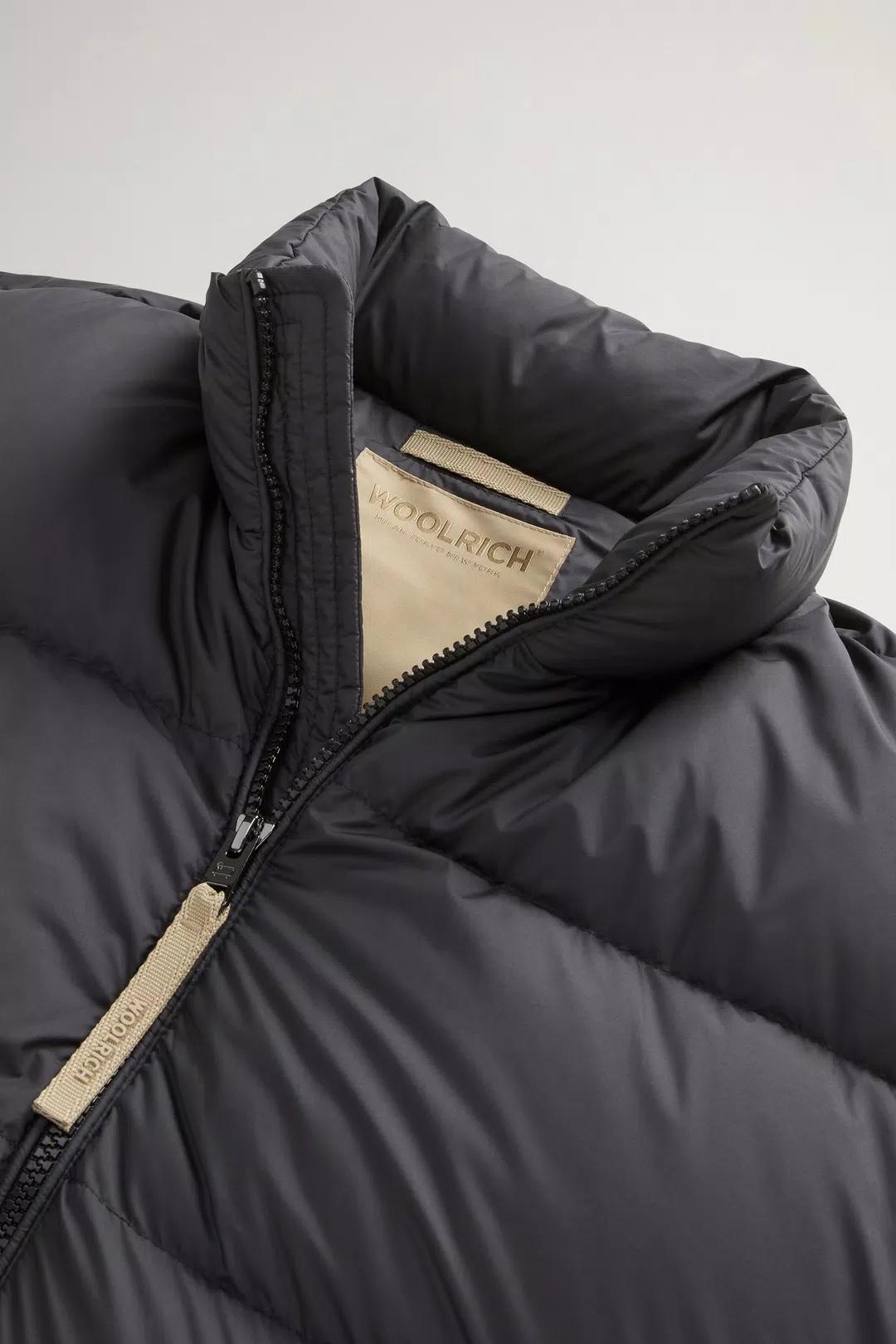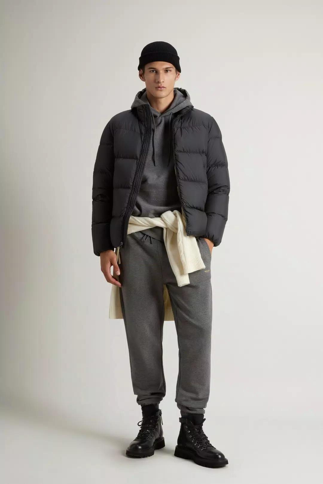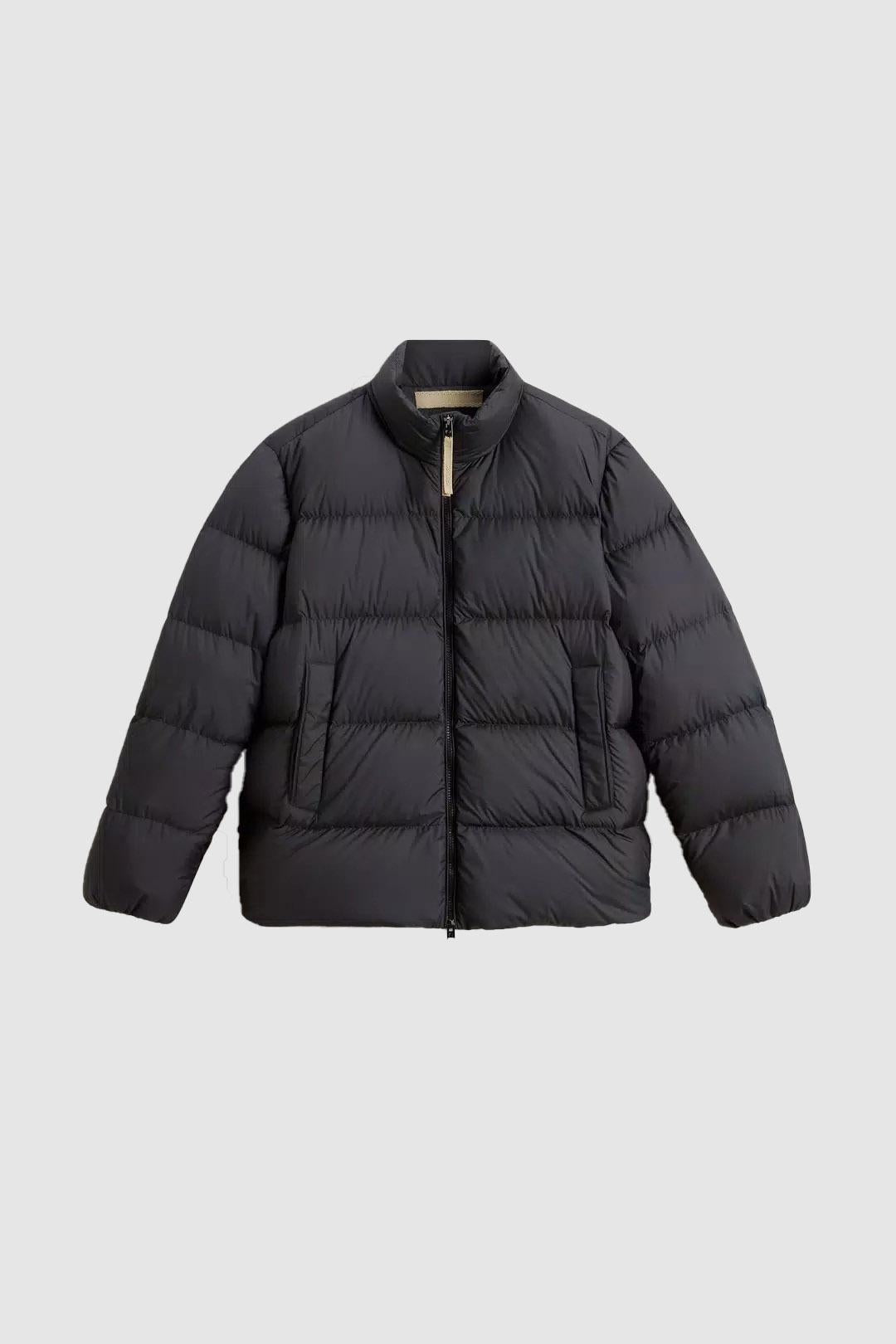 Perfetto alleato contro i primi freddi, questo piumino della Cloud Series - la nostra capsule di capispalla caldi ma leggeri come una nuvola - è un must-have del guardaroba di stagione. Realizzato in microfibra idrorepellente e resistente al vento, è imbottito in piuma d'anatra per offrire un calore avvolgente senza appesantire. Il design include un collo alto per una protezione extra e una zip bidirezionale con tirazip logata, mentre le tasche a filetto con bottoni a pressione nascosti e le due tasche interne, una laterale e una con zip, garantiscono praticità e spazio per gli oggetti personali. La coulisse interna sul fondo consente di regolare la vestibilità in base alle esigenze. Completano il capo il logo stampato sul retro e l'etichetta laterale.Realizzato in microfibra
