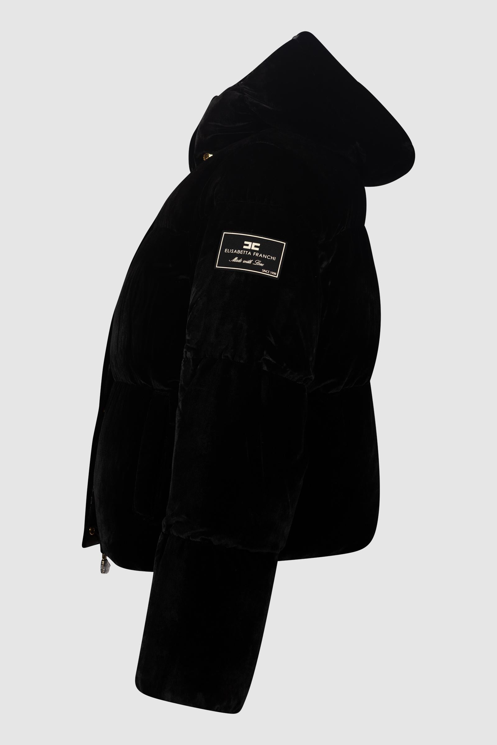 Piumino corto dal fascino sofisticato firmato Elisabetta Franchi, realizzato in velluto liscio nero per un effetto elegante e luminoso. Un capo outerwear raffinato che unisce stile e comfort, ideale per affrontare la stagione invernale con un tocco glamour tipico della maison.