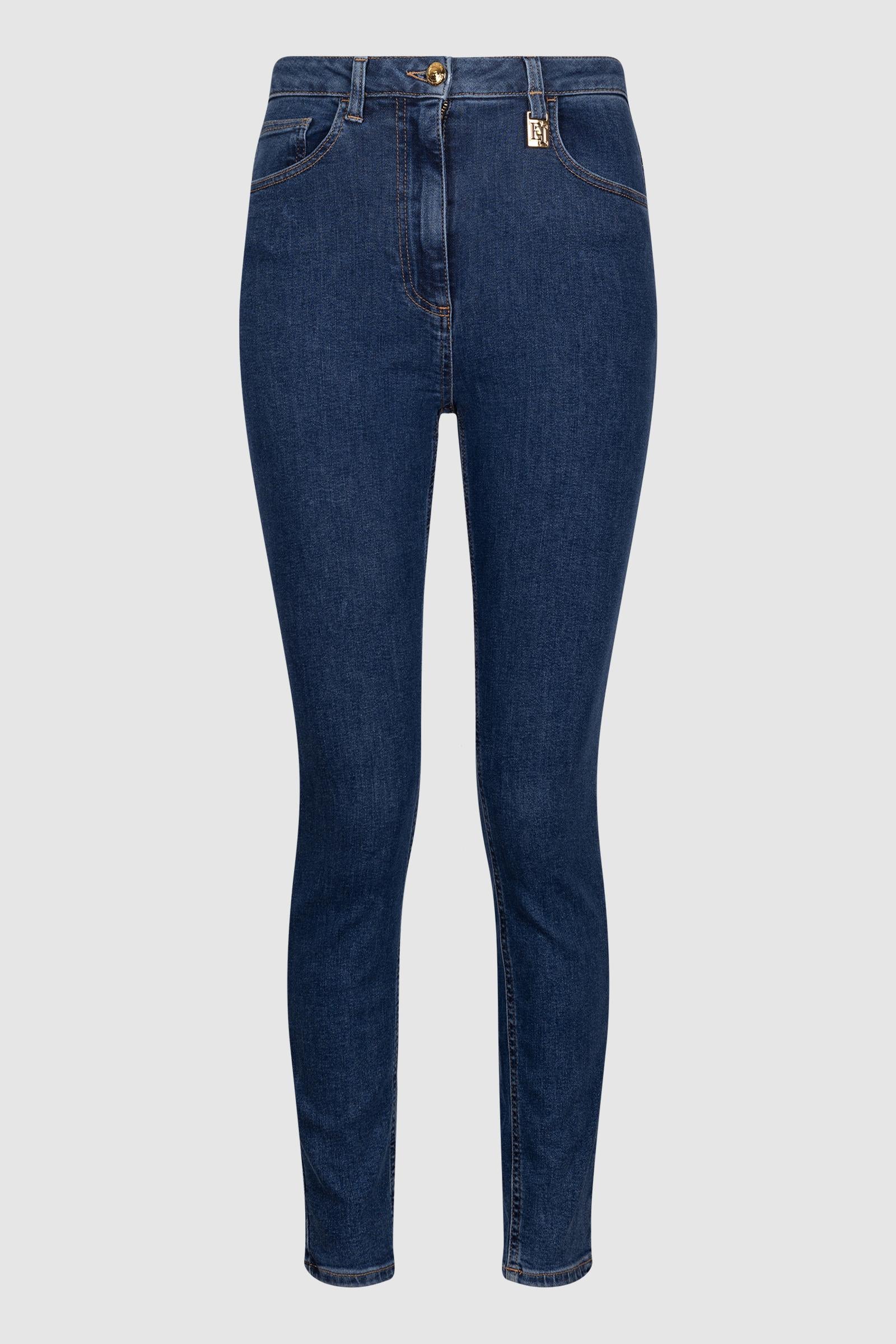 Pantaloni cinque tasche in denim con gamba skinny. Hanno tasche posteriori di cui una personalizzata dal nastro diagonale con logo. Vestibilità aderente.
