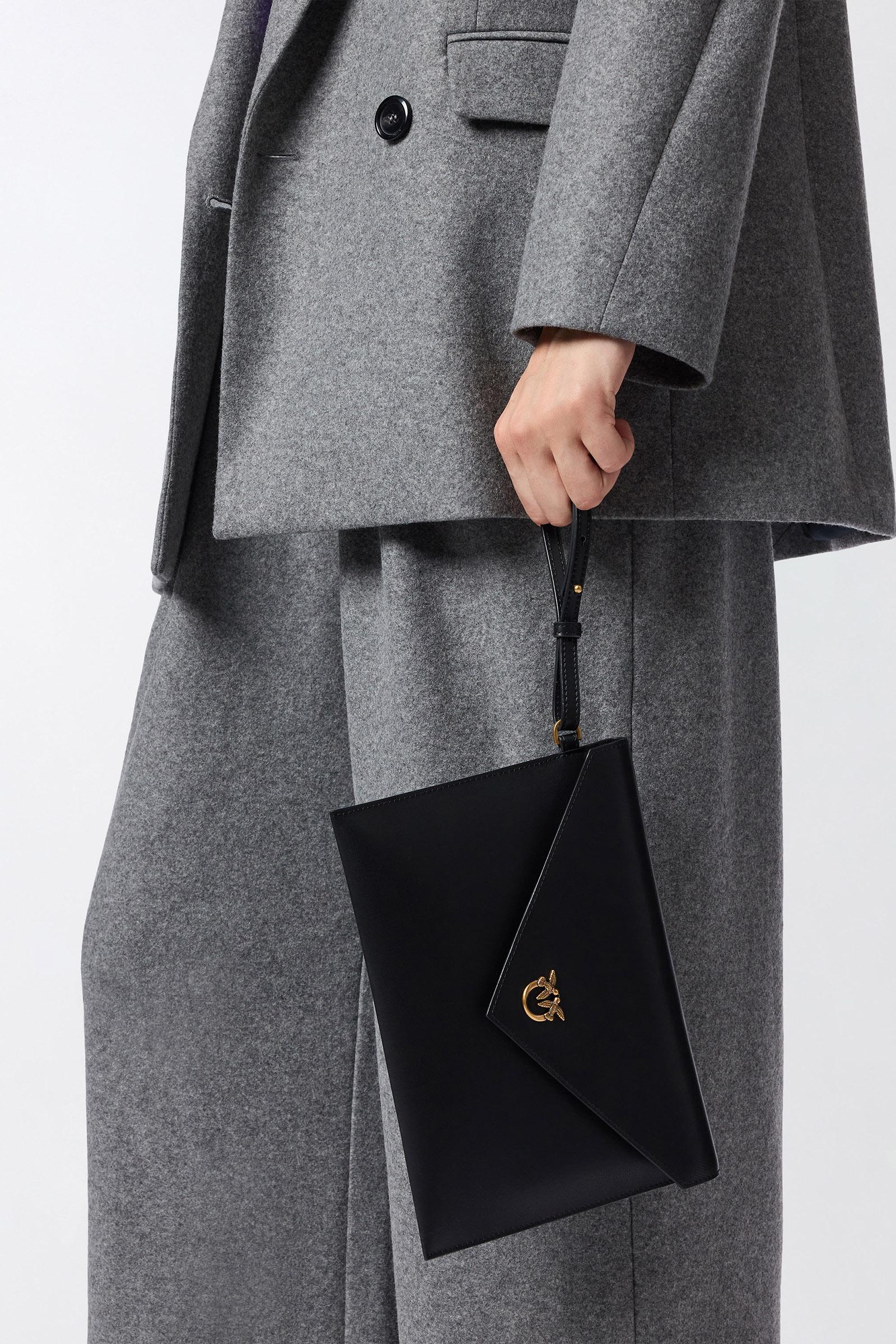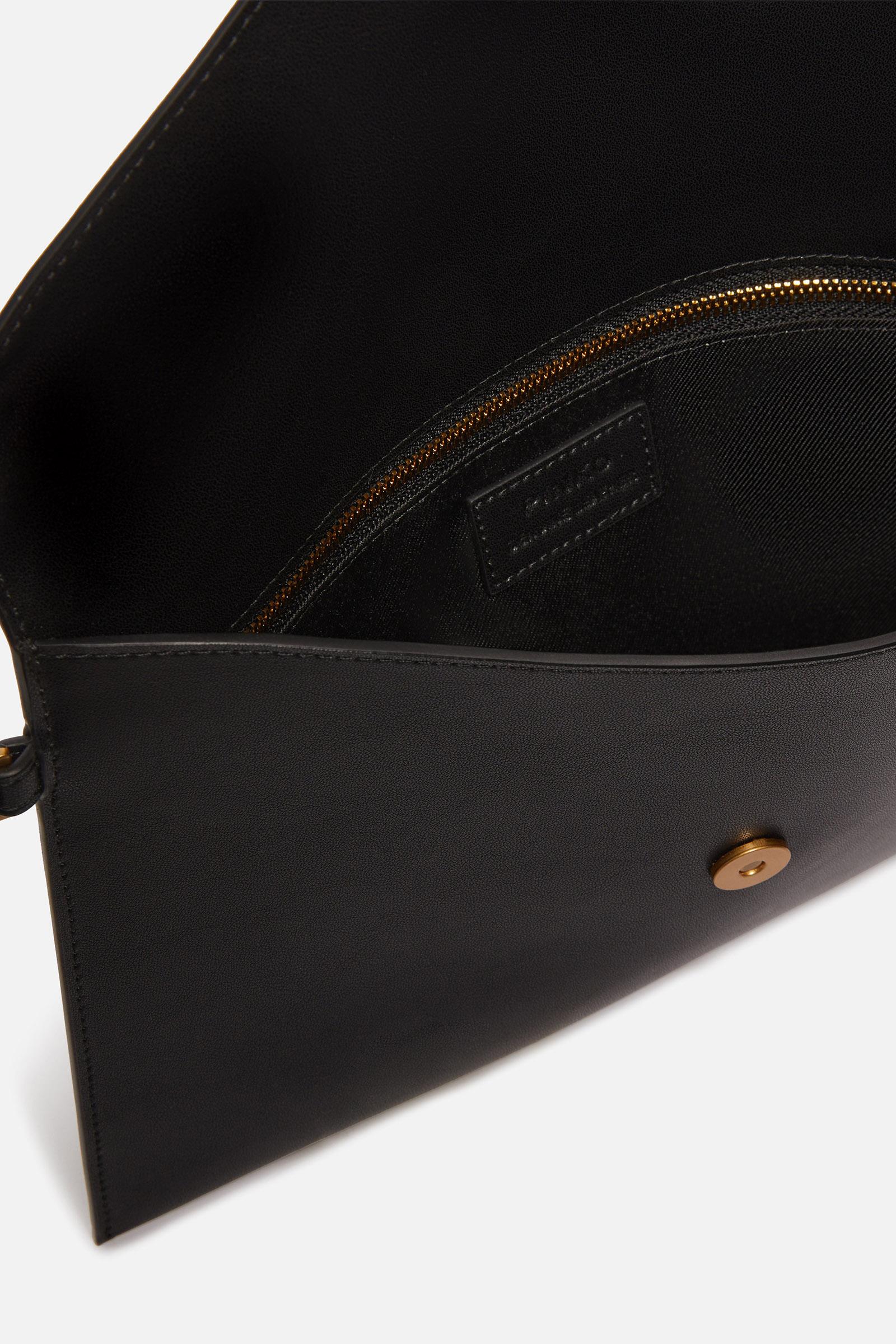 Piccola borsa a mano dalla forma a bustina piatta realizzata in morbida pelle mano seta, dotata di fodera in cotone. Caratterizzata dalla tracolla a catena rimovibile lunga 54 cm, la borsetta risulta estremamente versatile e pratica. Il design viene completato dall'iconico Love Birds, in galvanica resistente color antique gold, che si fa portavoce dell'inimitabile stile del brand. Essenziale e raffinato, questo accessorio è il pezzo mancante dei tuoi look da giorno e non solo. Attiva la tua borsa PINKO: verifica l'autenticità del tuo prodotto e accedi all'esperienza personalizzata avvicinando il tuo smartphone al ricamo Love Birds che trovi sul retro della borsa!Pelle: PELLE DI VACCA 100% - Tessuto Esterno: NYLON 100% - Spalmatura: POLIURETANICA 100% - Fodera: POLIESTERE 100%