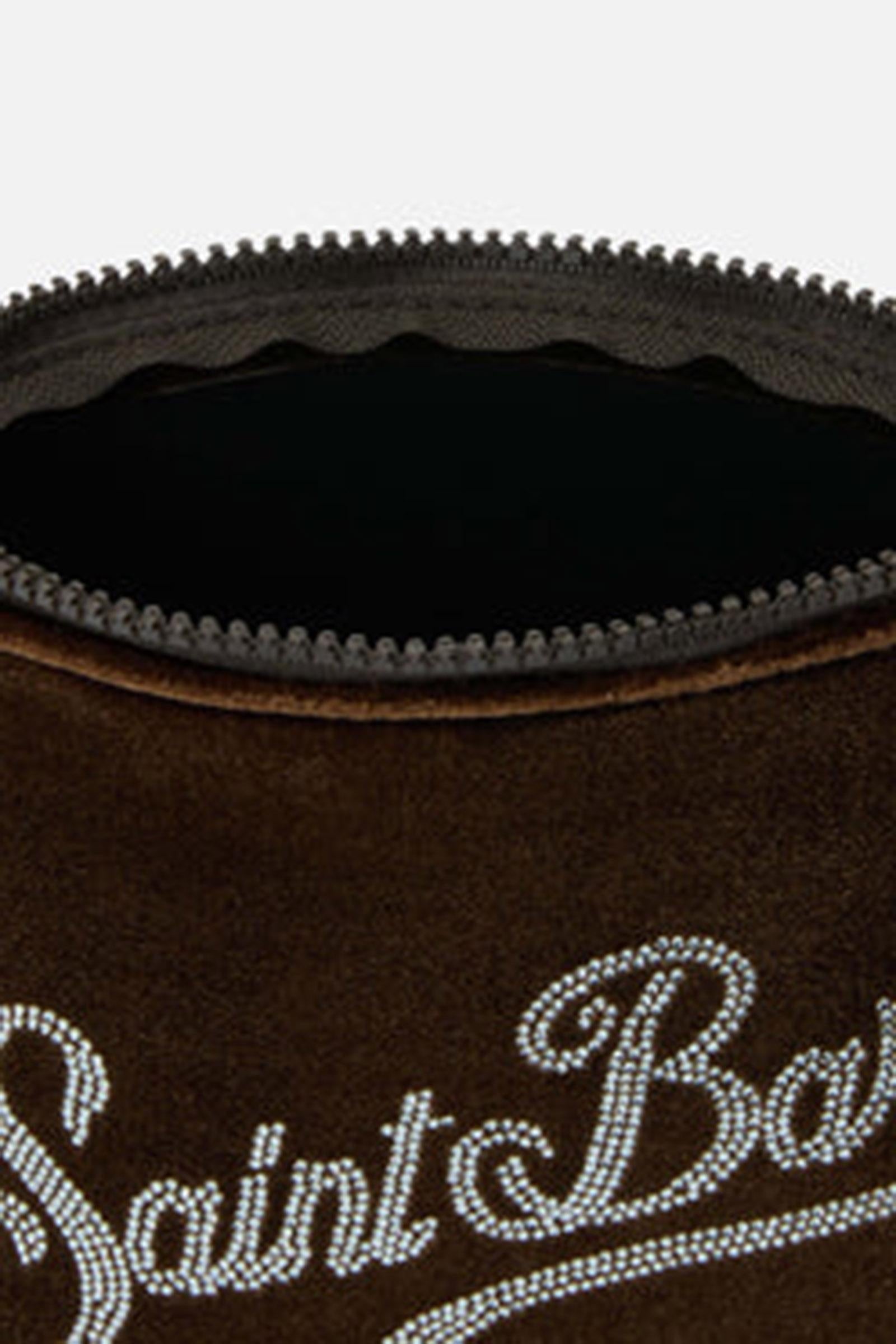 Calda e luminosa: velluto cammello e strass per un tocco sofisticato.