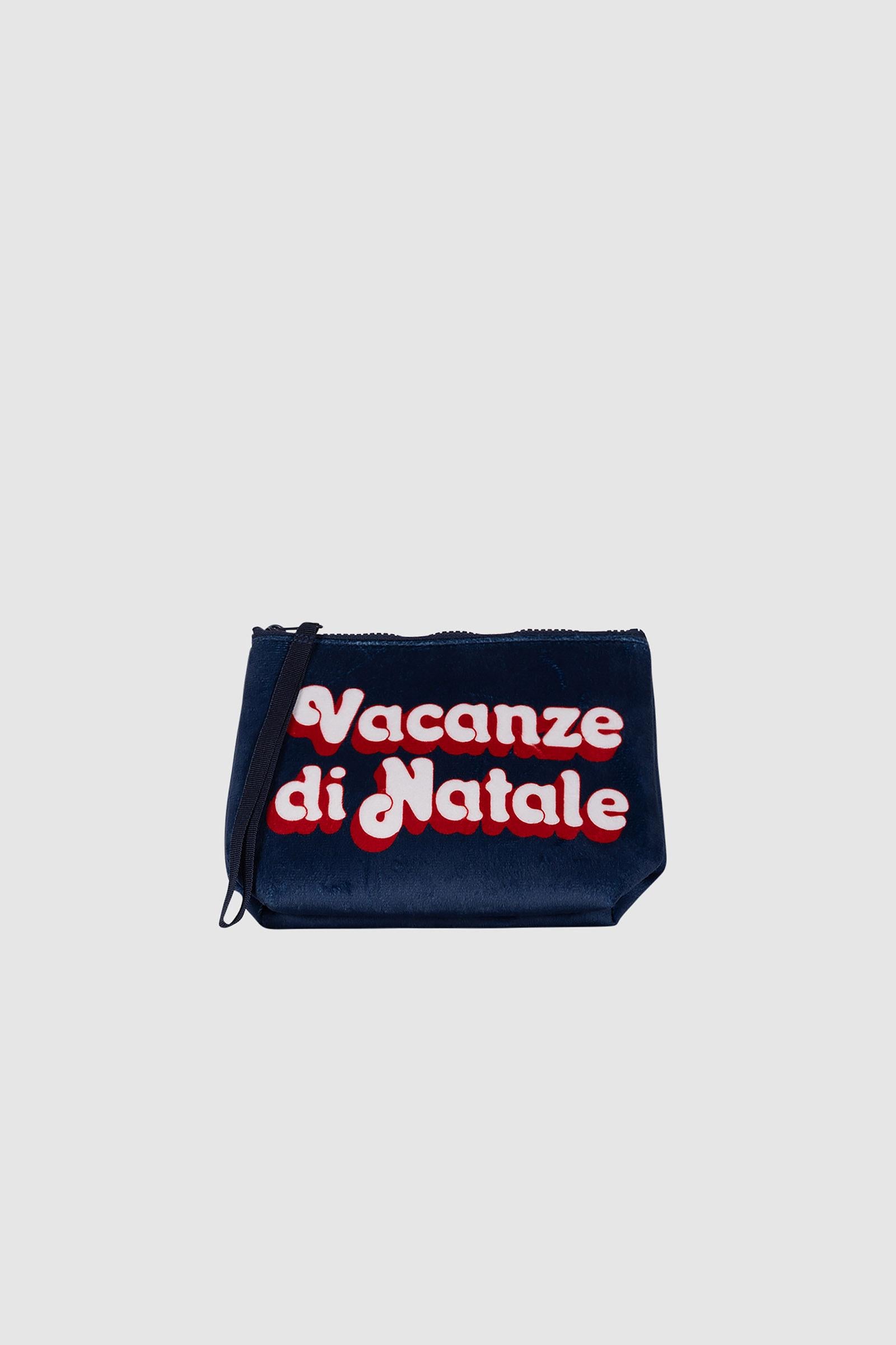 Divertente e irresistibile, la pochette MC2 Saint Barth "Vacanze di Natale" è l'accessorio perfetto per le feste. Realizzata in morbido velluto blu, presenta la scritta ricamata in rilievo "Vacanze di Natale" in bianco e rosso, per un look ironico e festoso.
